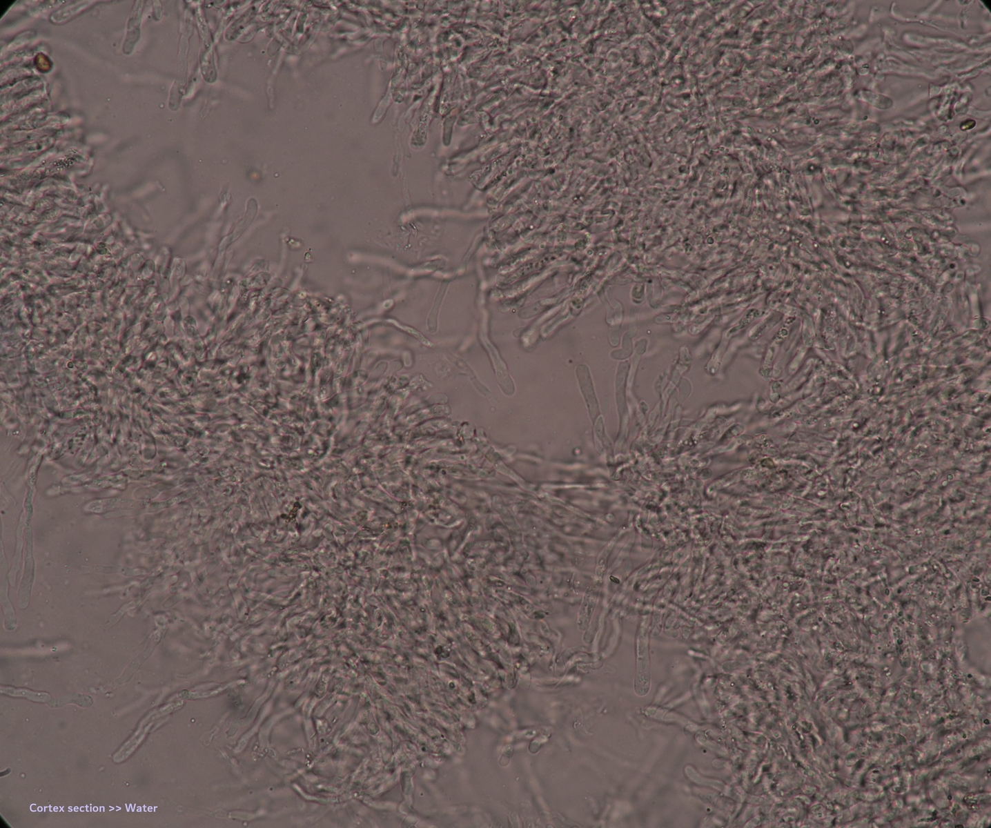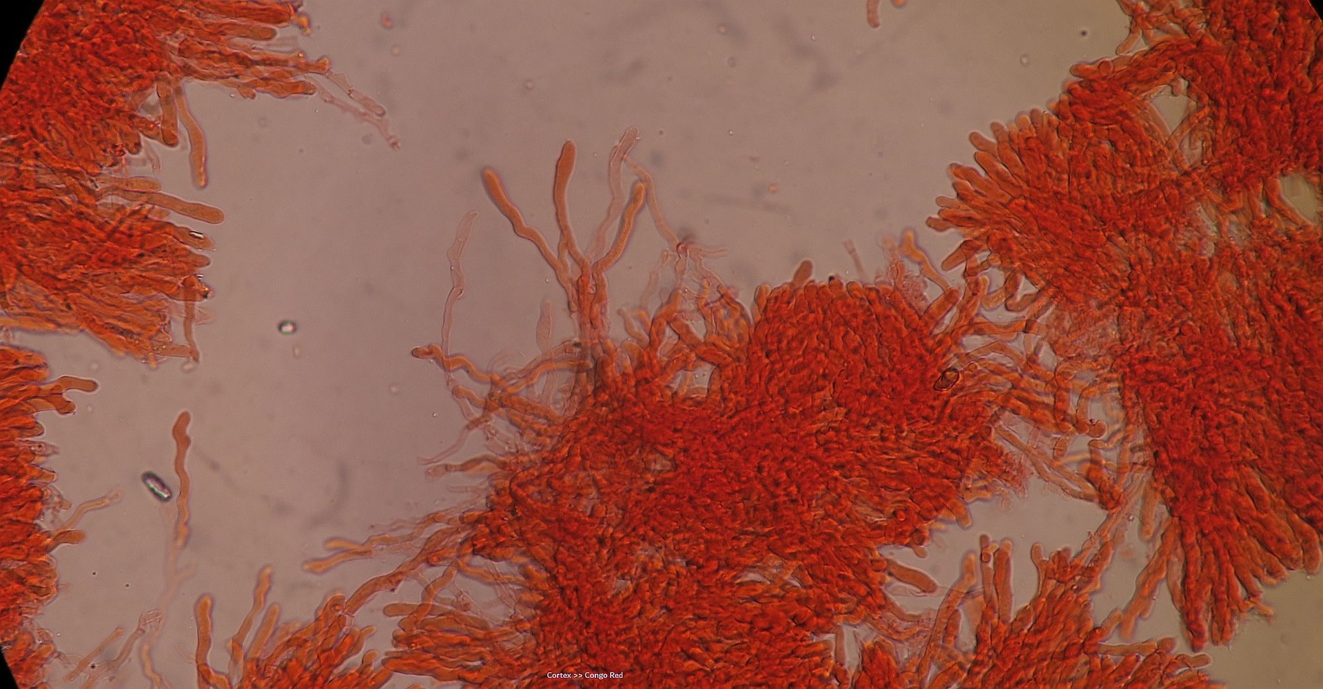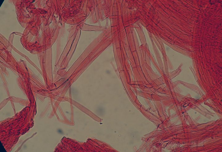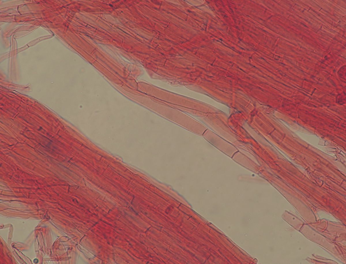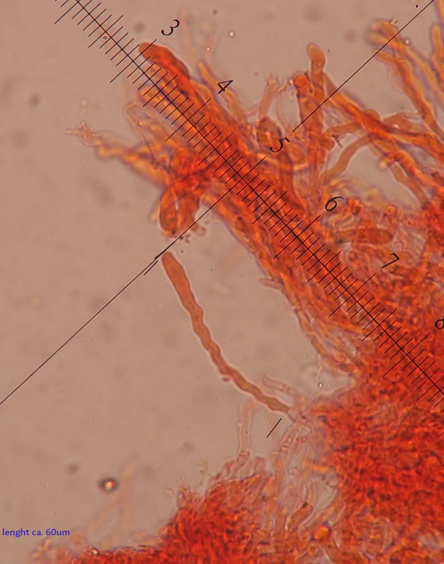 Under the microscope, there is more or less the same picture of before, but what we assume that are basidioles are more wriggly (curved/flexuose).