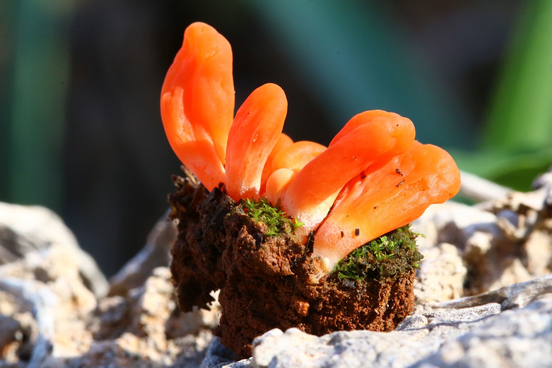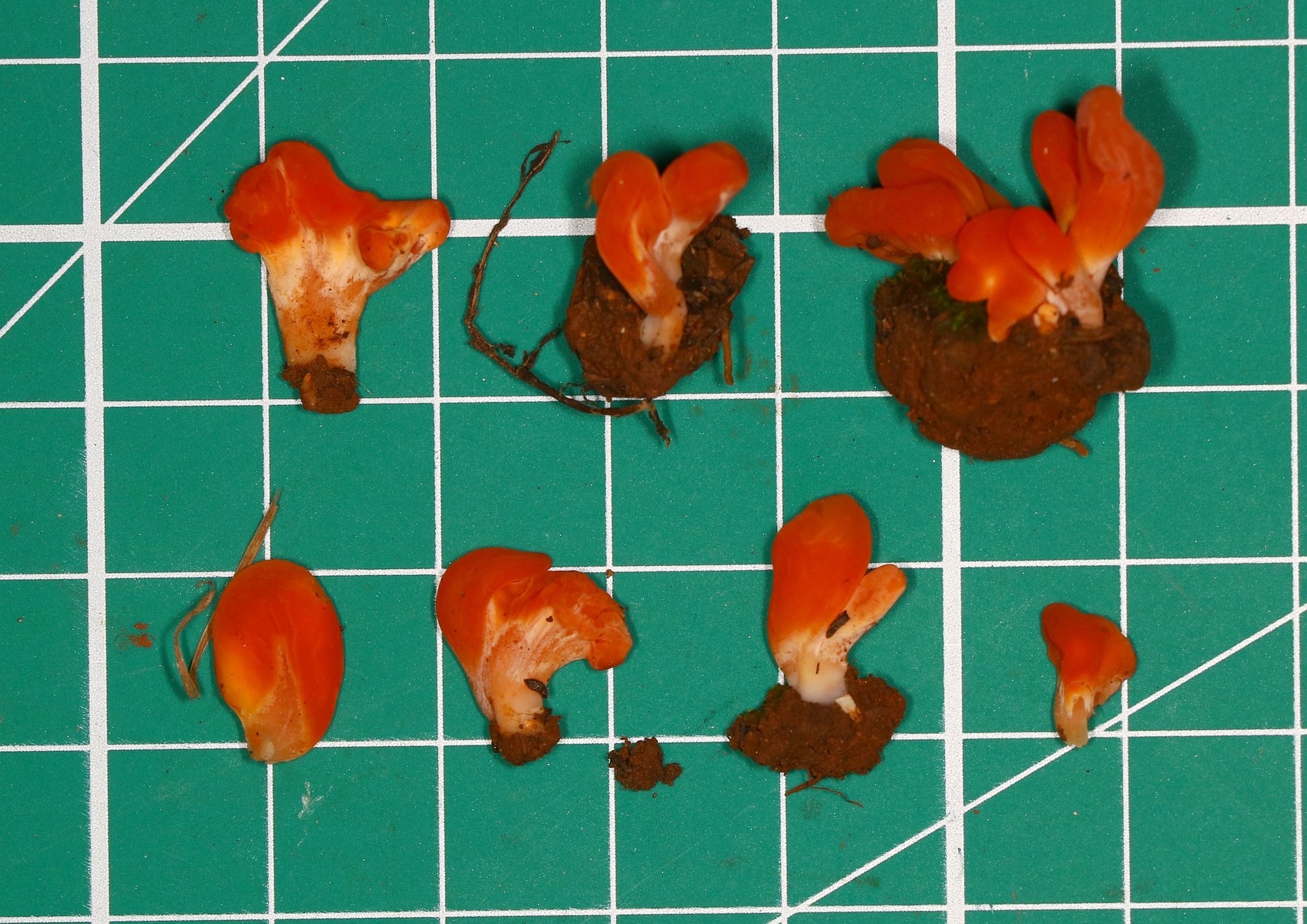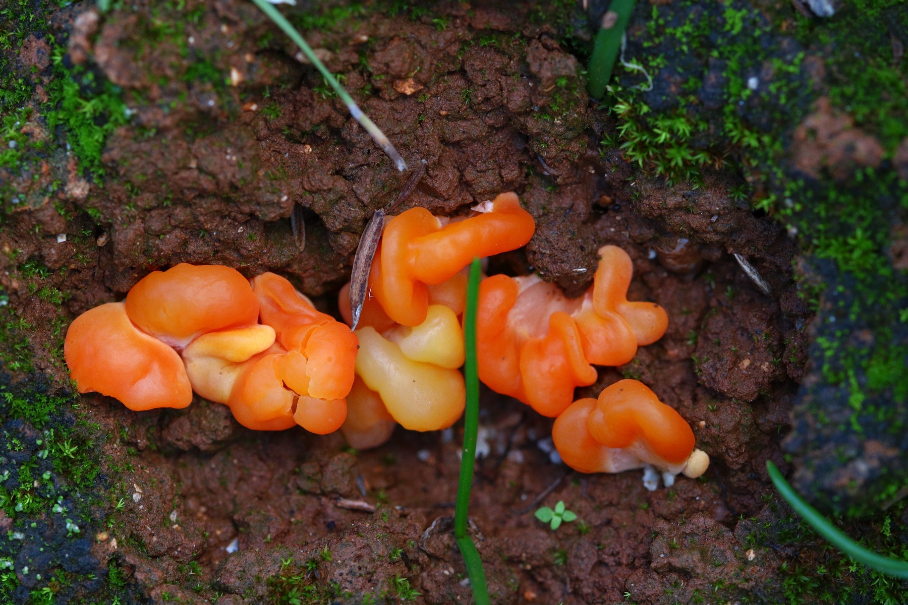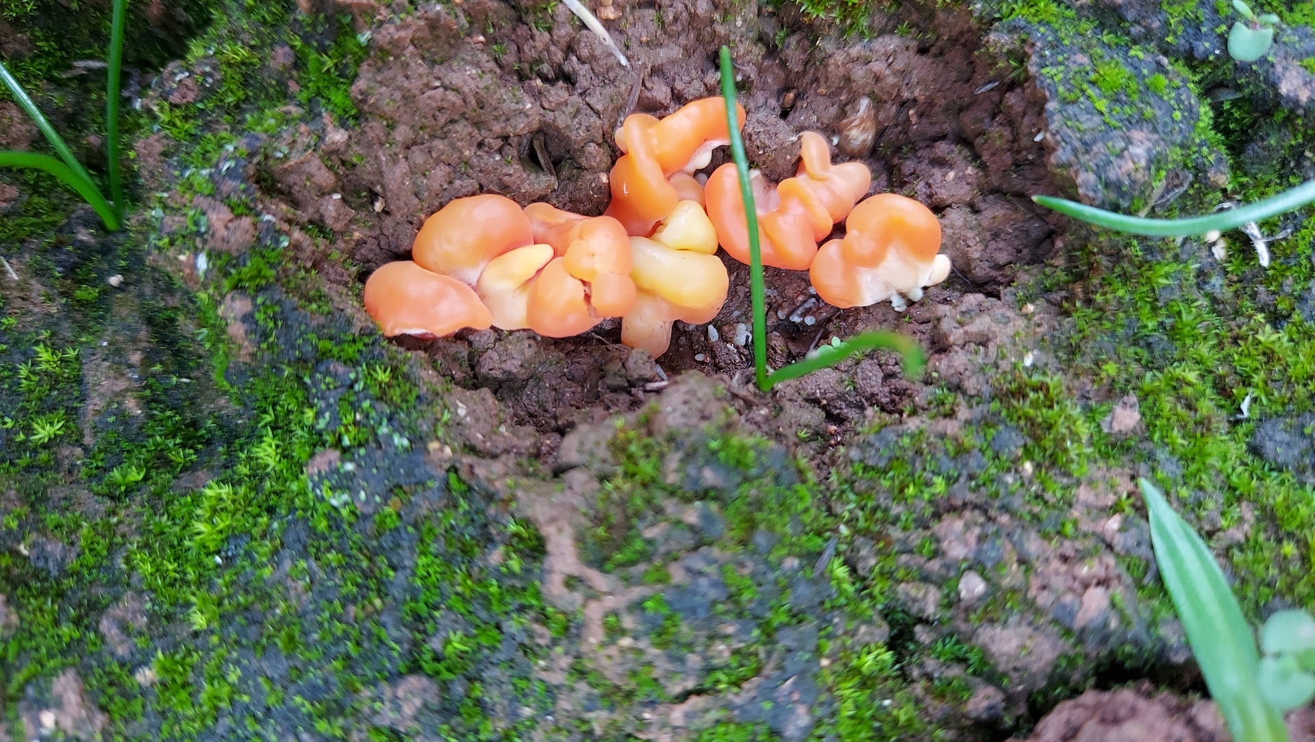 Orange Jellybaby (Clavaria-like) fungus, on moss - exciting!