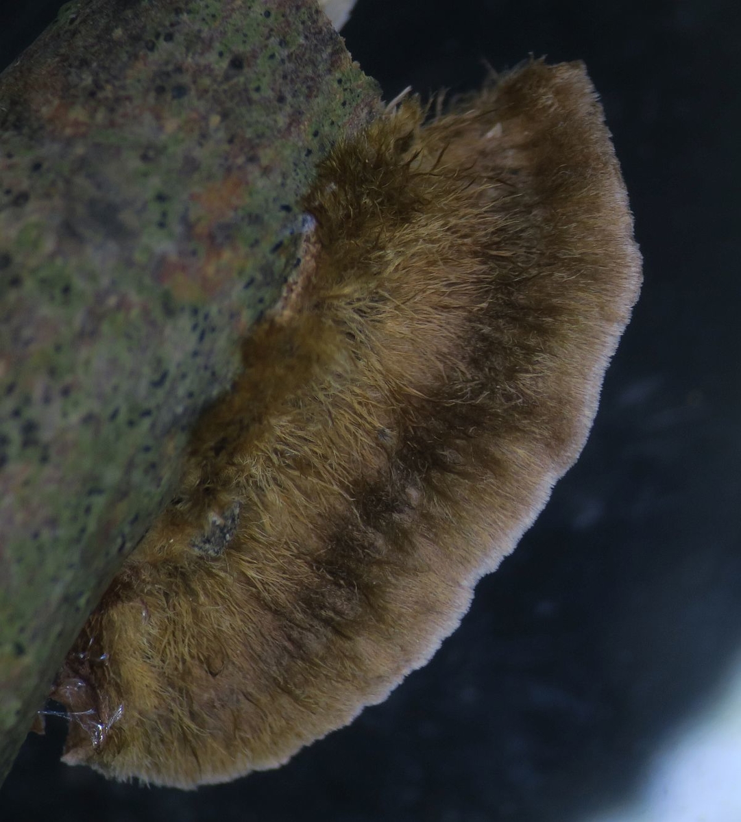 According to the quite dark hair, i would think the context should be also dark brown."Coriolopsis" gallica might be also a species complex - but that's the thing for quite a lot of mushrooms.