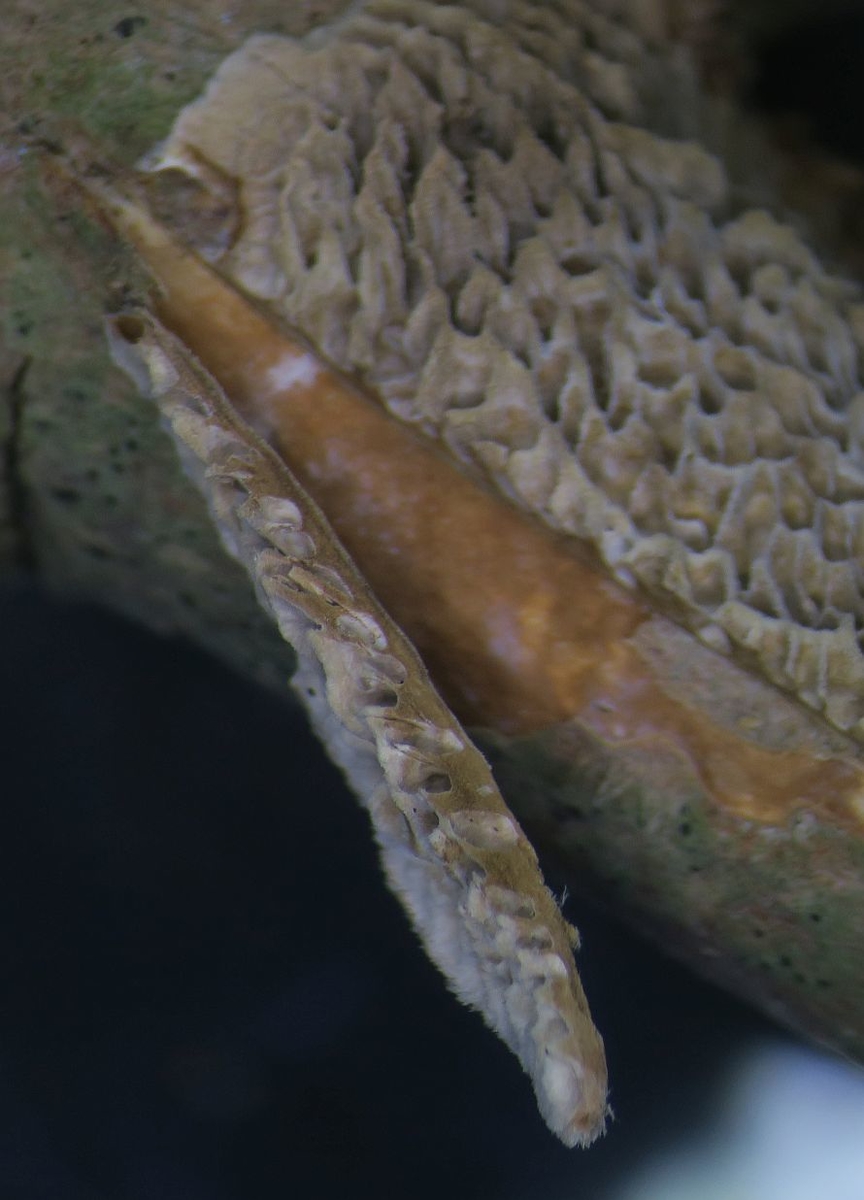 can you cut through the fruiting body so that you can see the trama. Coriolopsis (Funalia) gallica must have an brown trama.