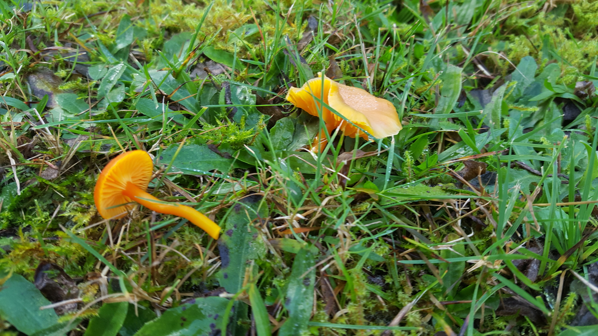 diese Saftlinge baten darum, ebenfalls kurz im Forum gezeigt zu werden. Liege ich mit Hygrocybe chlorophanaoder einer verwandten Art richtig? Sind sie wirklich so selten bei uns? Ich werde sie in jedem Fall stehen lassen, selbst wenn man sie nicht genau bestimmen kann.