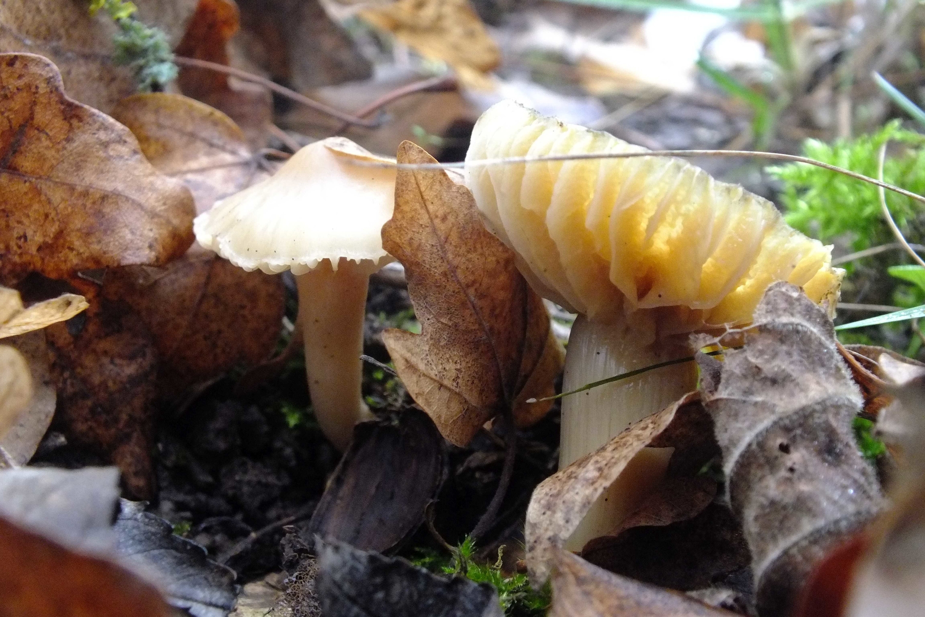 Ich denke, es handelt sich um eng verwandte Pilze der Gattung Cuphophyllus (Ellerlinge) und würde mich hier gerne rückversichern, ob diese Zuordnung Sinn macht.