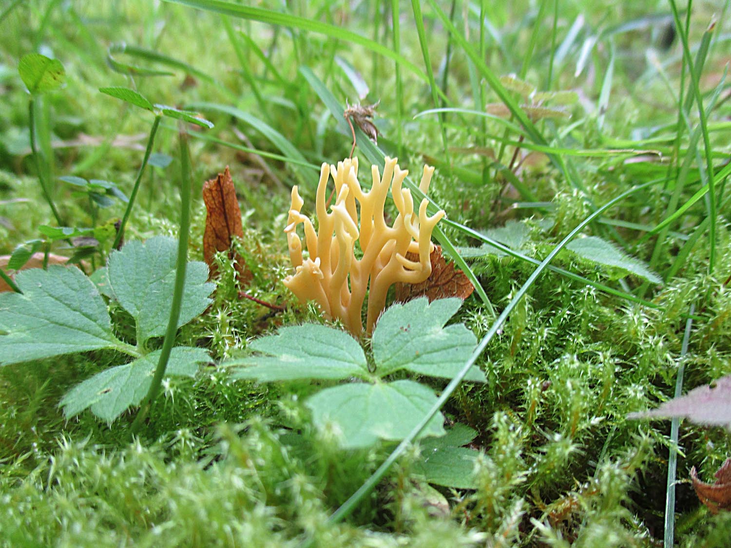 die Geweihförmige Wiesenkoralle (Clavulinopsis corniculata), die Goldgelbe Wiesenkeule (Clavulinopsis helvola),