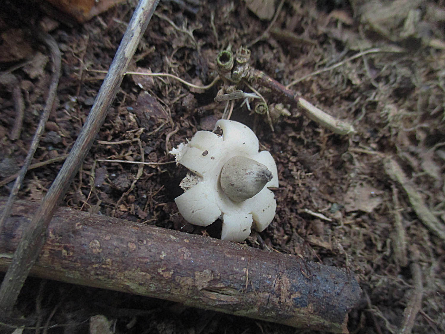 vermutlich den Rötenden Erdstern (Geastrum rufescens),