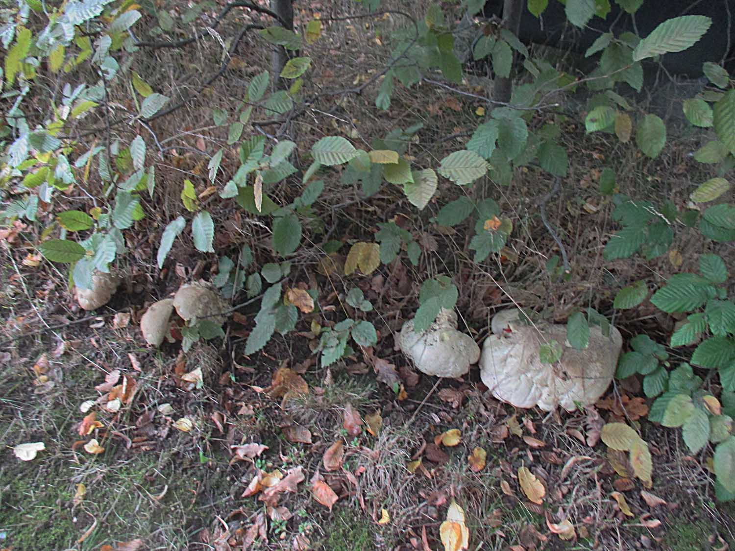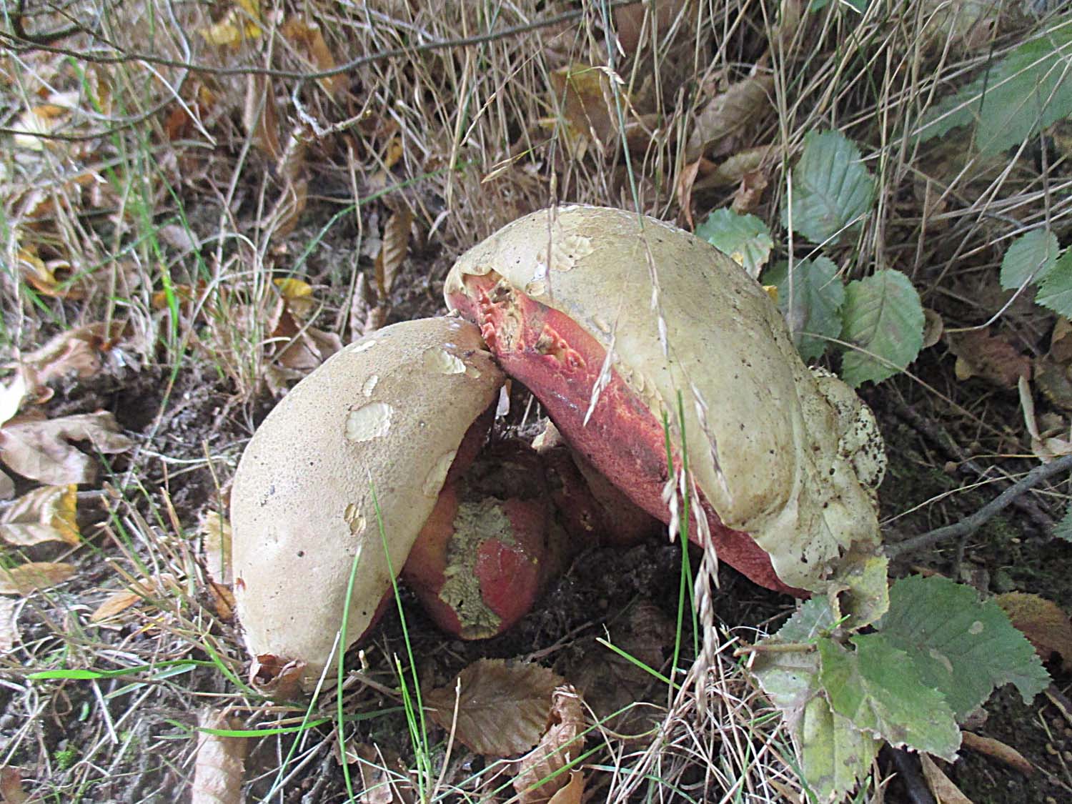 eine große Anzahl vom Satansröhrling (Rubroboletus satanas), wobei der größte einen Hutdurchmesser von 31 cm erreichte,