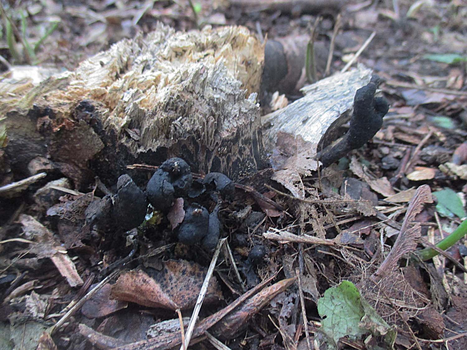 und Vielgestaltige Holzkeulen (Xylaria polymorpha) blicken.
