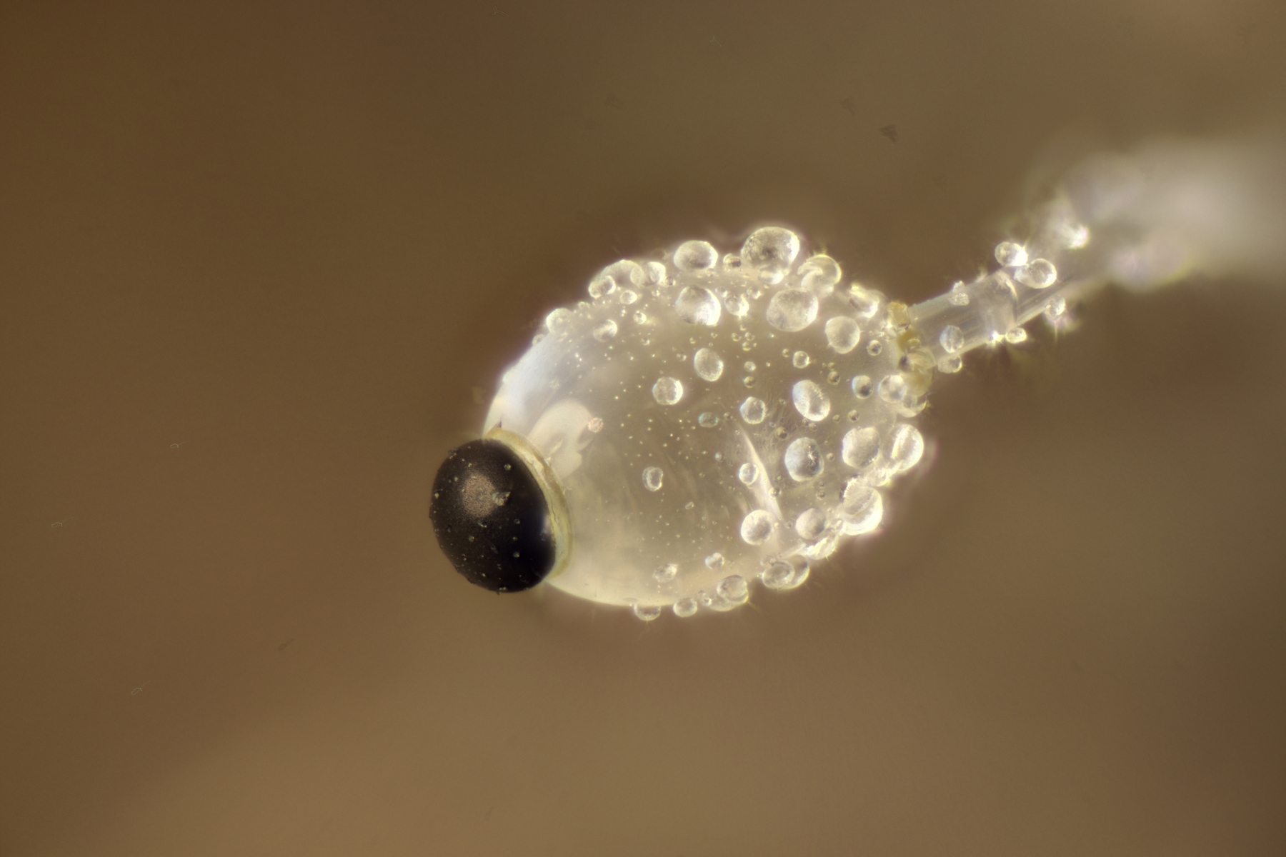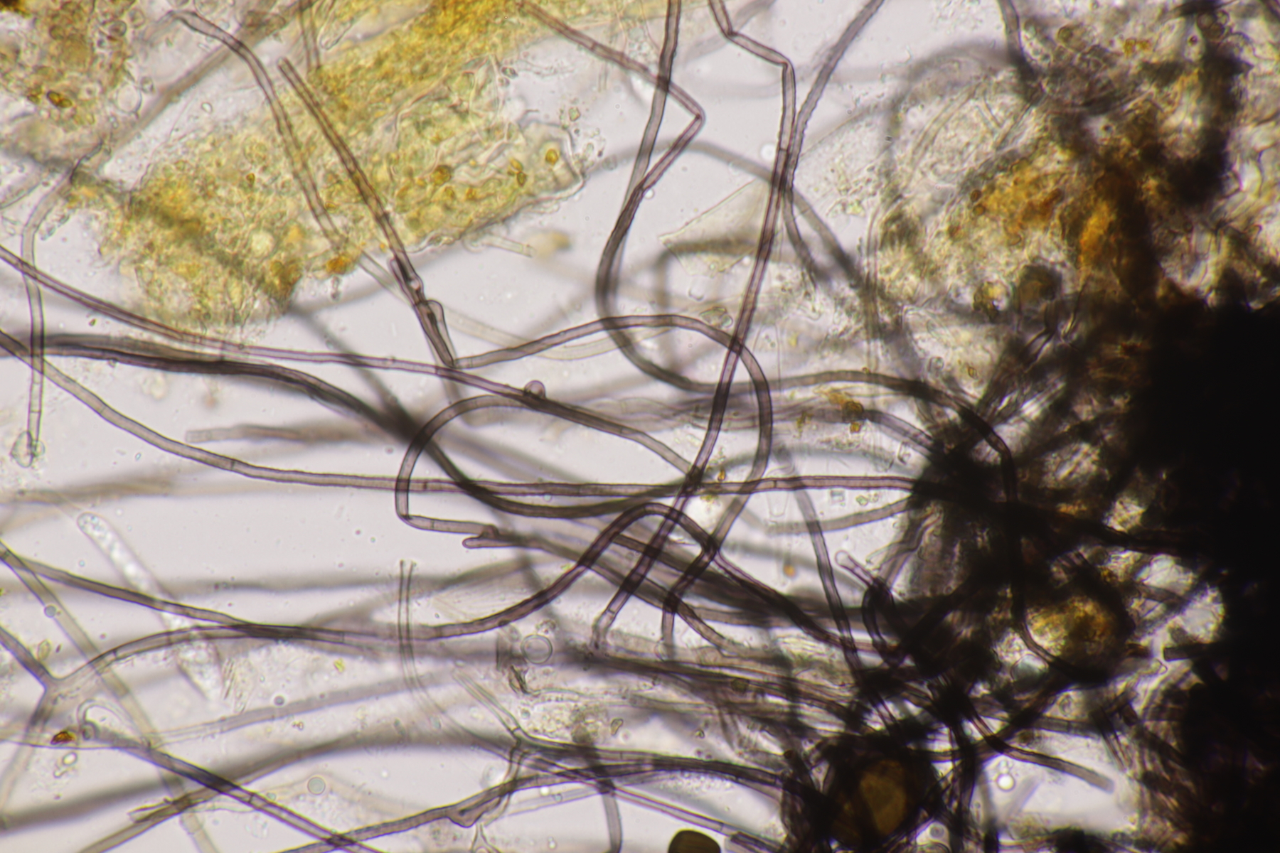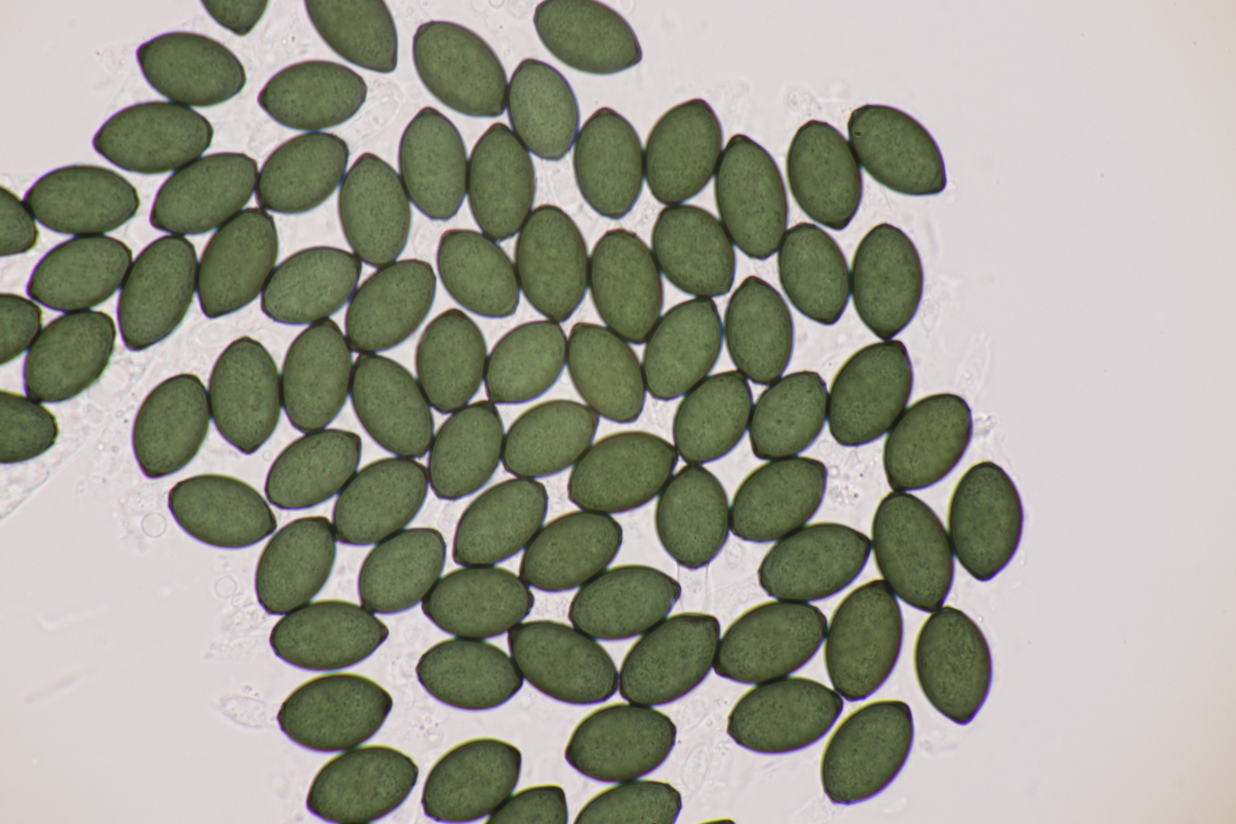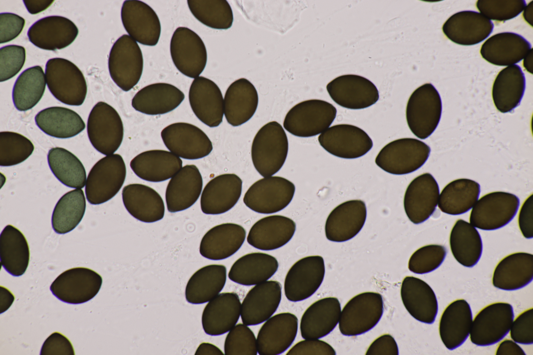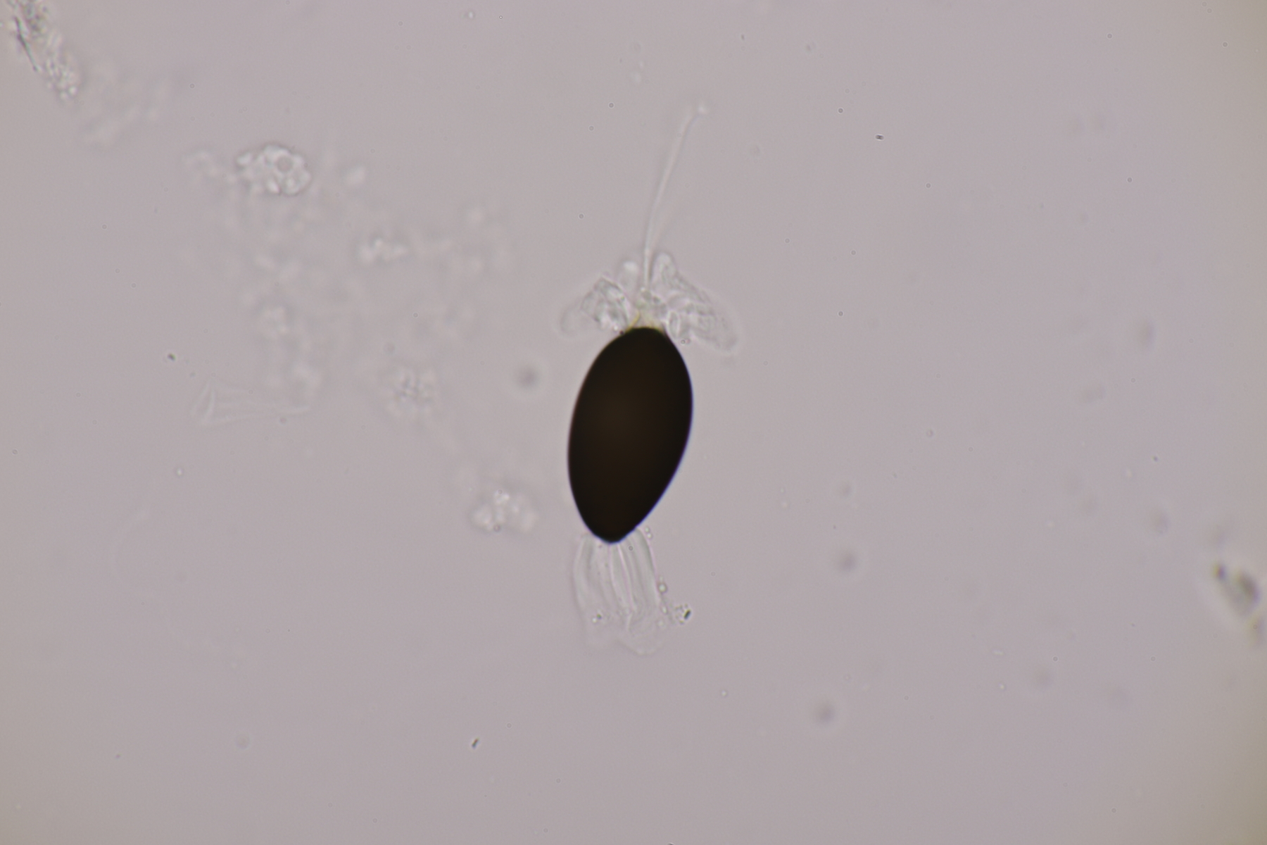 I.2 Leider nur ein Einzelexemplar: eine Podospora mit vielen Sporen im Ascus. Die Sporen messen 21-24 x 14-15 µm. Wie viele es genau waren, ließ sich leider nicht genau ermitteln, es liegt aber um die 100. Damit sind dann nur noch Podospora bifida und setosa im Rennen. Da das Pedicel um die 5 µm breit ist, geht meine Tendenz hier zu Podospora bifida.