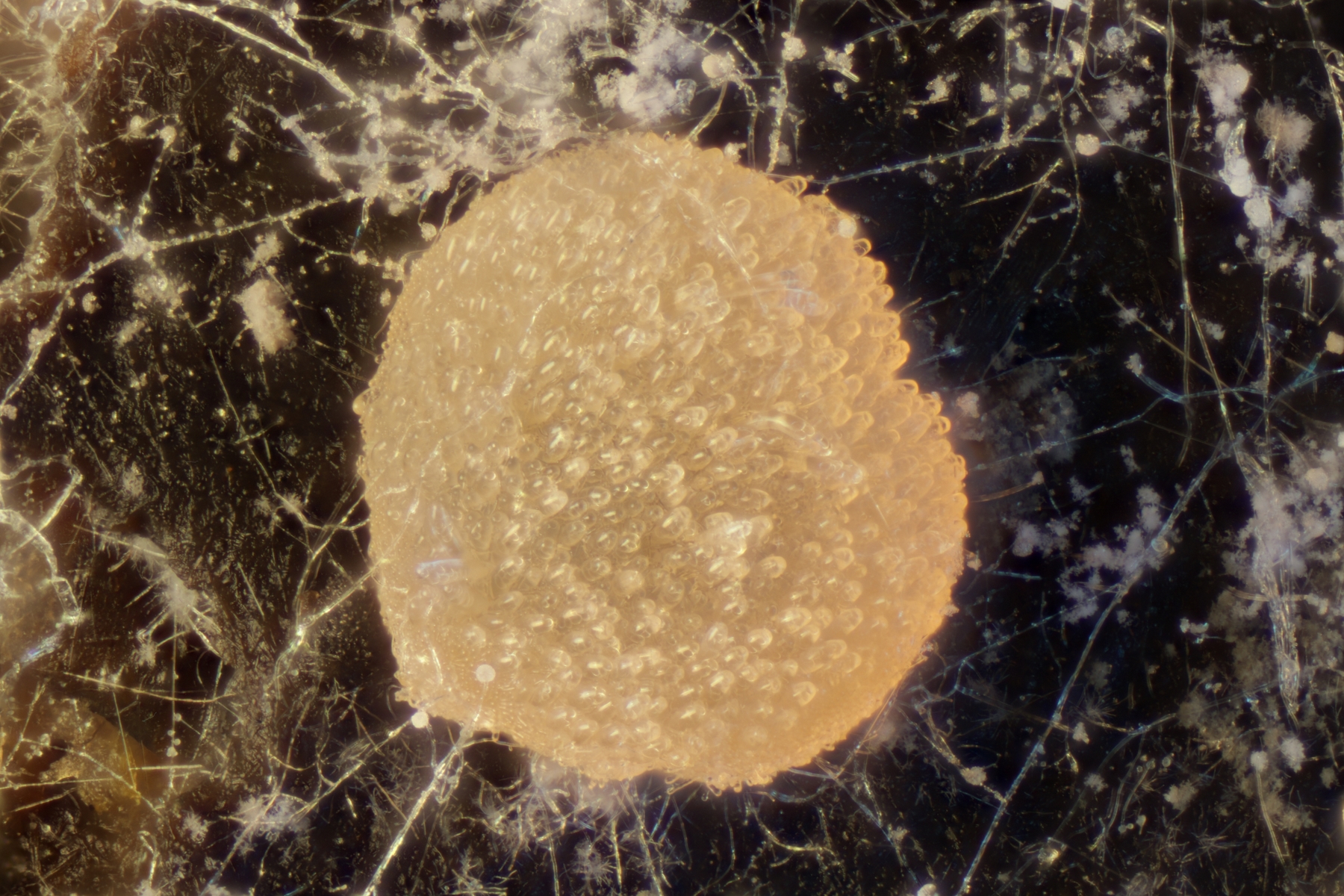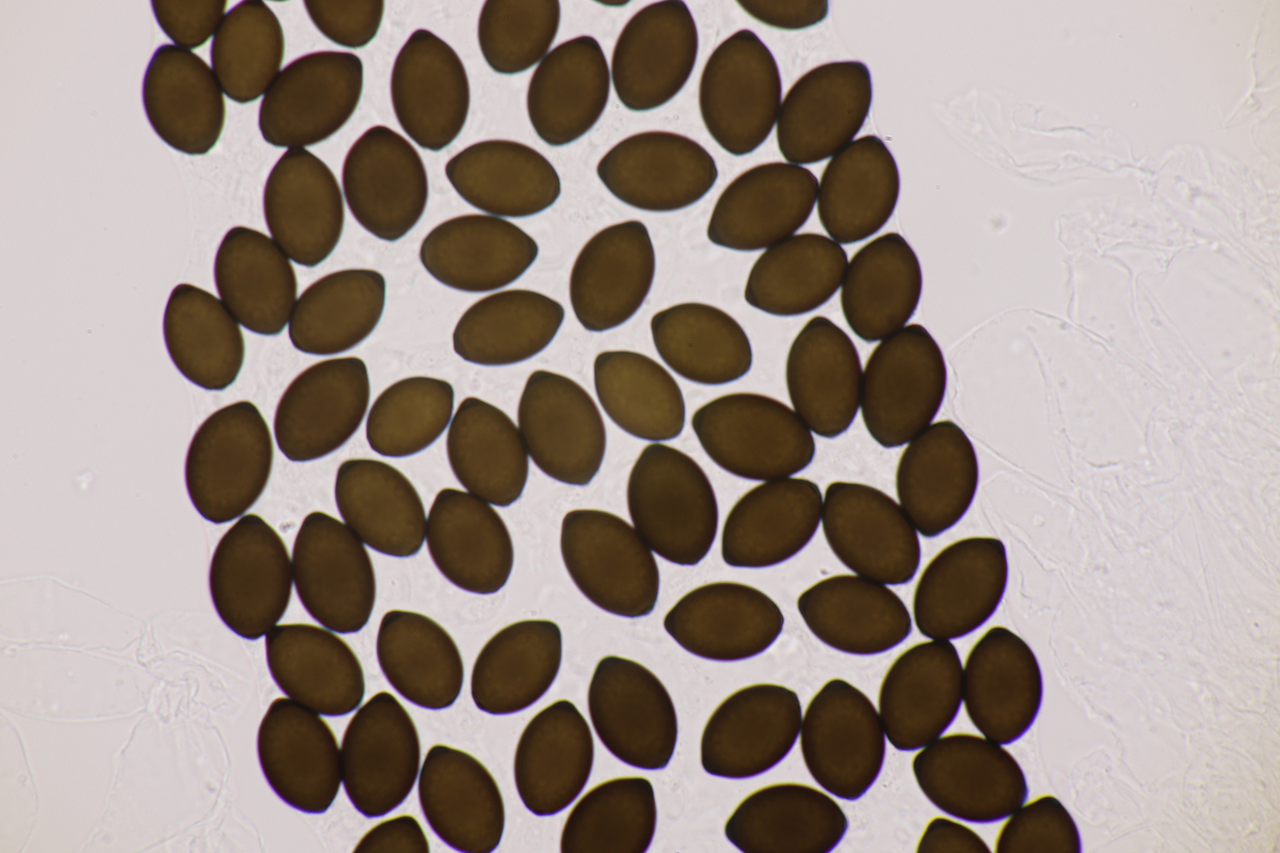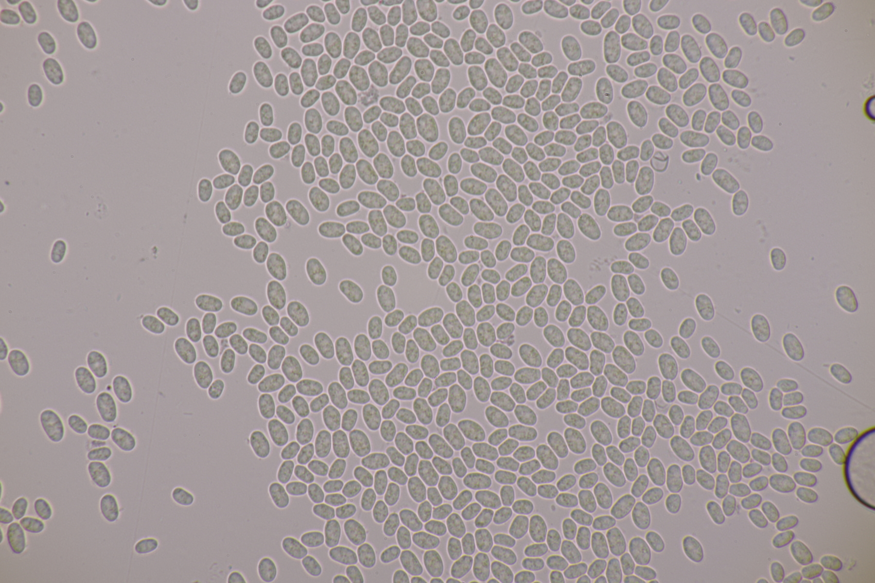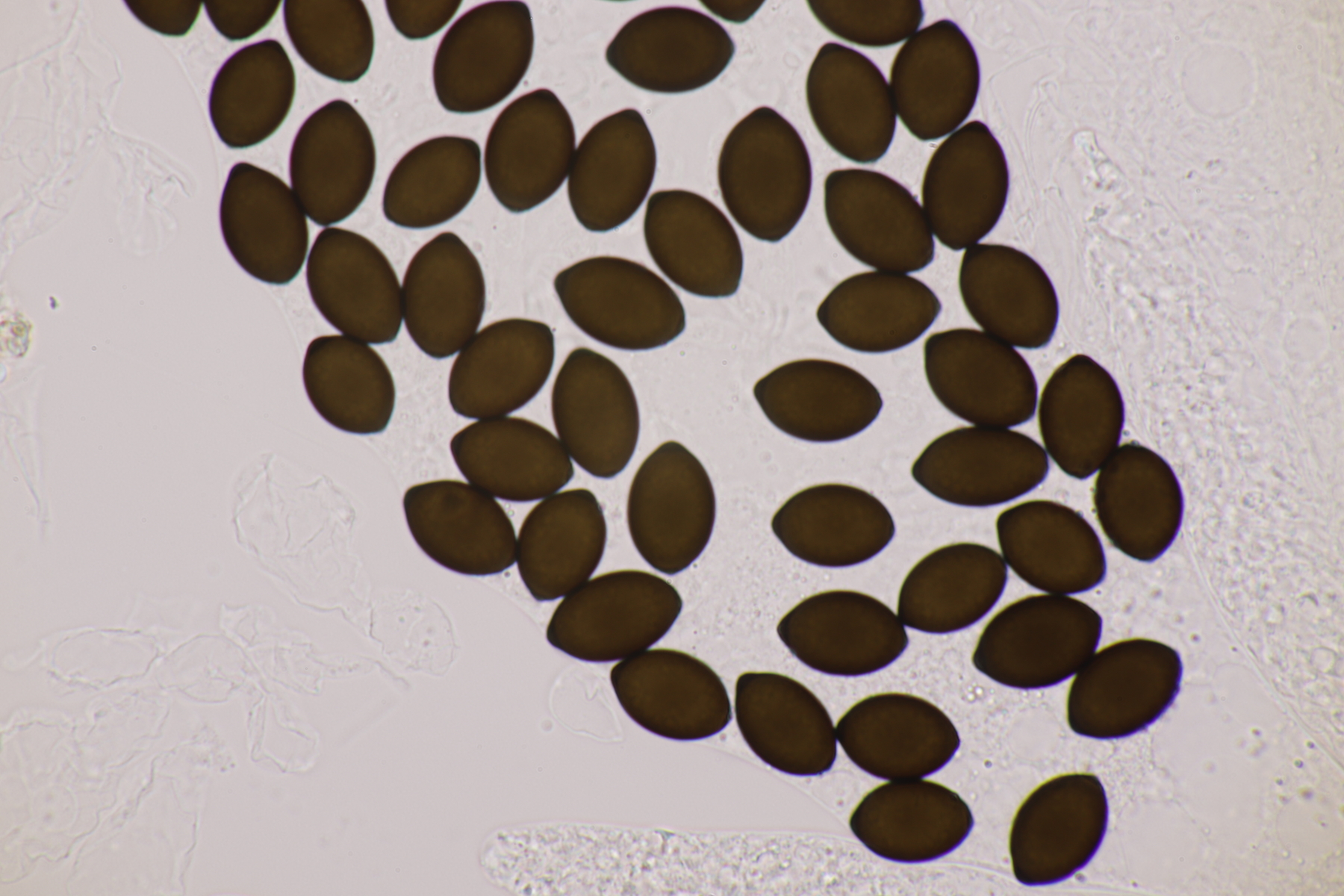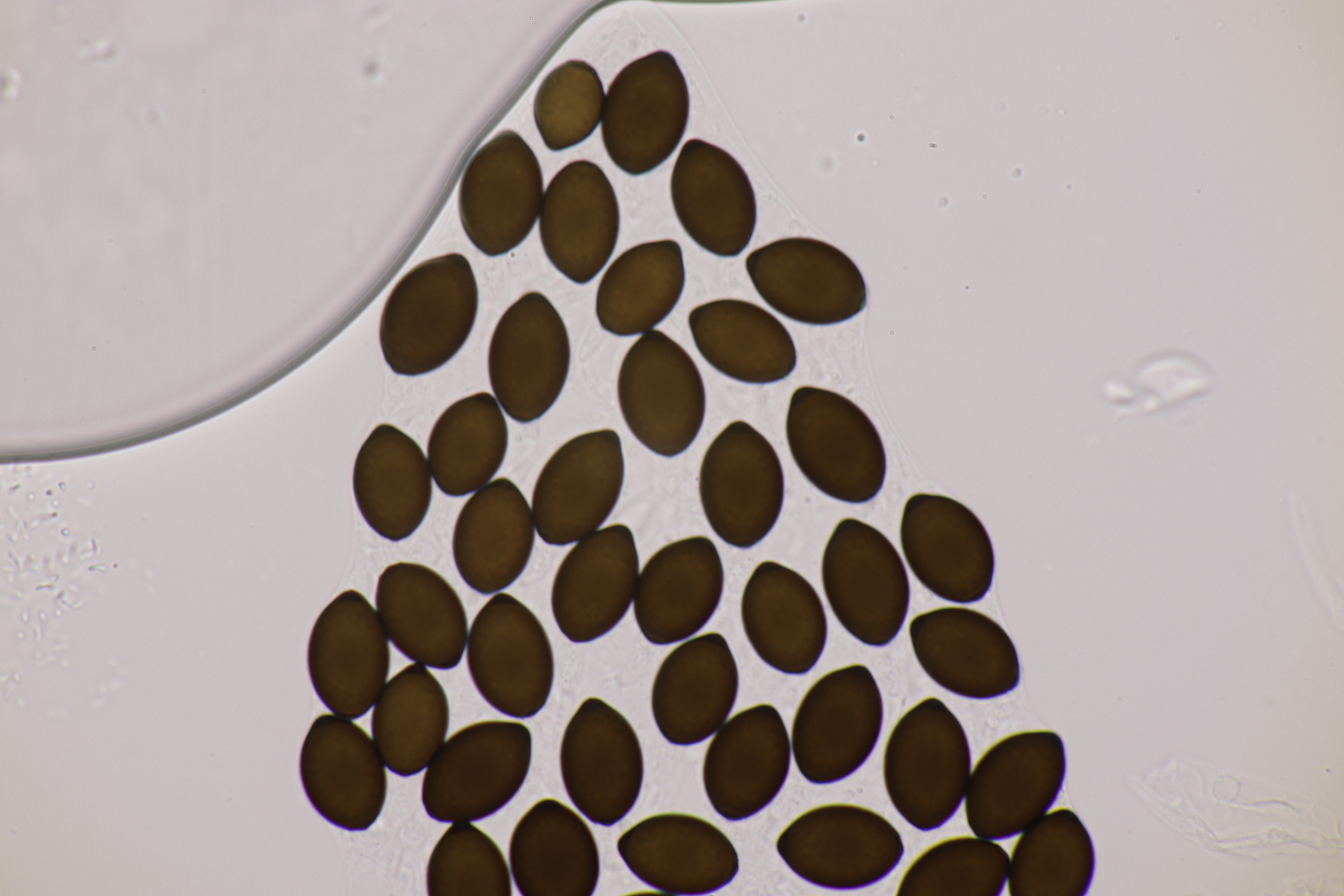 II.3 Nochmal ein Saccobolus, diesmal makroskopisch etwas kompakter. Sporencluster ca 35 x 12 µm, Sporen messen 12-13 µm x 6 µm. Das würde dann schon deutlicher zu S. depauperatus tendieren.