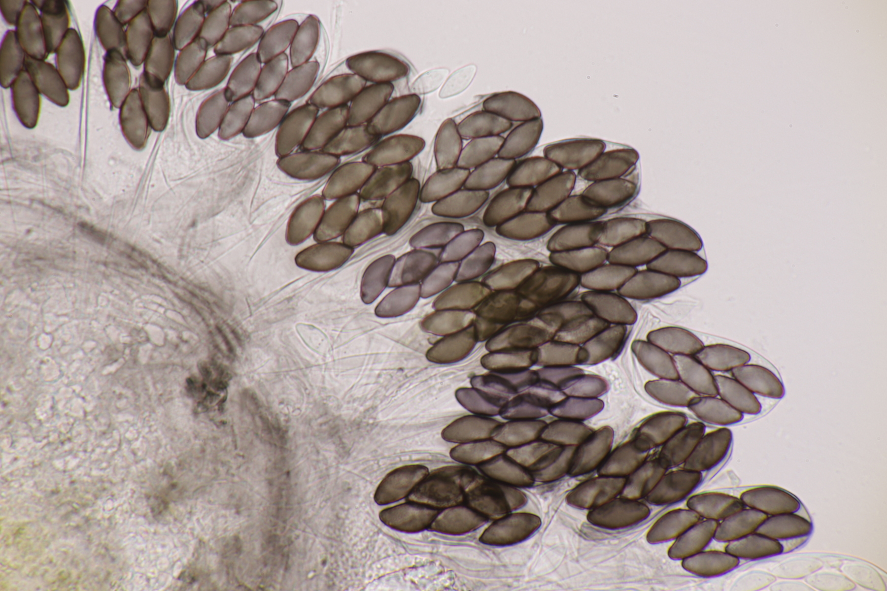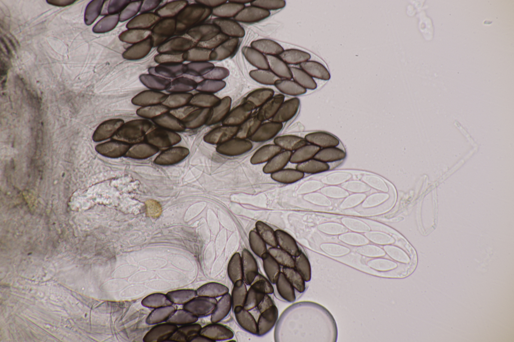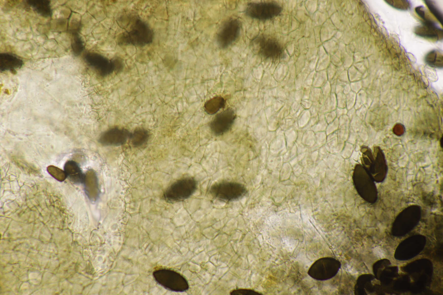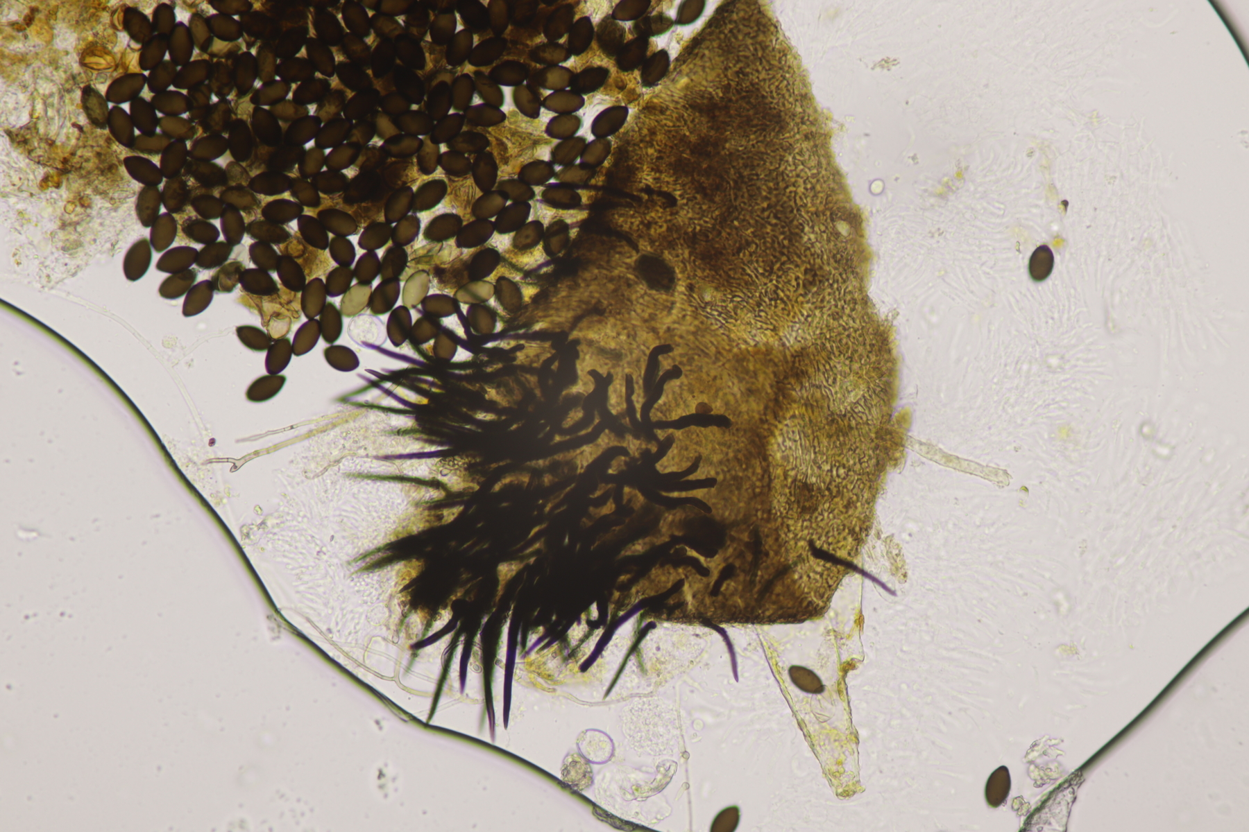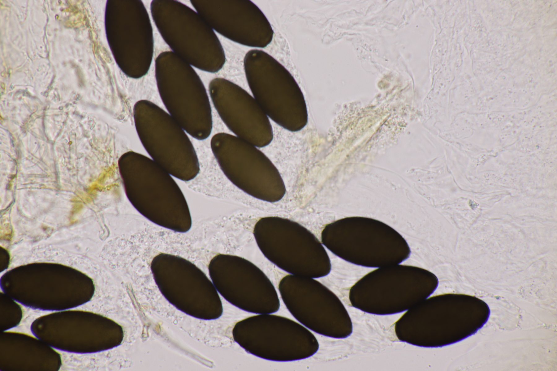 I.1 Sporen messen 19-23 µm x 12-14 µm, so daß ich zu Schizothecium vesticola komme.