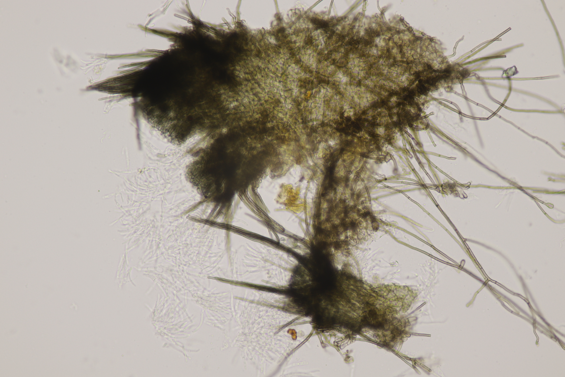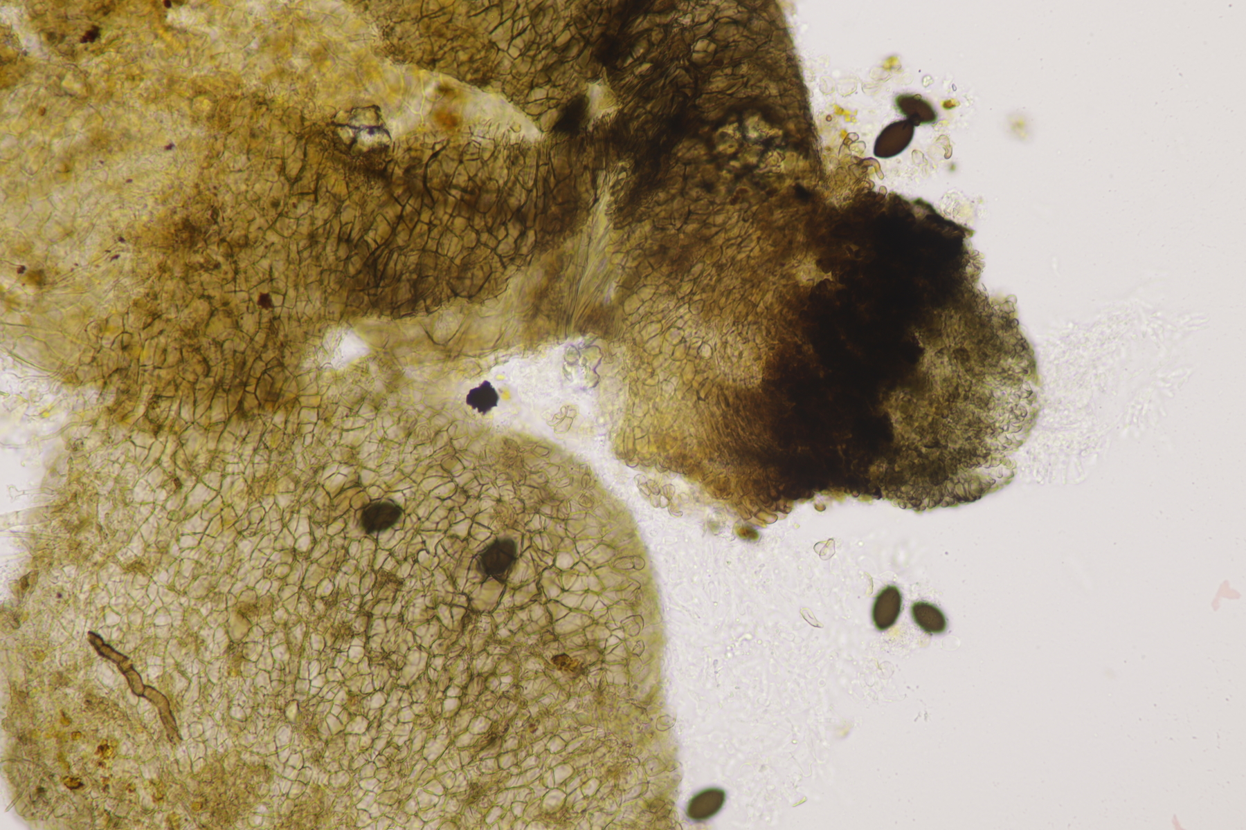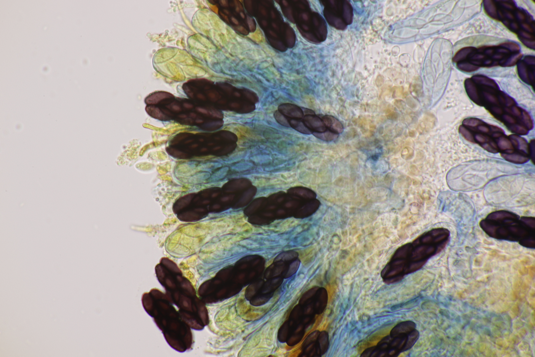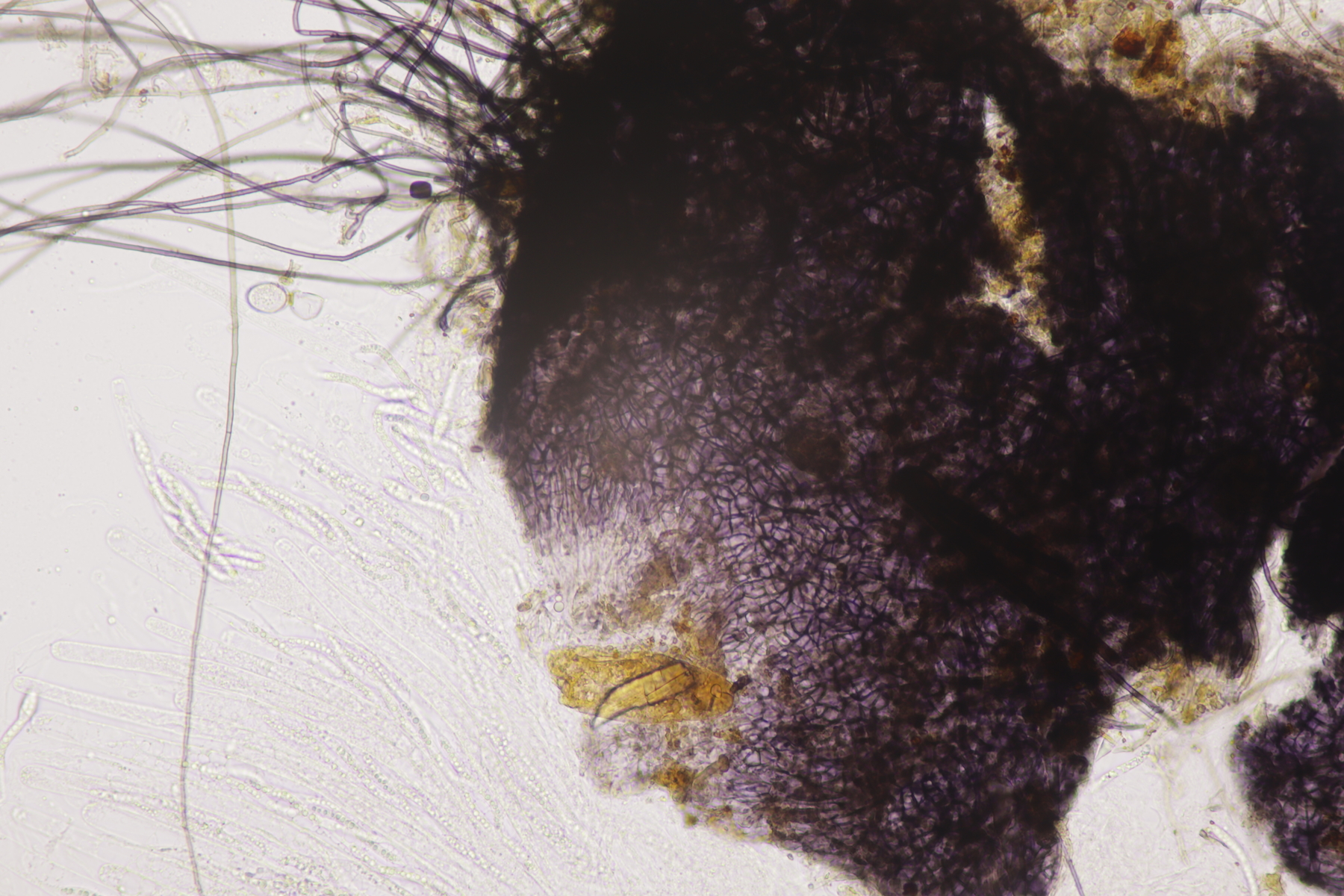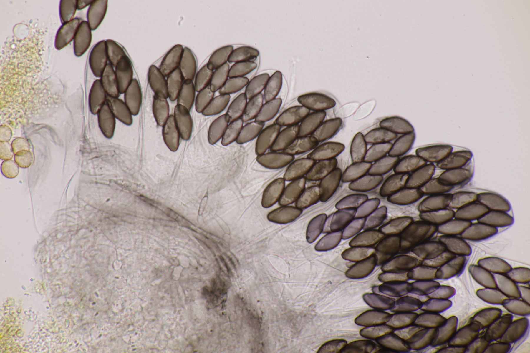 I.1 Sporen messen 19-23 µm x 12-14 µm, so daß ich zu Schizothecium vesticola komme.