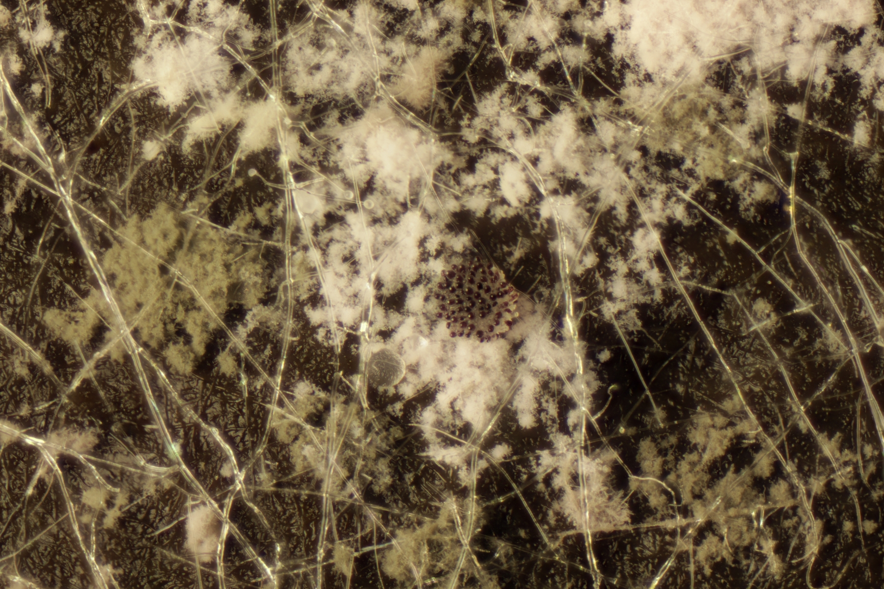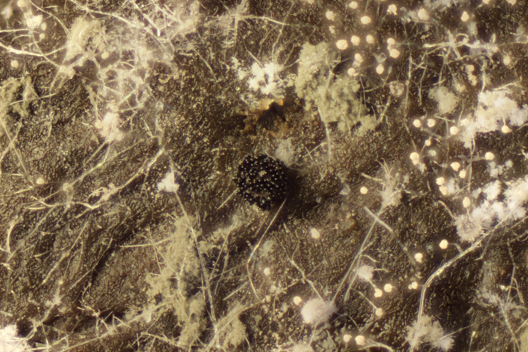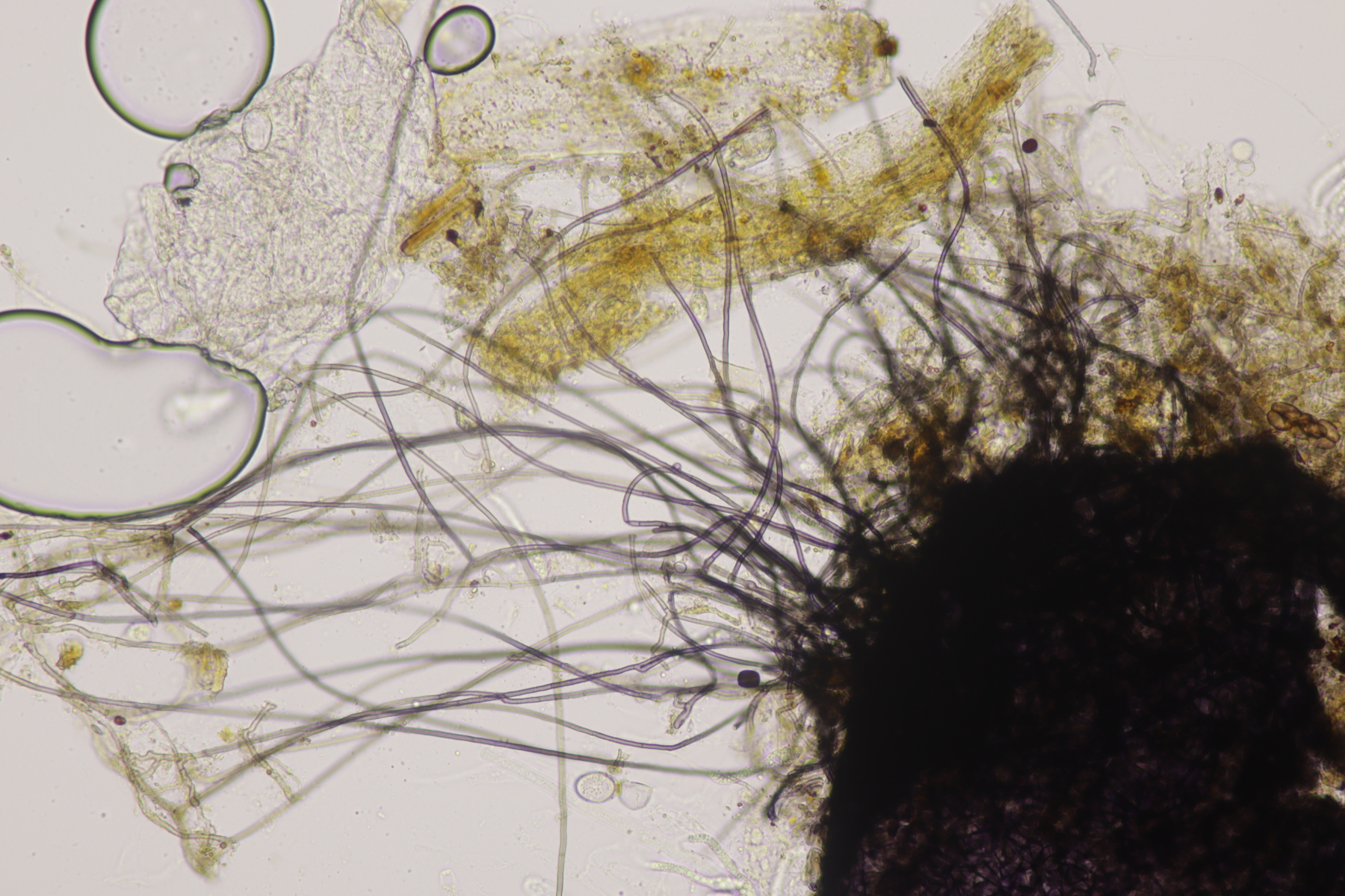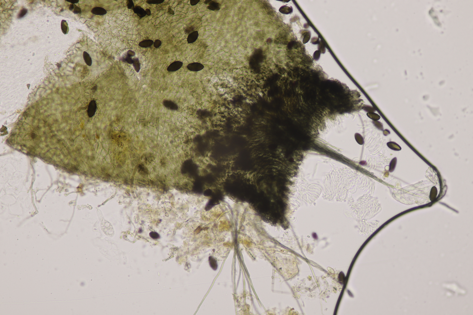 II.1 Auf frischer Losung darf natürlich ein Pilobolus nicht fehlen. Die Sporen messen 4.9-7.4 x 3.1-4.2 µm, Q=1.4-2.0, also Pilobolus roridus. Nicht abgelichtet, aber ebenfalls auf der Probe war auch noch Pilobolus umbonatus.