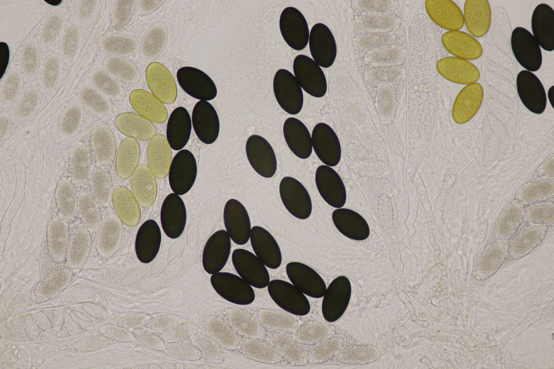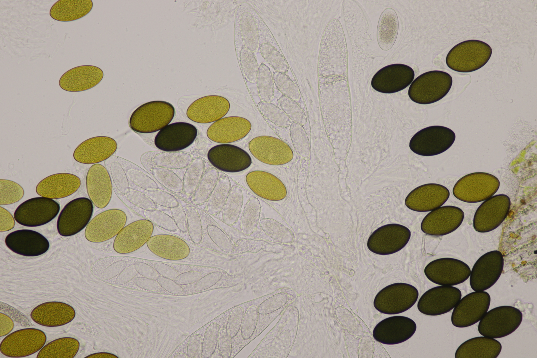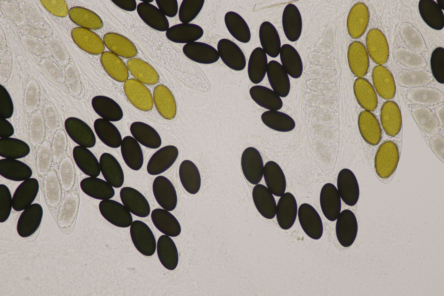 II.2 Ein Saccobolus mit Sporen von 14-16 µm x 6-7 µm, die bis auf kleinere Unreinheiten ein recht glattes Epispor haben. Gelbes Pigment fehlt. Kann das noch S. depauperatus sein oder ist das schon S. versicolor?