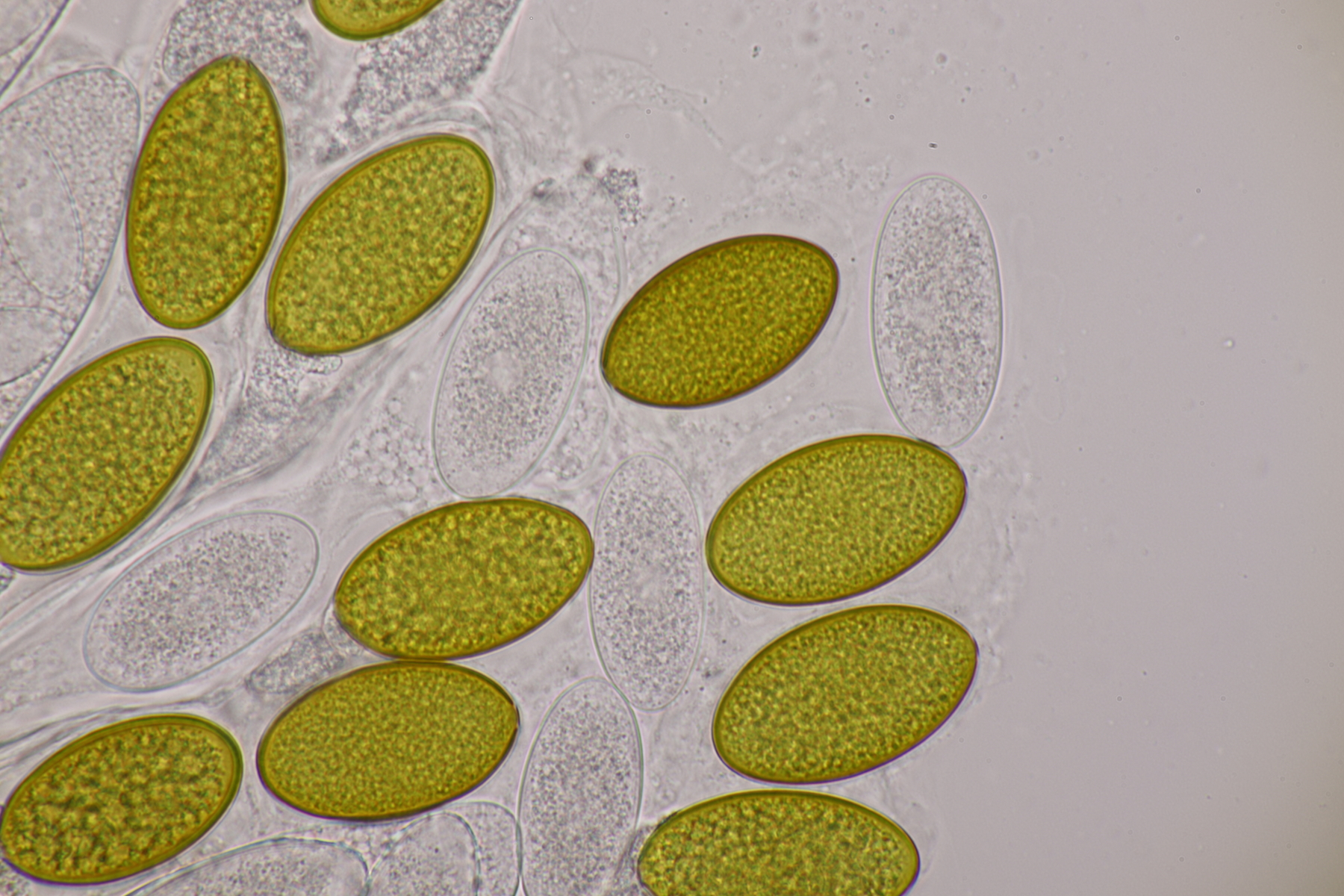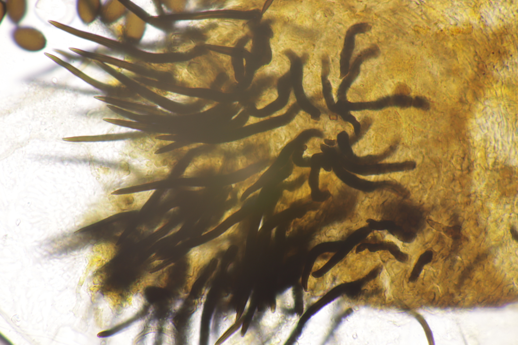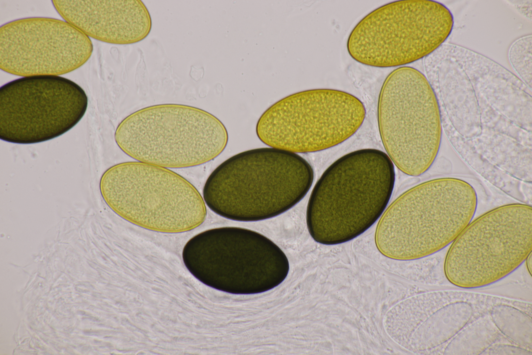 II.2 Ein Saccobolus mit Sporen von 14-16 µm x 6-7 µm, die bis auf kleinere Unreinheiten ein recht glattes Epispor haben. Gelbes Pigment fehlt. Kann das noch S. depauperatus sein oder ist das schon S. versicolor?