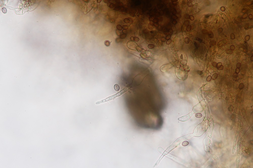 Die Ursprungsidee eines Seitlings, war unter dem Mikroskop schnell verworfen als ich die stark pigmentierten Hyphen der Huthaut gesehen hatte.