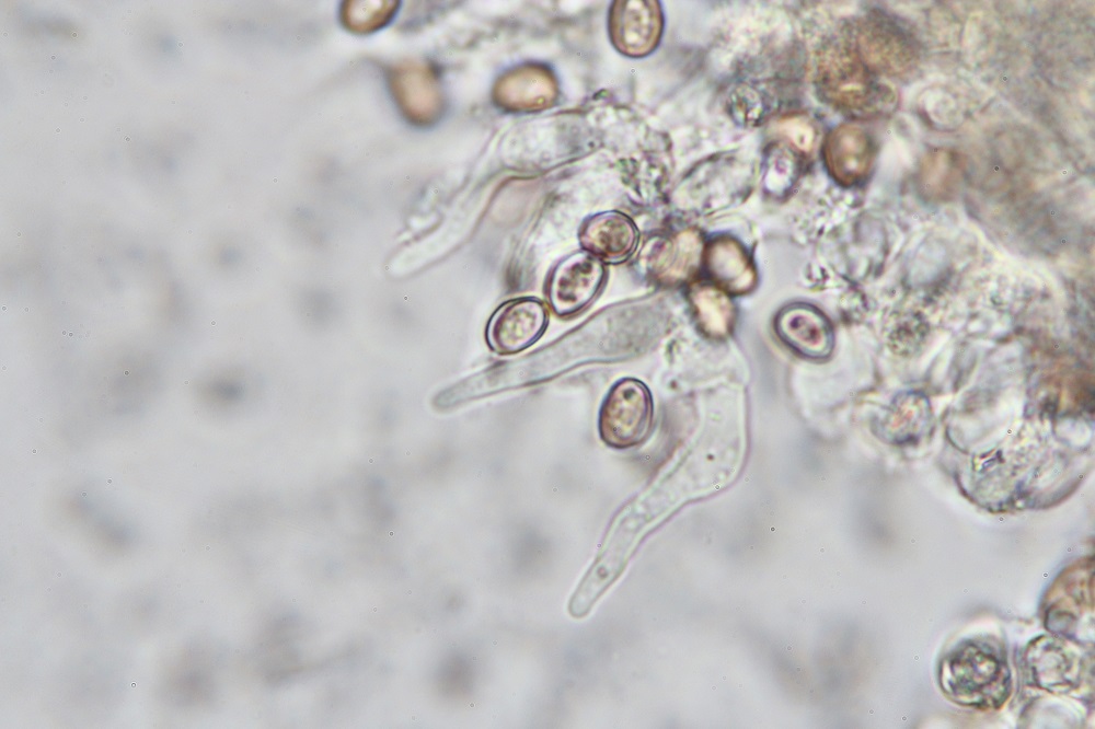 Die Ursprungsidee eines Seitlings, war unter dem Mikroskop schnell verworfen als ich die stark pigmentierten Hyphen der Huthaut gesehen hatte.