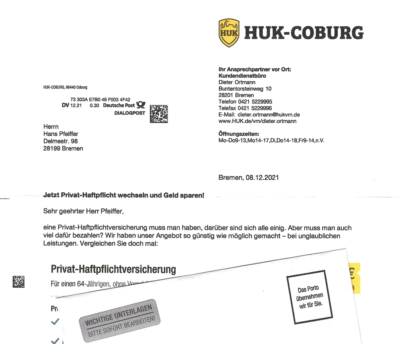 Selbstverständlich habe ich mich aufgrund einiger, eher harmloser Vorkomnisse (Sachbeschädigung [dat weer doch meist gaarnix], Fahren ohne Fahrerlaubnis [dat weer, bevör ik ehr sneller maakt heff], Zechprellerei [ik kann mich nich besinnen], Ruhestörender Lärm [dat weer en oregenal Leed vun Tom Waits, gnäch], vorsätzlicher Vollrausch [ik kann mich ganz un gaar nich besinnen] etc.) mit meiner Versicherung in Verbindung gesetzt und die haben auch recht schnell geantwortet: