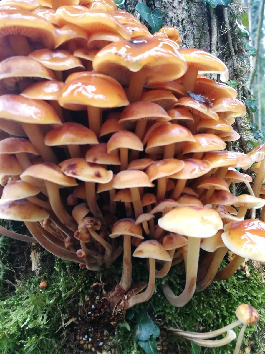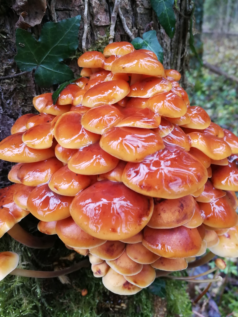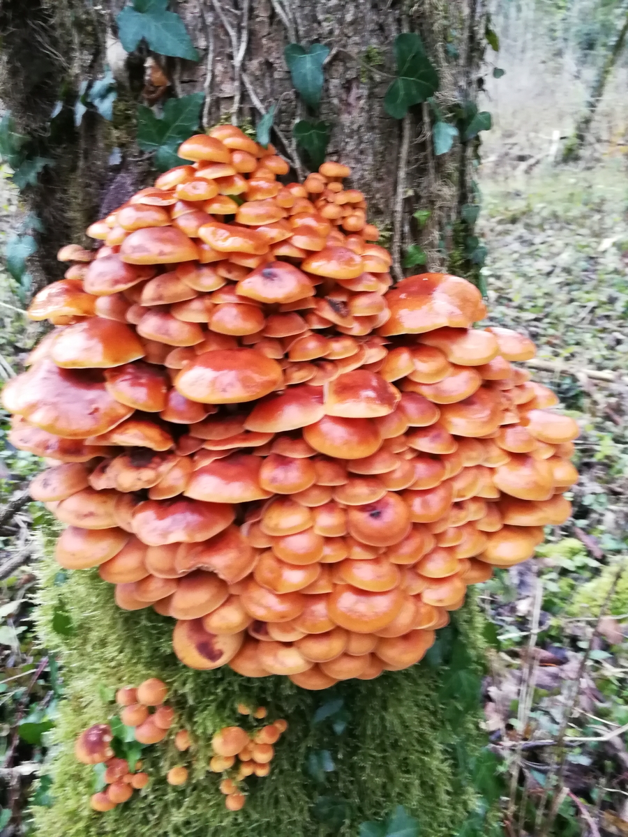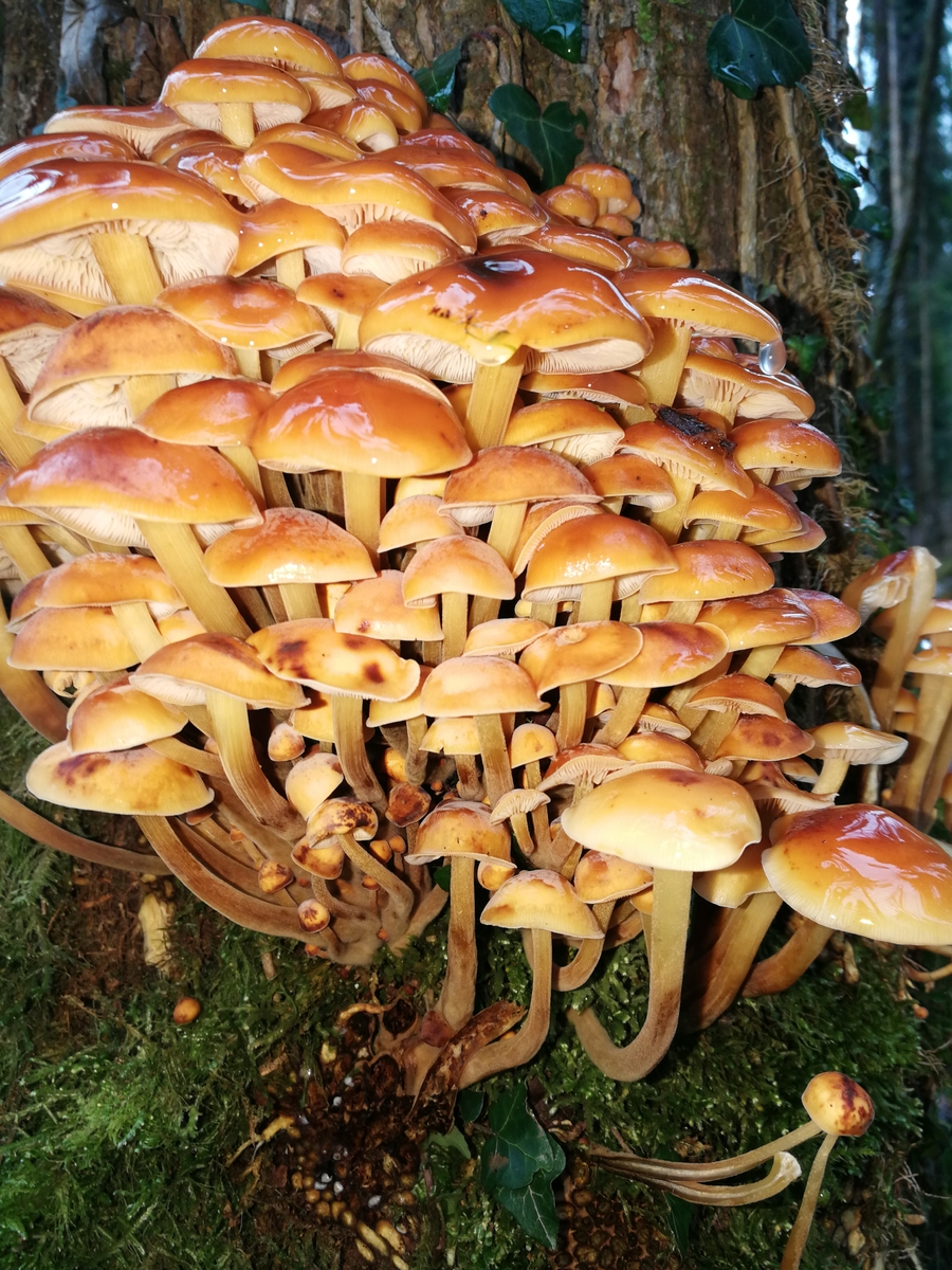 Hab gestern zum ersten mal den Samtfußrübling gefunden, und dann gleich noch in rauhen Mengen. Da es wie gesagt mein erstes mal ist wollte ich hier noch nach eurer (unverbindlichen) Meinung fragen. Leider habe ich in meiner Freude nur sehr spärliches Bildmaterial gemacht, dafür aber einen schnellen Sporenabdruck um eine Verwechslung mit dem Gifthäubling auszuschließen. Gewachsen ist das fette Büschel glaube ich auf einer Esche, jedenfalls definitiv auf einem Laubbaum.