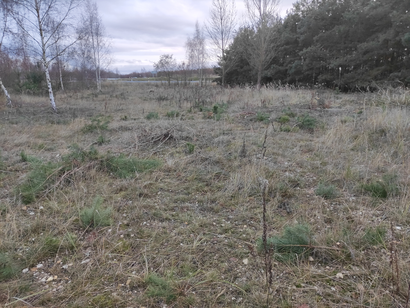 Habitat schaut so aus. Birke, Weide und Kiefer hauptsächlich vor Ort. Offene Fläche mit kleinen Moospolstern, Totholz im Boden kann ich auch nicht ausschließen.