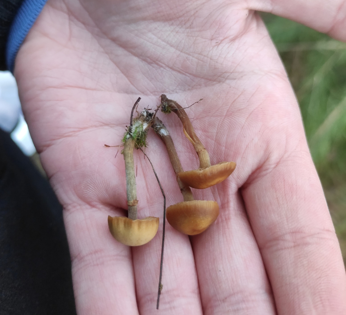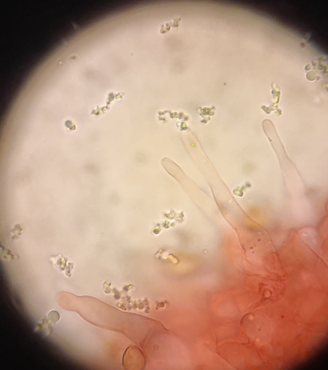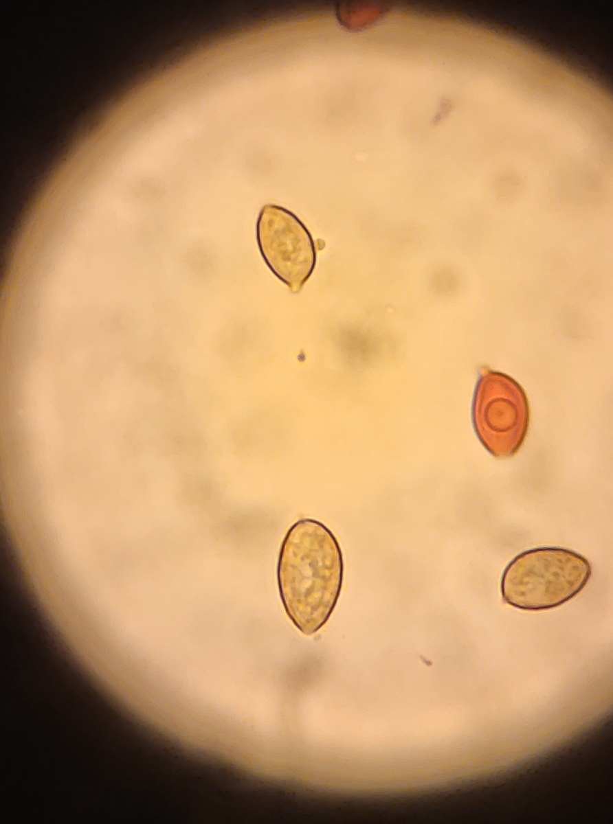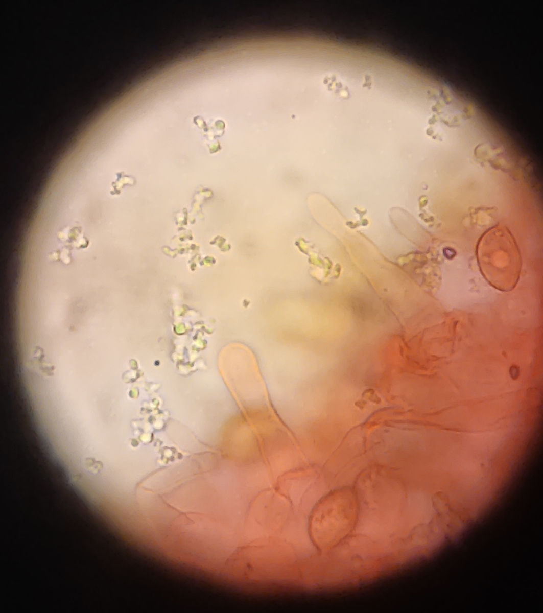 Von gestern habe ich hier noch eine Galerina liegen. Die sah nicht wie die übliche G. marginata aus, also habe ich sie mal mitgenommen um zu gucken ob ich mikroskopisch in der Gattung was reißen kann.