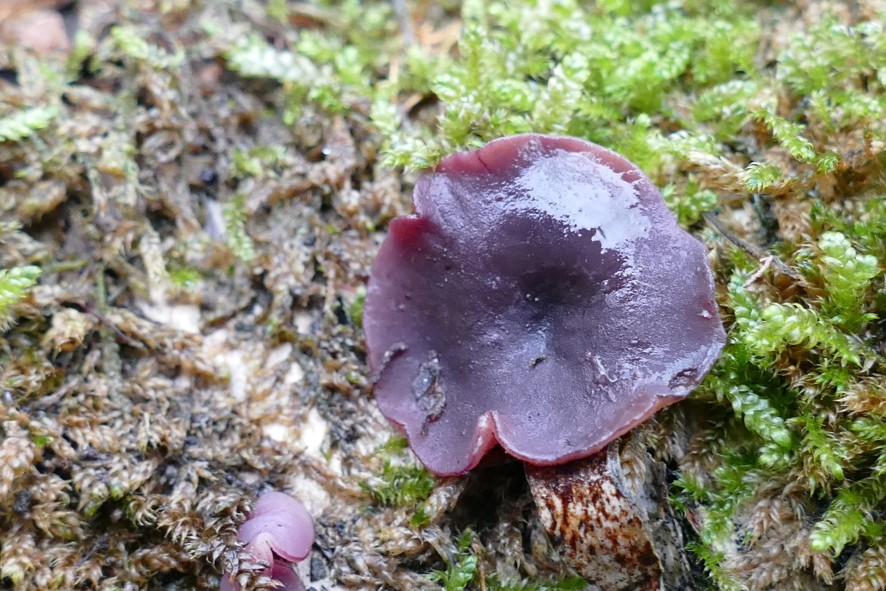 Heute morgen bin wieder Mal auf purpurne, gallertige Discomyceten an einem liegenden, stark vermorschten Birkenstamm gestoßen, die ich als Ascocorgyne einstufen würde.