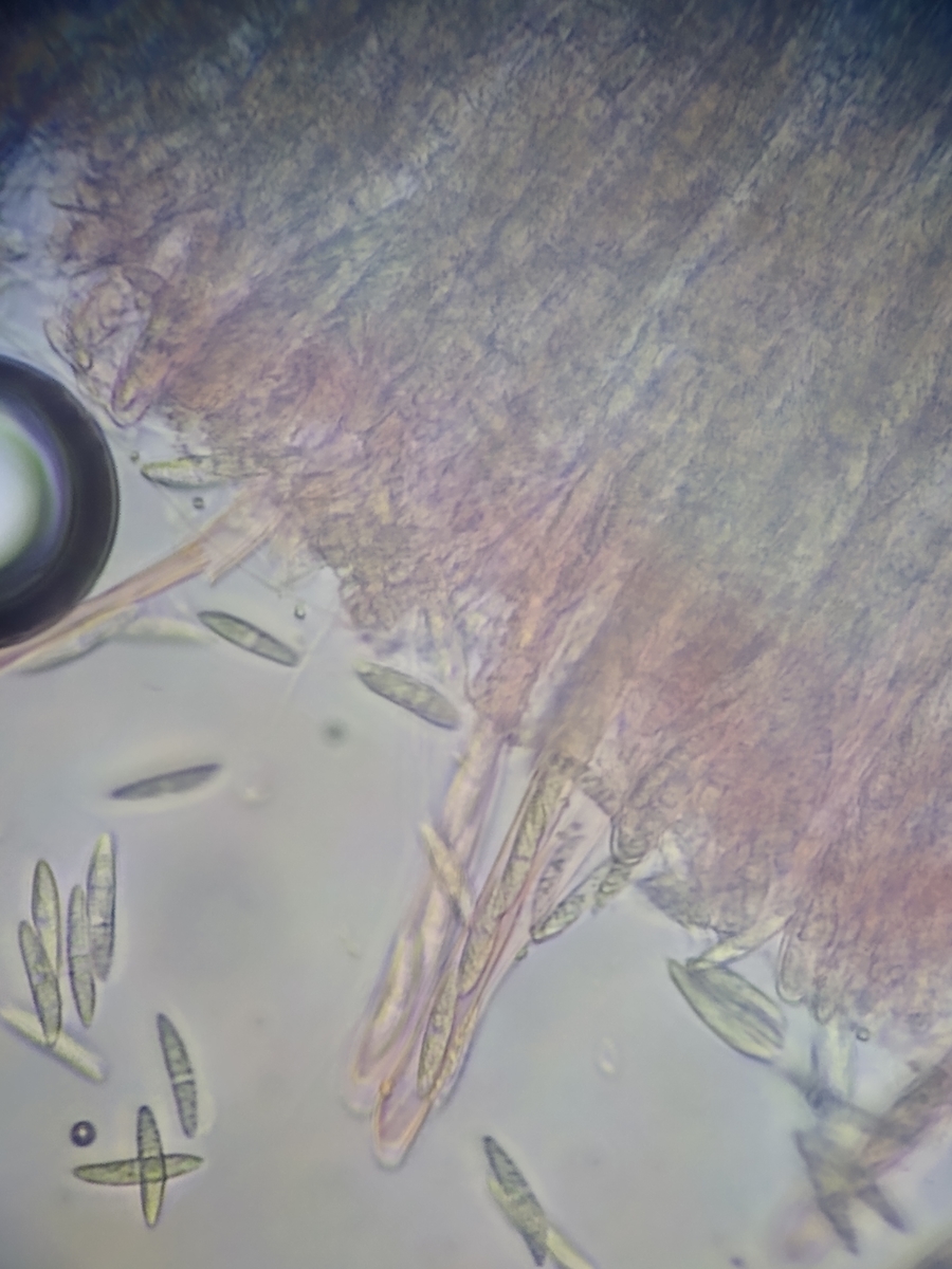 Die Sporen waren teilweise septiert. Jetzt, wo ich die Zeichnungen sehe, denke ich auch Konidien gesehen, leider nicht fotografiert zu haben.