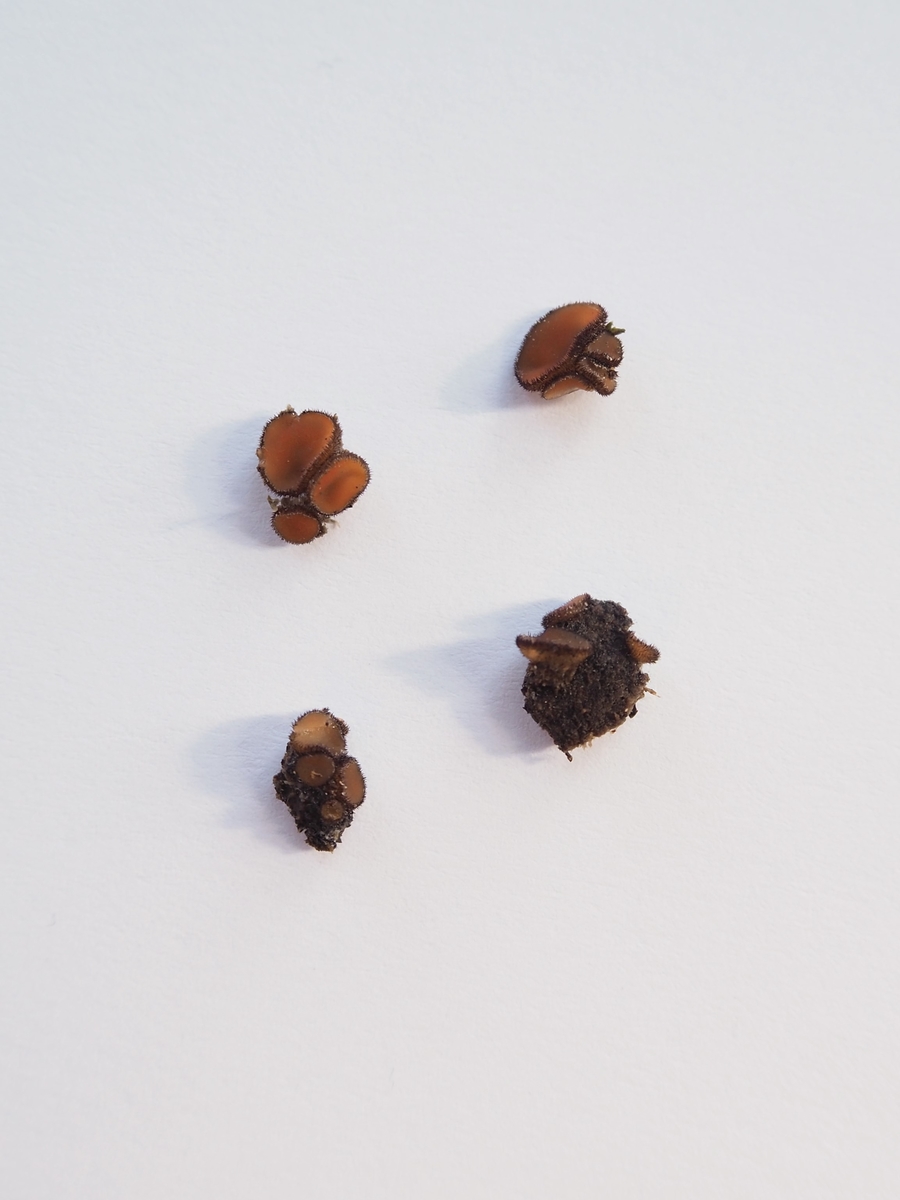 • Servus liebe Freunde der kleinen Becher, als Beifang auf der Schwarzbechersuche habe ich letzte Woche die folgenden Scutellinias eingesteckt. Um nicht die Allgemeinheit mit makroskopisch fast gleich aussehenden Haarbecherchen zu langweilen hänge ich das mal hier an- wer sich dafür interessiert findet das dann schon. Fundort war ein Erlenbruch auf einem sehr stark vermorschten Erlen- oder Eschenstamm. Die Farbe war ein etwas blasseres orange und auffällig waren die makroskopisch bei manchen FK kaum zu sehenden Randhaare, sodass ich zunächst mit der Gattung gar nicht mal so sicher war. Mikrosopisch hat sich aber dann doch schnell Scutellinia bestätigt. Überraschenderweise bin ich mir bei dieser Art sogar relativ sicher, da die Merkmale eigentlich alle sehr gut zu S. kerguelensis passen. Trotzdem möchte ich sie euch gerne vorstellen, erstens weil ich mir als Anfänger nie wirklich sicher sein kann und zweitens weil ich im Forum noch keinen bestätigten Eintrag dazu gefanden habe, falls es denn eine sein sollte.