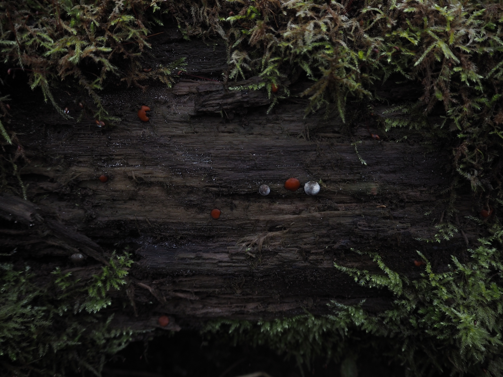 Leider bereits recht düster, neben verschimmelten Lycogalla epidendrum. Das Holz war weich wie pulled pork; entnommen wurden mittig und oben rechts.