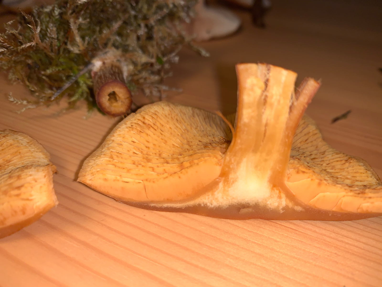 Der von dir gezeigte Pilz ist sehr wahrscheinlich ein Flämmling, aber ob es der Geflecktblättrige ist (Gymnopilus penetrans), darauf mag ich mich nicht festlegen, denn es kann nicht nur der Geflecktblättrige gefleckte Lamellen haben, sondern auch noch andere Flämmlinge.