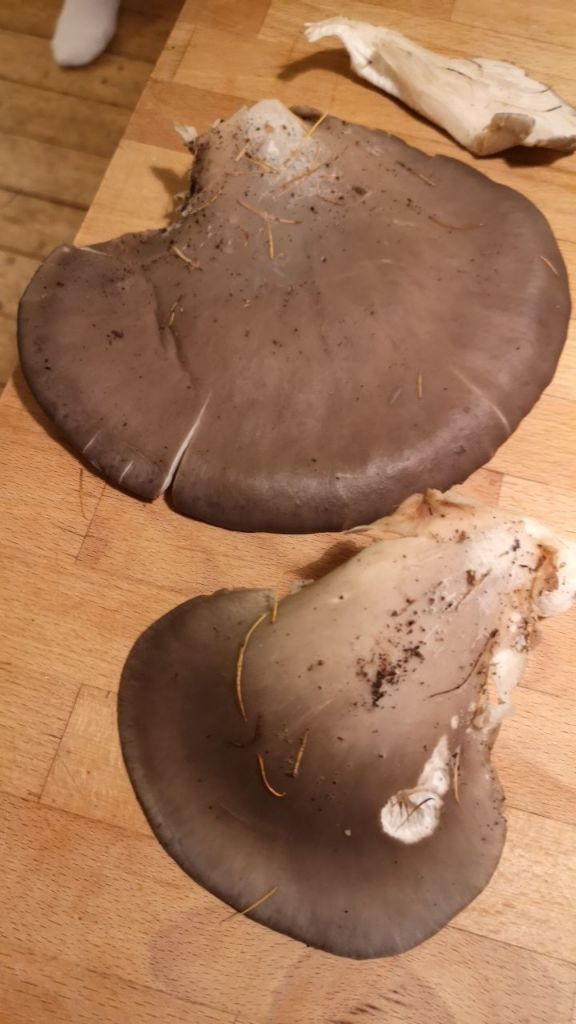 ich sehe da auch Austernseitlinge. Nach meiner Erfahrung werden mit zunehmendem Alter lediglich die Stiele etwas zäher, keinesfalls die Hüte. Ich verwende allerdings auch die Stiele gern. Einfach etwas der Länge nach ein- zweimal auseinander zupfen und mitbraten. Kochen sollte man Austernpilze eher nicht, gebraten sind sie viel besser.