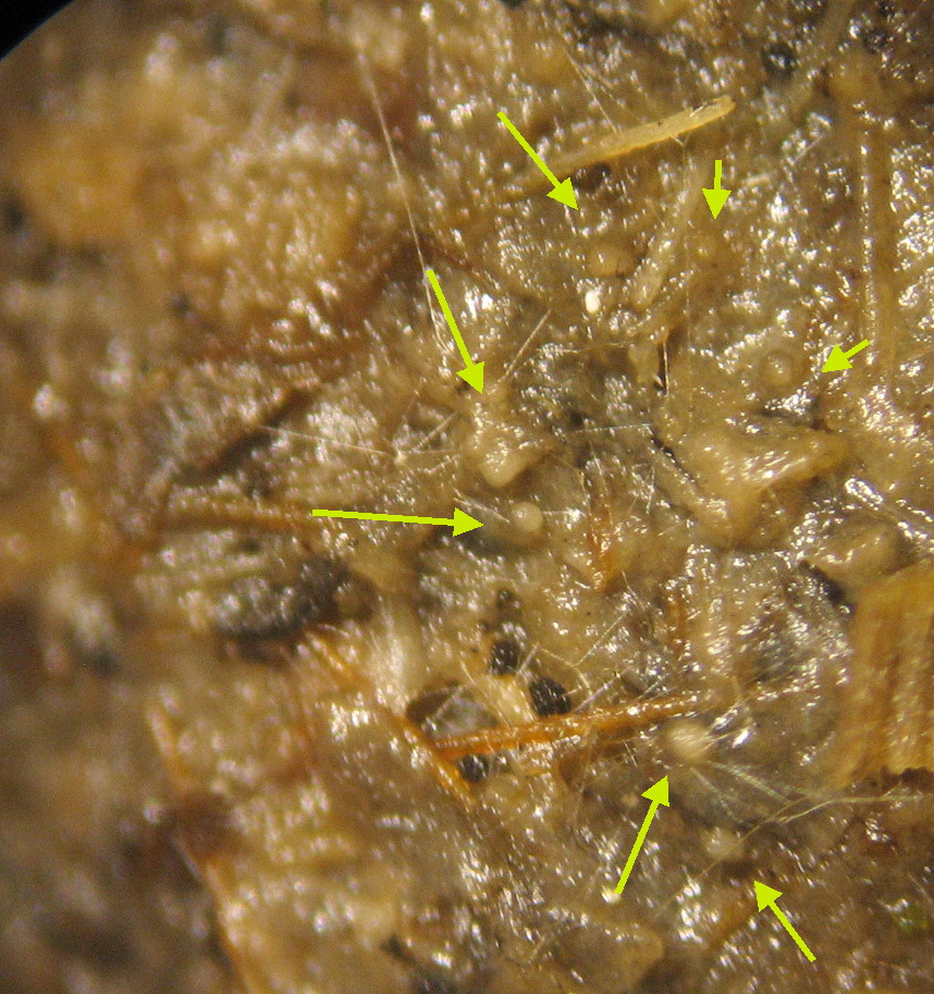 Interessanter Weise zeigen sich im Prinzip nur dunkle Knubbelchen, ein Schleimer und