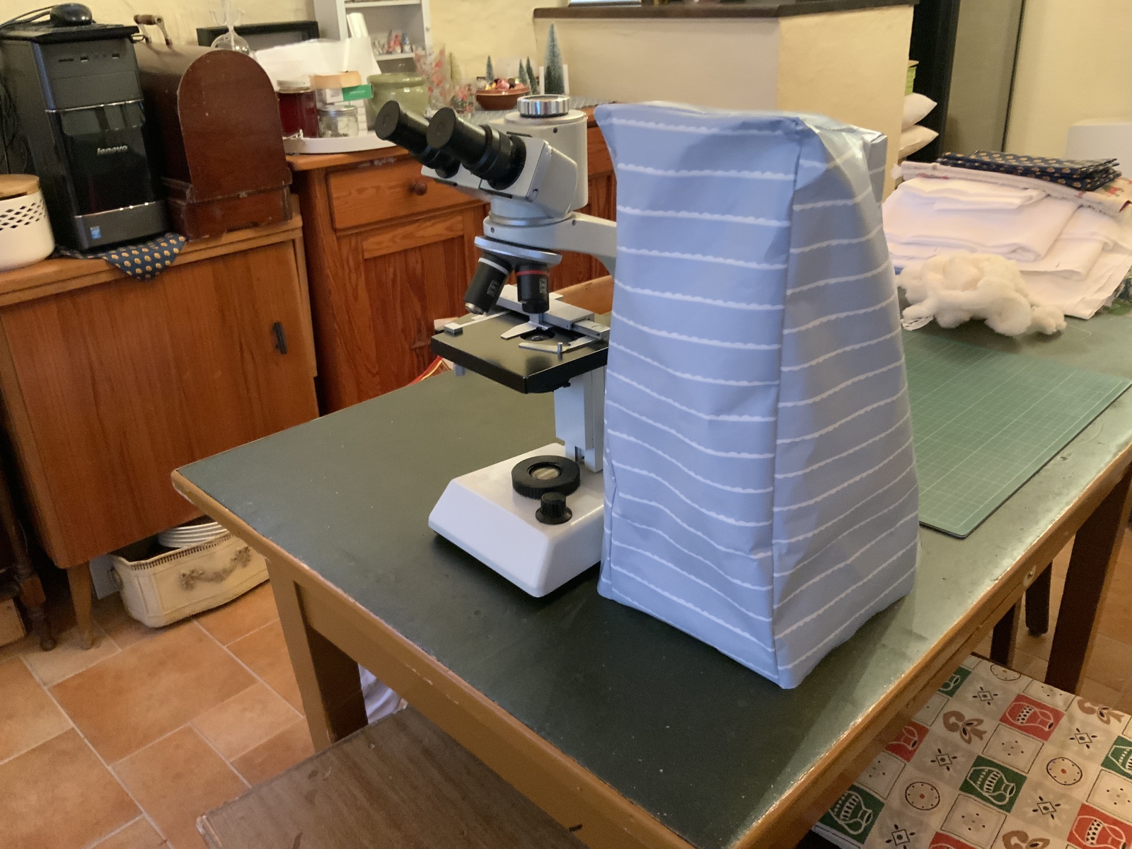 ein Mikroskop, das in längeren Arbeitspausen quasi nur herumsteht, zieht magisch Staub an. Da empfiehlt es sich, das gute Stück abzudecken.