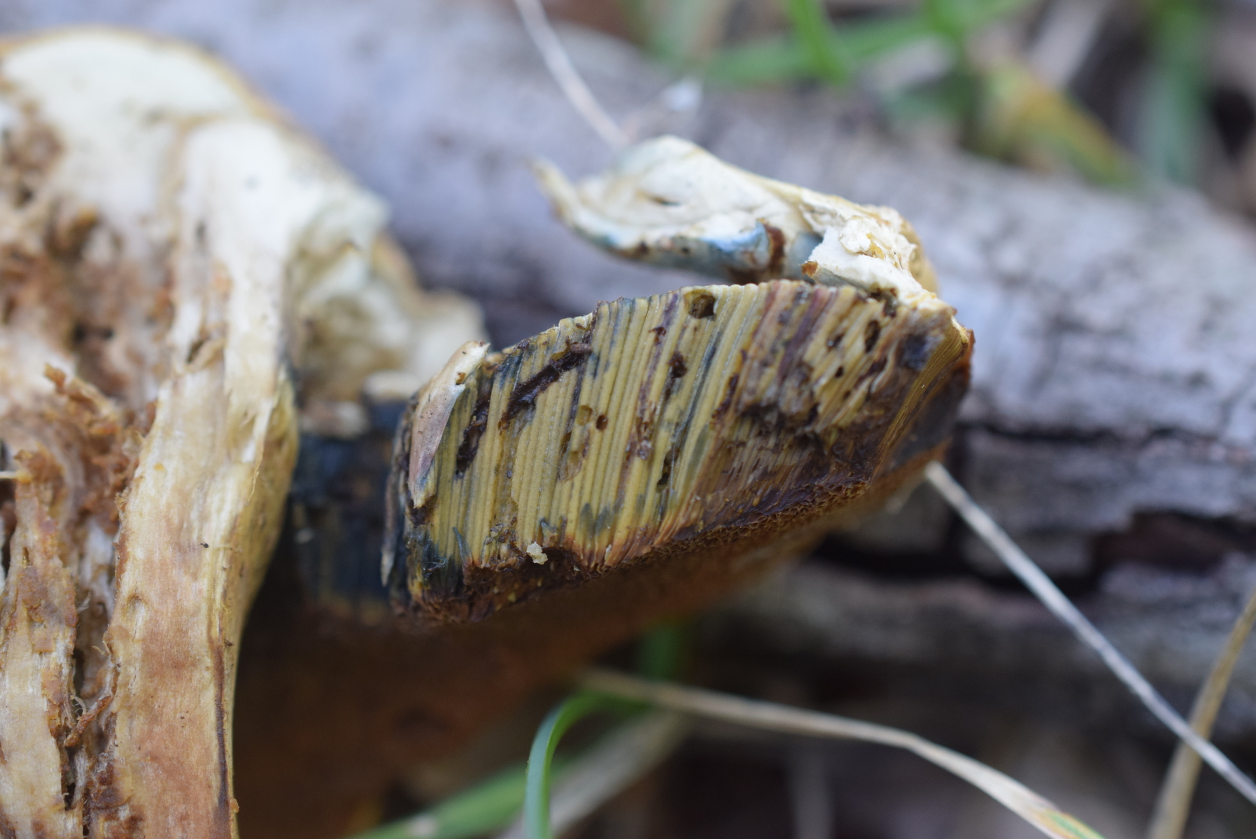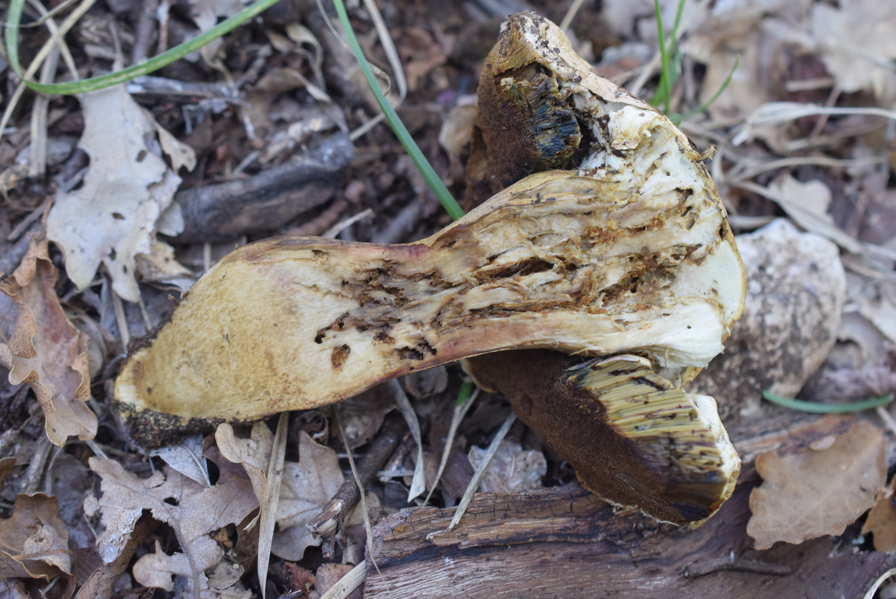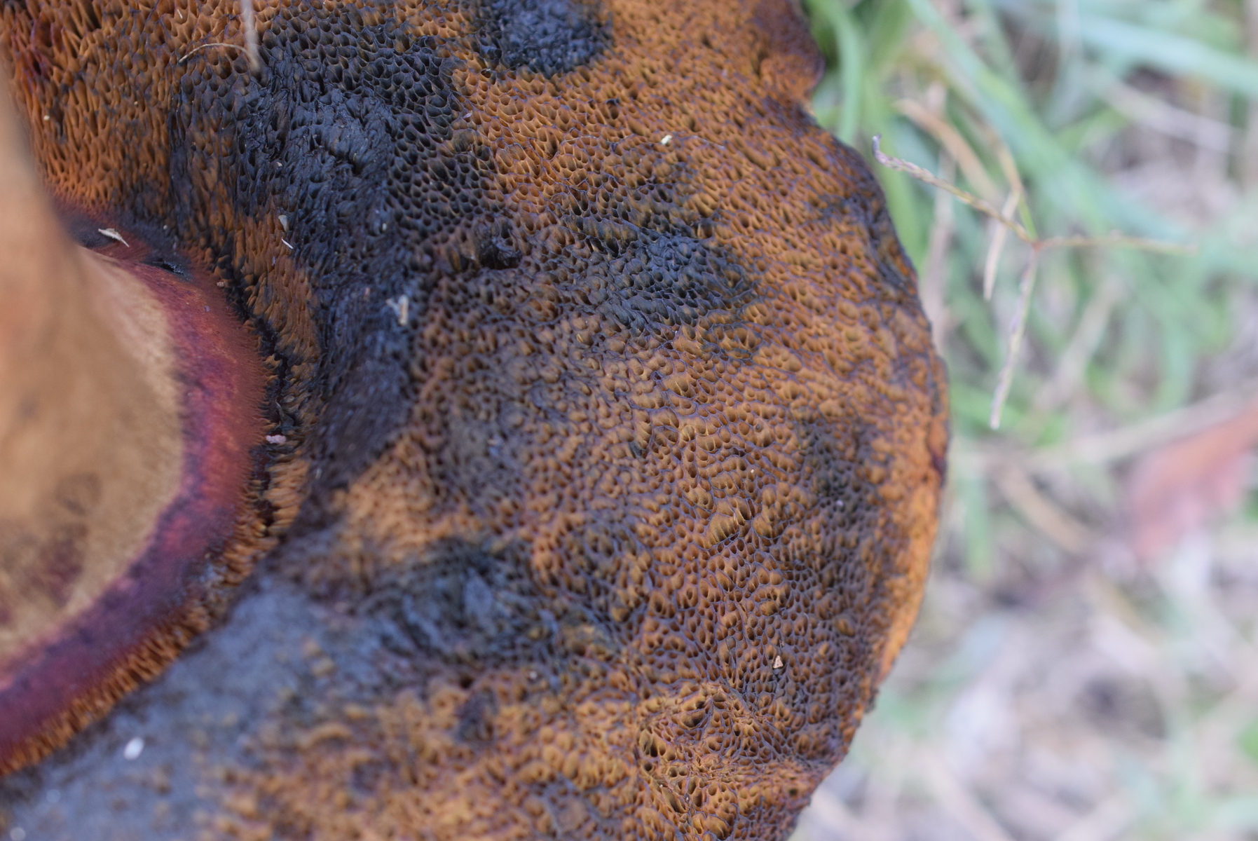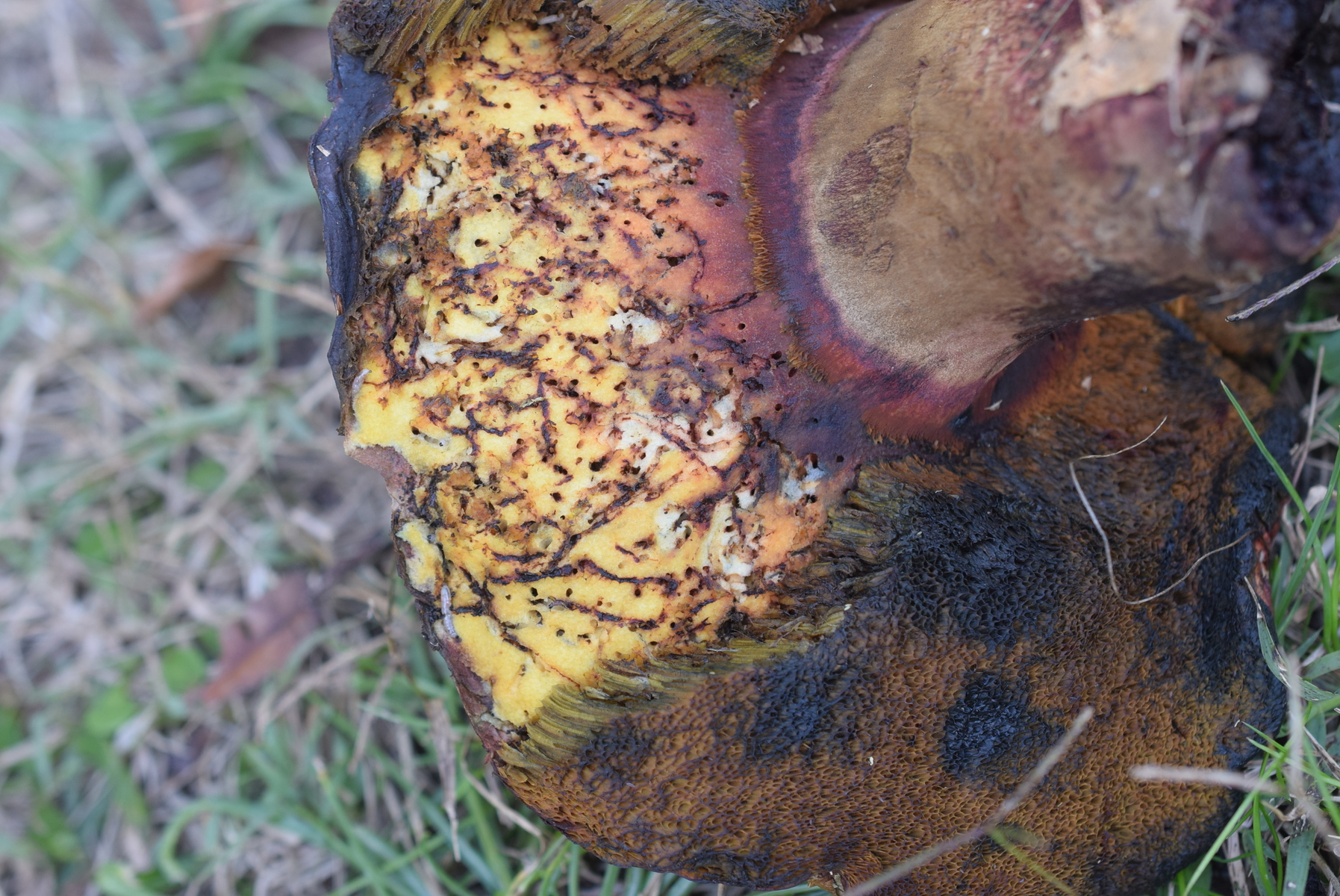 2. Lleider nur ein Exemplar dazu vertrocknet . Meine das um Boletus gehet , kein Leccinum zb. lepideum . Nicht Amyloid . Sehr ungewöhnlich kein Stielnetz wie zb- bei B. edulis .