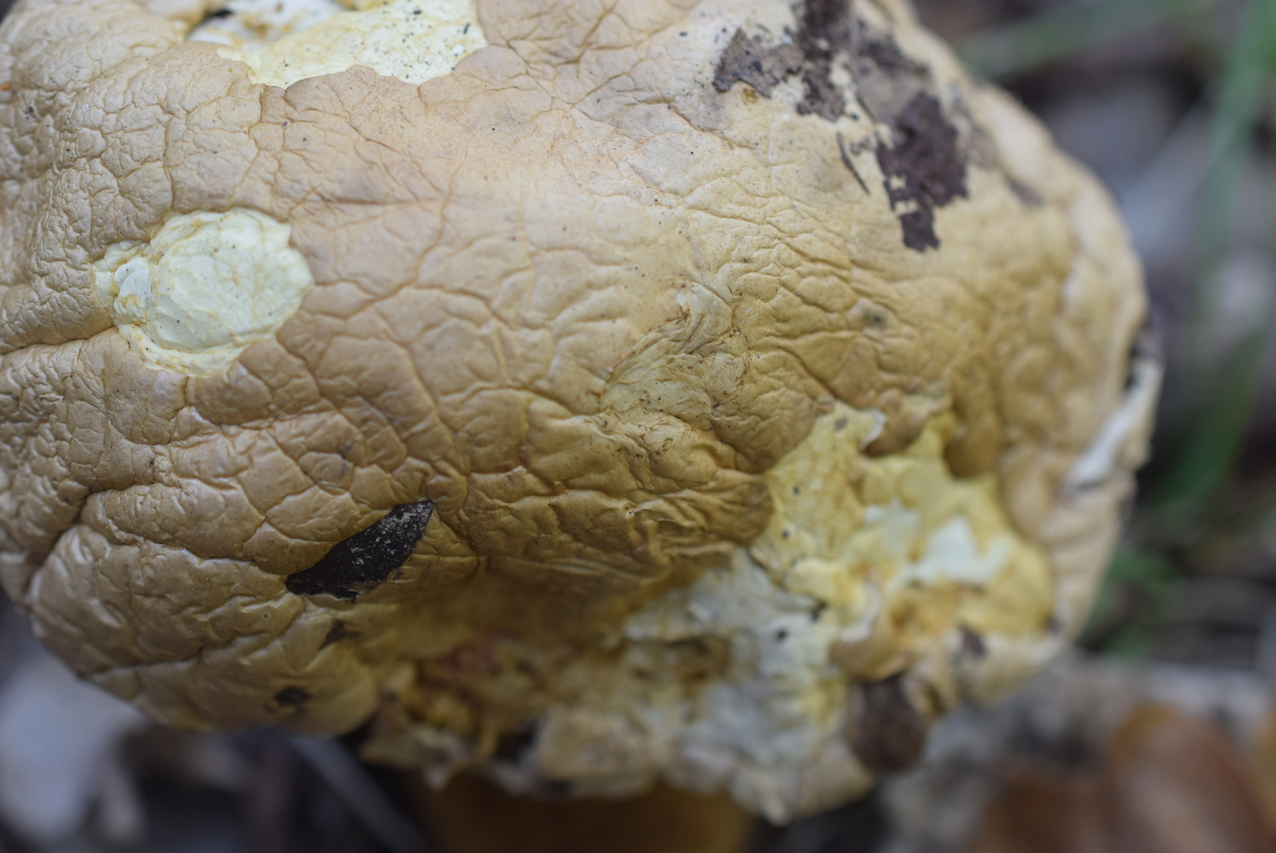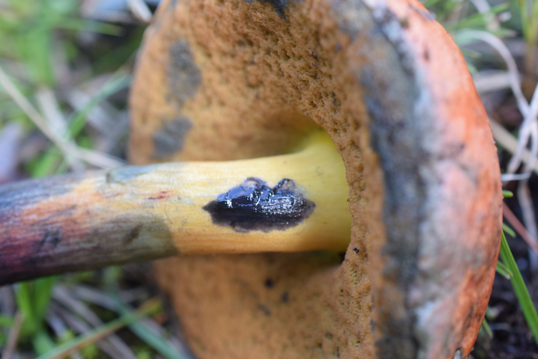 1. Fundort gepflegte wiese mit nur ein paar zerstreute alte dicke Steineiche . Kein Stielnetz bei Bildvergrößerung an Stiel etwas an punkte ähnlich zu sehen . Geruch neutral , Geschmack Richtung mild . Suillellus queletii ist nicht weil nicht Amyloid ist ( MELZER ) Hab an Calpboletus radicans ( in Region sehr selten ) gedacht aber bin unsiecher , komischr Rohrenfarbe und auch Röhrenbodenfarbe . Leider nur diese 2 ältere Exemplaren . in nähe ganze Unbekannte Lactarius Kollektion .