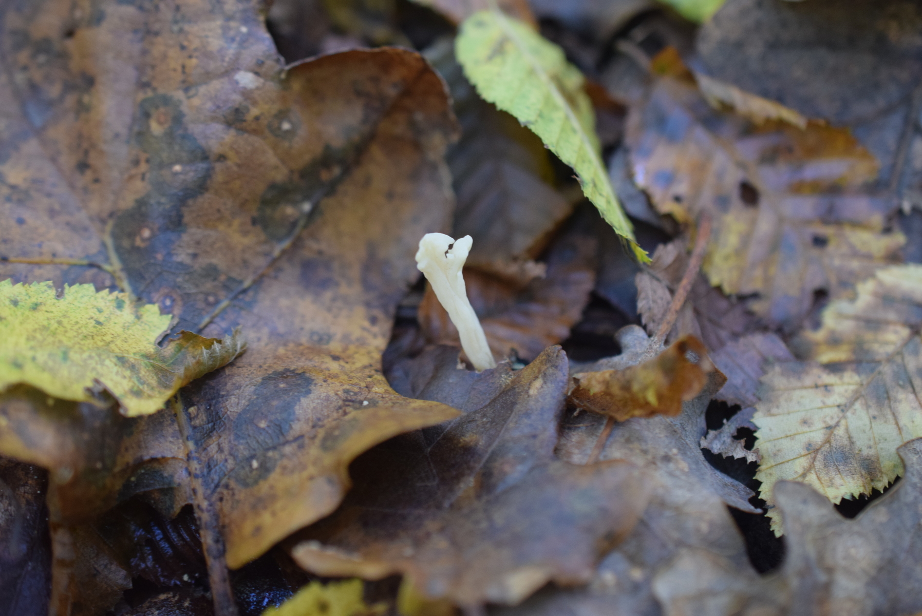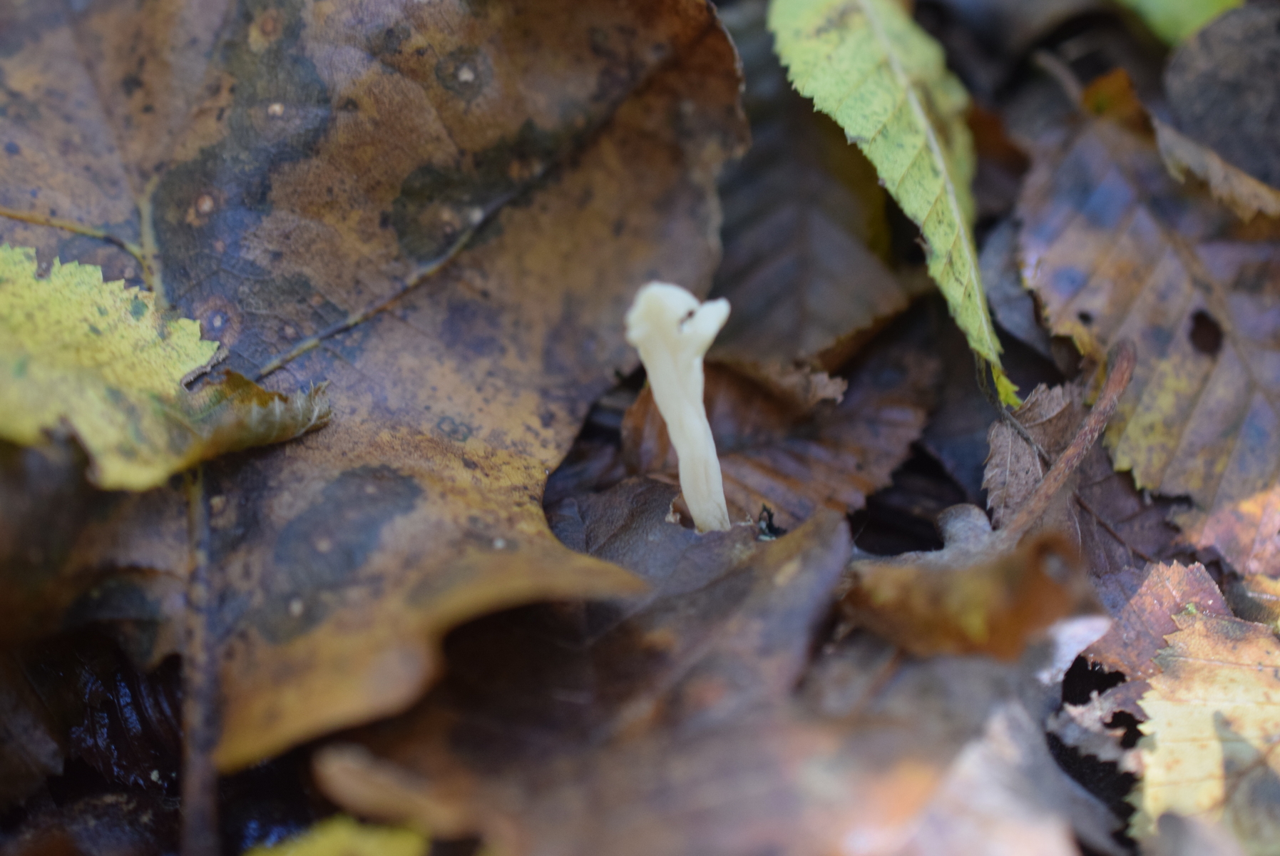 An Xylaria hypoxylon ähnlich aber ohne schwarze stiel . Wachsen direkt aus Erde , Geruch kein , Geschmack hab nicht getestet . Frk ca 1 cm hoch . Unten Laubbäume , Eiche & Company gefunden . Glaube das Nadelbäume kommen nicht in frage aber na ja nicht 100% siecher