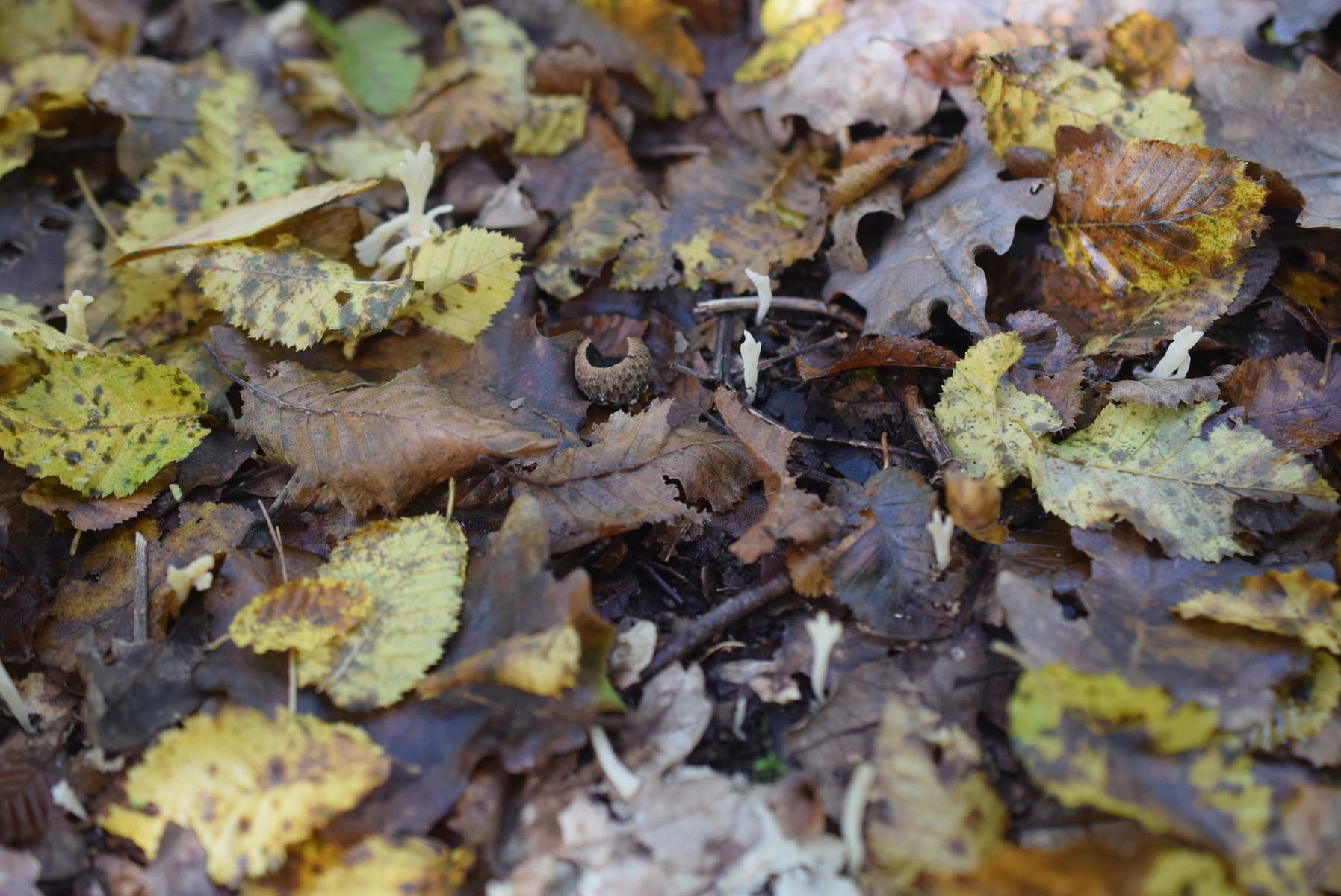 An Xylaria hypoxylon ähnlich aber ohne schwarze stiel . Wachsen direkt aus Erde , Geruch kein , Geschmack hab nicht getestet . Frk ca 1 cm hoch . Unten Laubbäume , Eiche & Company gefunden . Glaube das Nadelbäume kommen nicht in frage aber na ja nicht 100% siecher