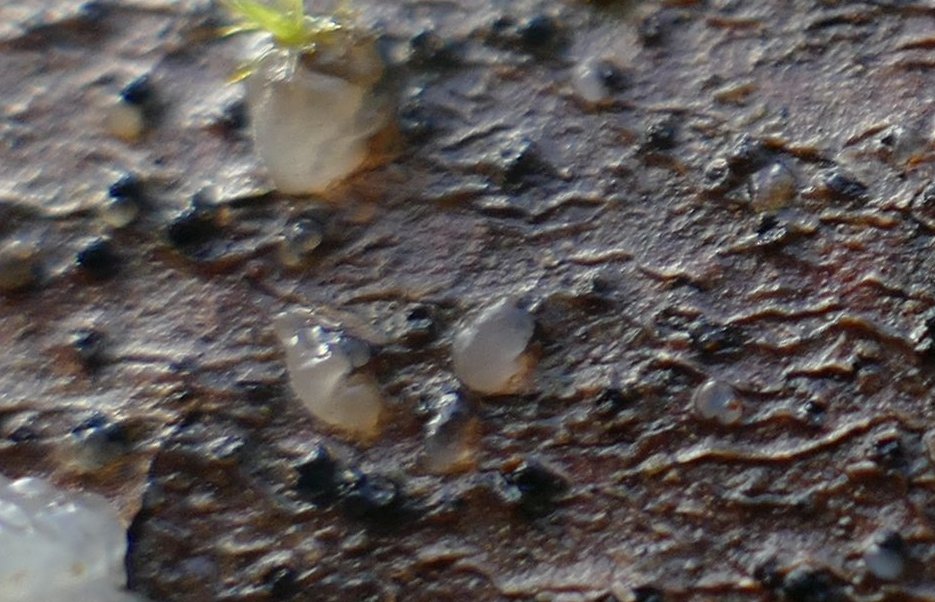 Ach ja, noch ein paar unscheinbar weißliche Gallertpilze, die in der Nähe der Judasohren wuchsen: