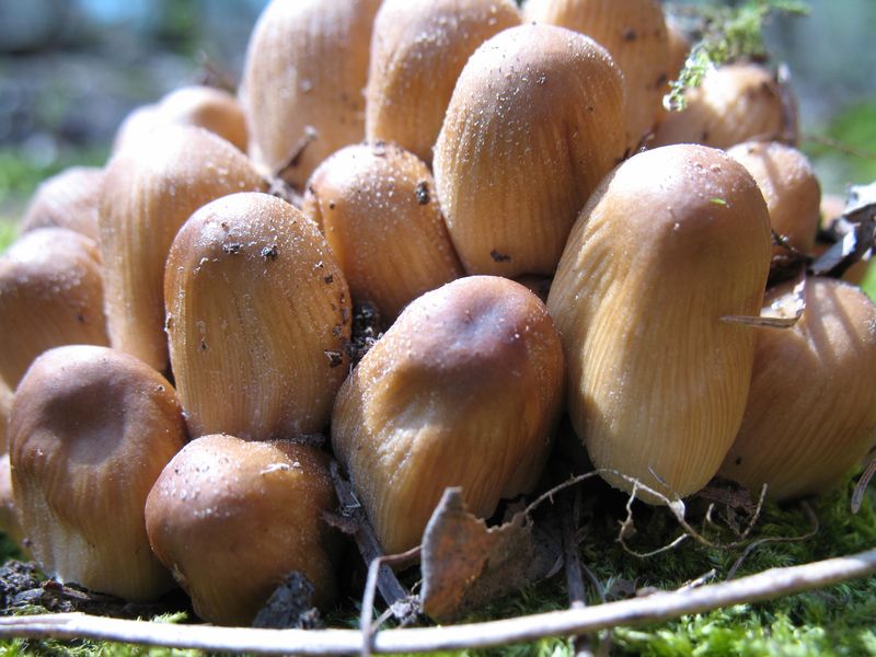 Zum Glimmertintling würde ich eher weniger tendieren. Vor allem auf dem zweiten Bild sieht man sehr lange Hüte; beim Glimmertintling sind sie eher kurz und nach unten hin eingeschnürt. Ich würde eher auf den Weiden- (C. truncorum) oder den Überzuckerten Tintling (C. saccharinus) tippen. Das ist zumindest meine Erfahrung und eher Mutmaßung. Sicherheit bringt nur das Mikroskop.