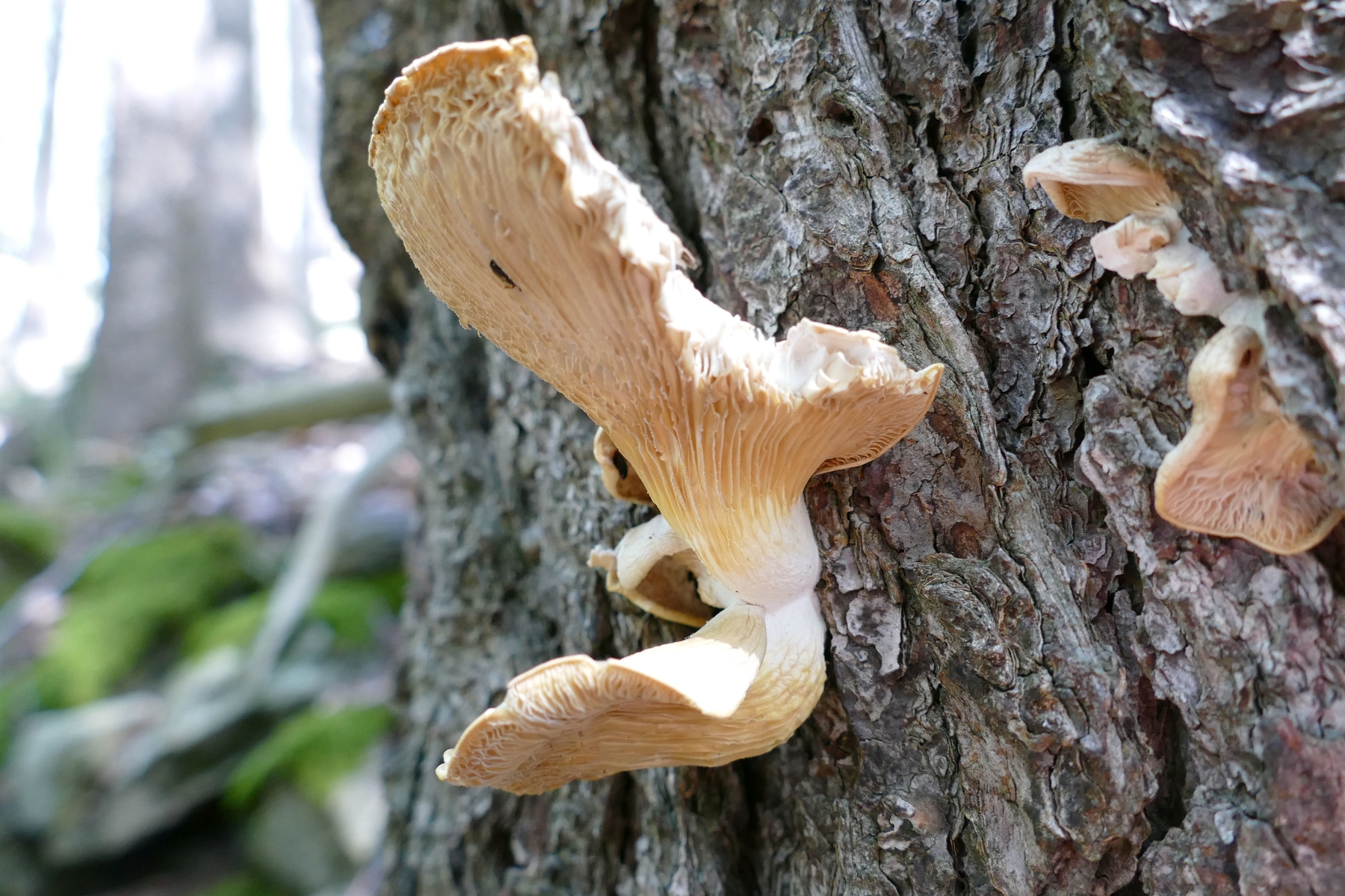 An folgenden Aufnahmen aus dem Sommerurlaub (August) im Harz meine ich, vor allem wegen der Färbung, vielleicht am ehesten Zitronenseitlinge (Pleurotus citrinopileatus) zuordnen zu können.
