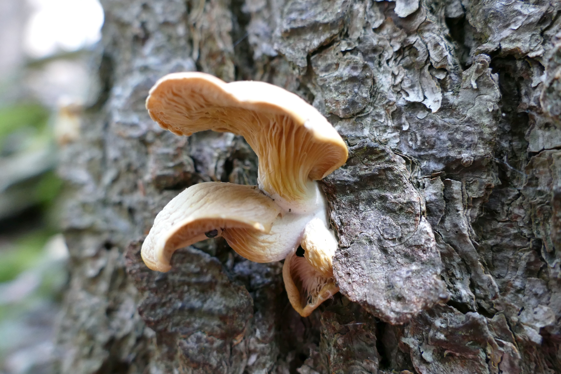 Blöderweise sind die Lamellen gelblich statt weiß, der Baum wohl eher kein Laubbaum und die runzlige Hutoberseite lässt mich vermuten, hier vielleicht auf verfärbte Pilzleichen hereinzufallen.