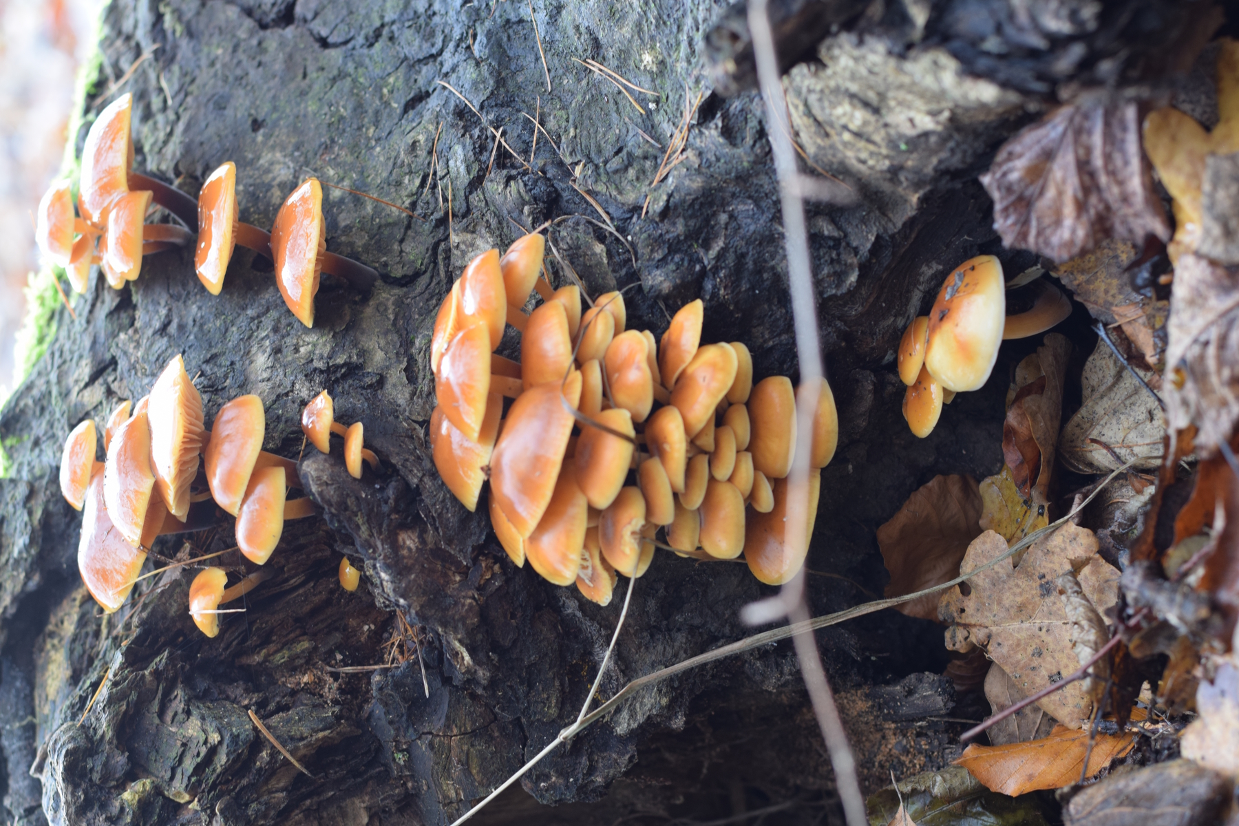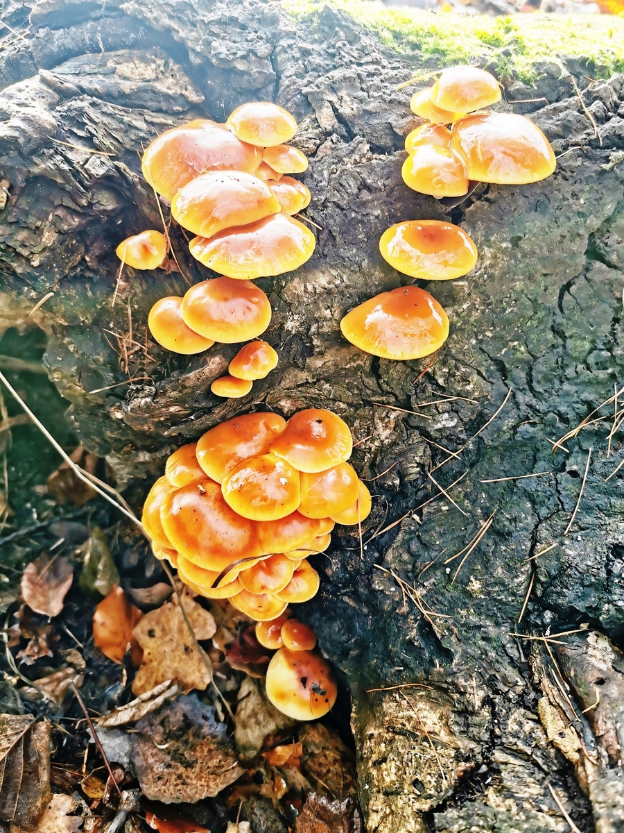 Ich habe schon öfter nach Samtfußrüblingen und Austernpilze gesucht, aber nie viel gefunden. Dieses Jahr habe ich bisher nur ein einziges Büschel Austernseitlinge und eine kleine Handvoll Samtfußrüblinge gefunden. Heute aber wurde ich von sehr vielen Samtfußrüblingen überrascht. Allerdings fand ich nicht einen einzigen Austernseitling. Unterwegs war ich in einem Laubwald mit Buchen, Eichen, Ahorn und vielen Birkenbäumen, in dem auch sehr viel Totholz rumliegt. Hier ein paar Bilder.