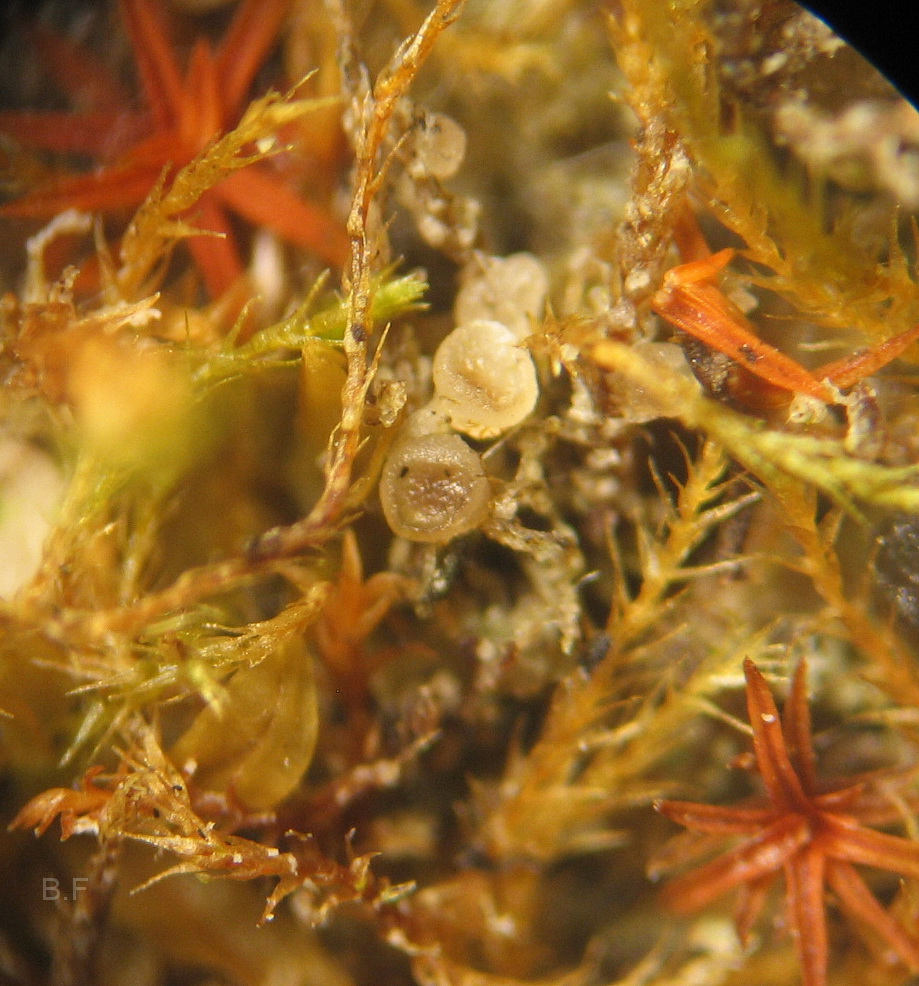 Ich hab hier etwas flechtenartiges auf abgestorbenen Moosresten entdeckt,
