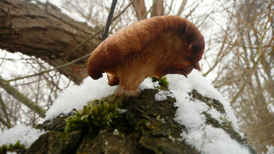 Könnte das ein Austernseitling sein? Allerdings macht mich das solitäre Wachstum stutzig.