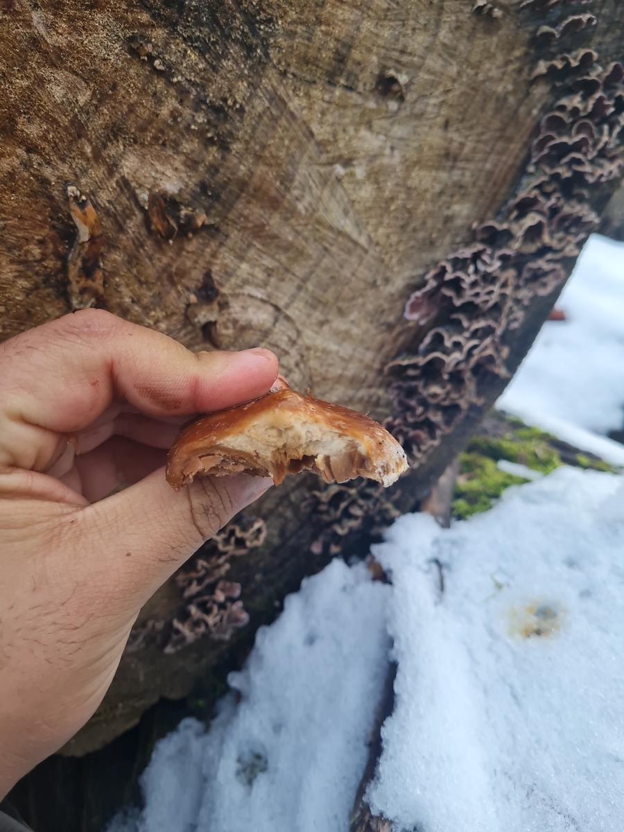 waren gefroren und am selben Holz wuchsen die samtrübis welche allerdings erst am