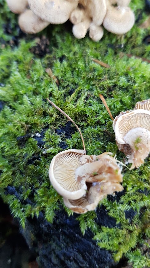 Bei dem folgenden Pilz käme ich auf den Herben Zwergknäueling. Keine Ahnung, ob ich da richtig liege. Leider ließen sich die Pilze nur schwer vom Substrat lösen. Erst zuhause ist mir aufgegfallen, dass ich leider ein Stück vom Stiel mit abgeschnitten habe.