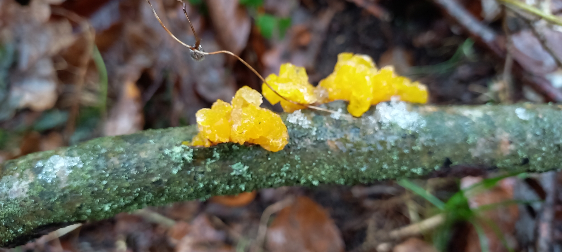 So eine Tremella kann bei starkem Wind schon mal abreißen und zu Boden fallen - wie auch diverse Strauchflechten, die man im Wald immer wieder auf dem Laub findet.