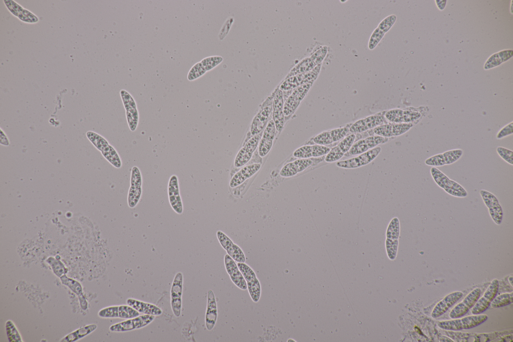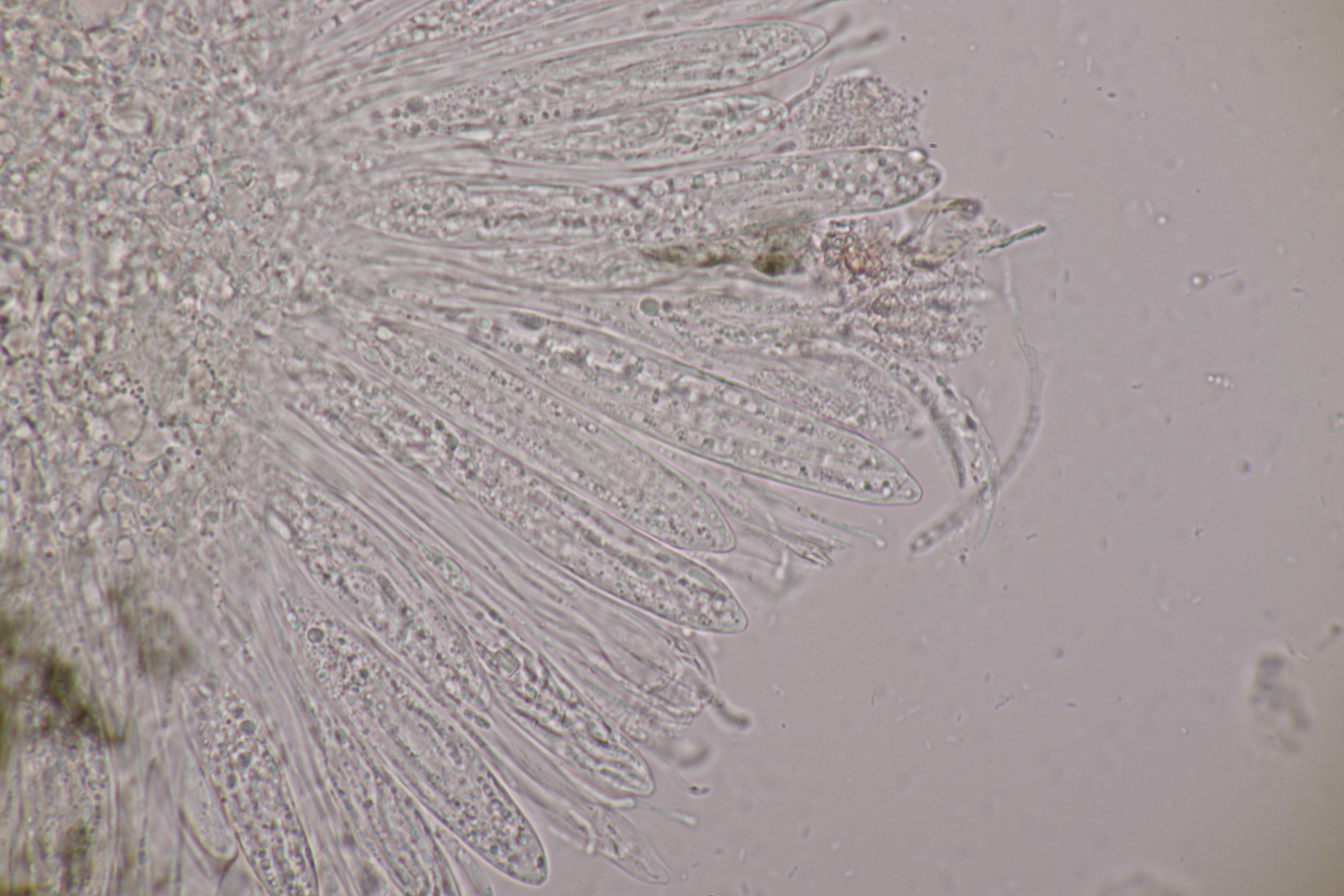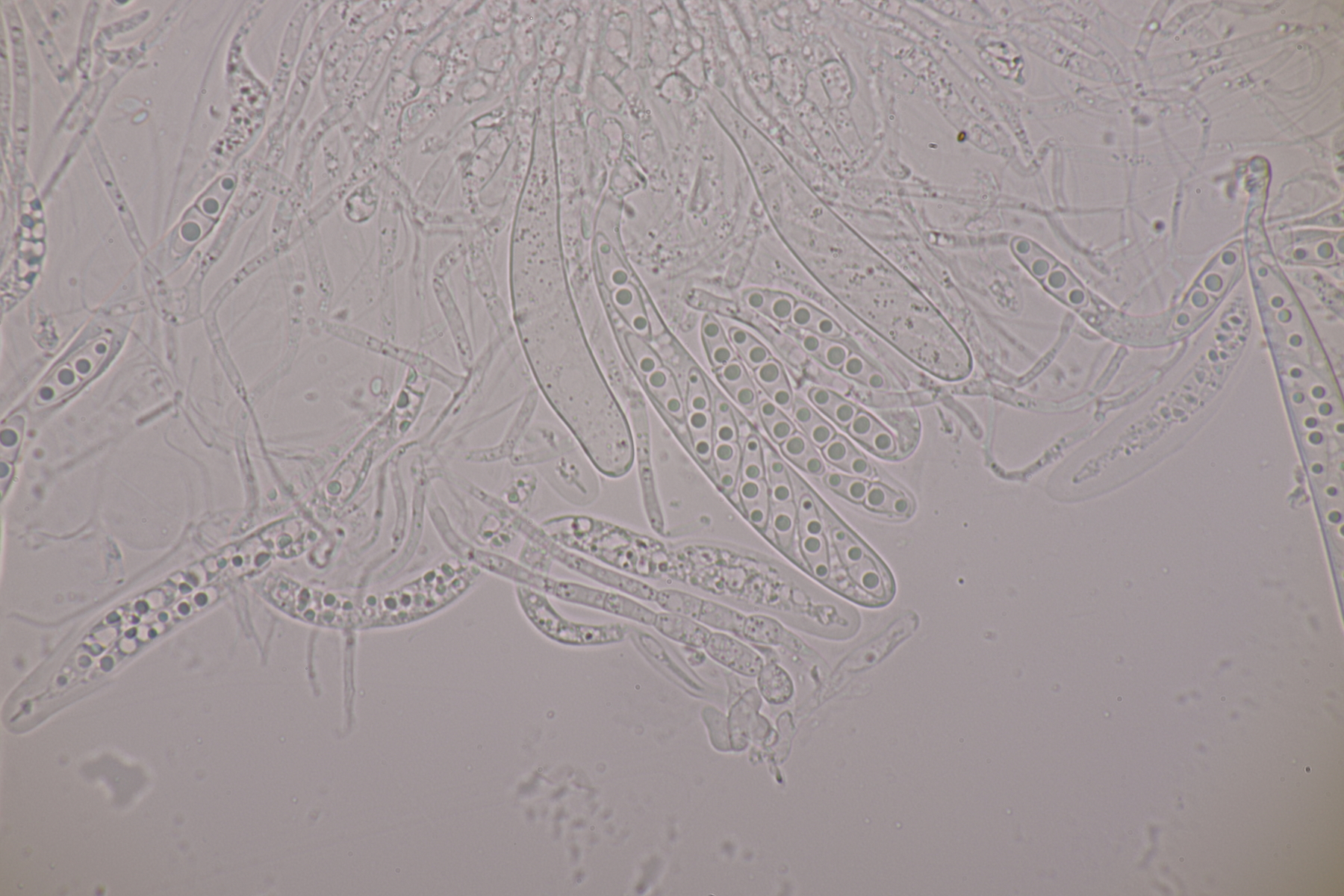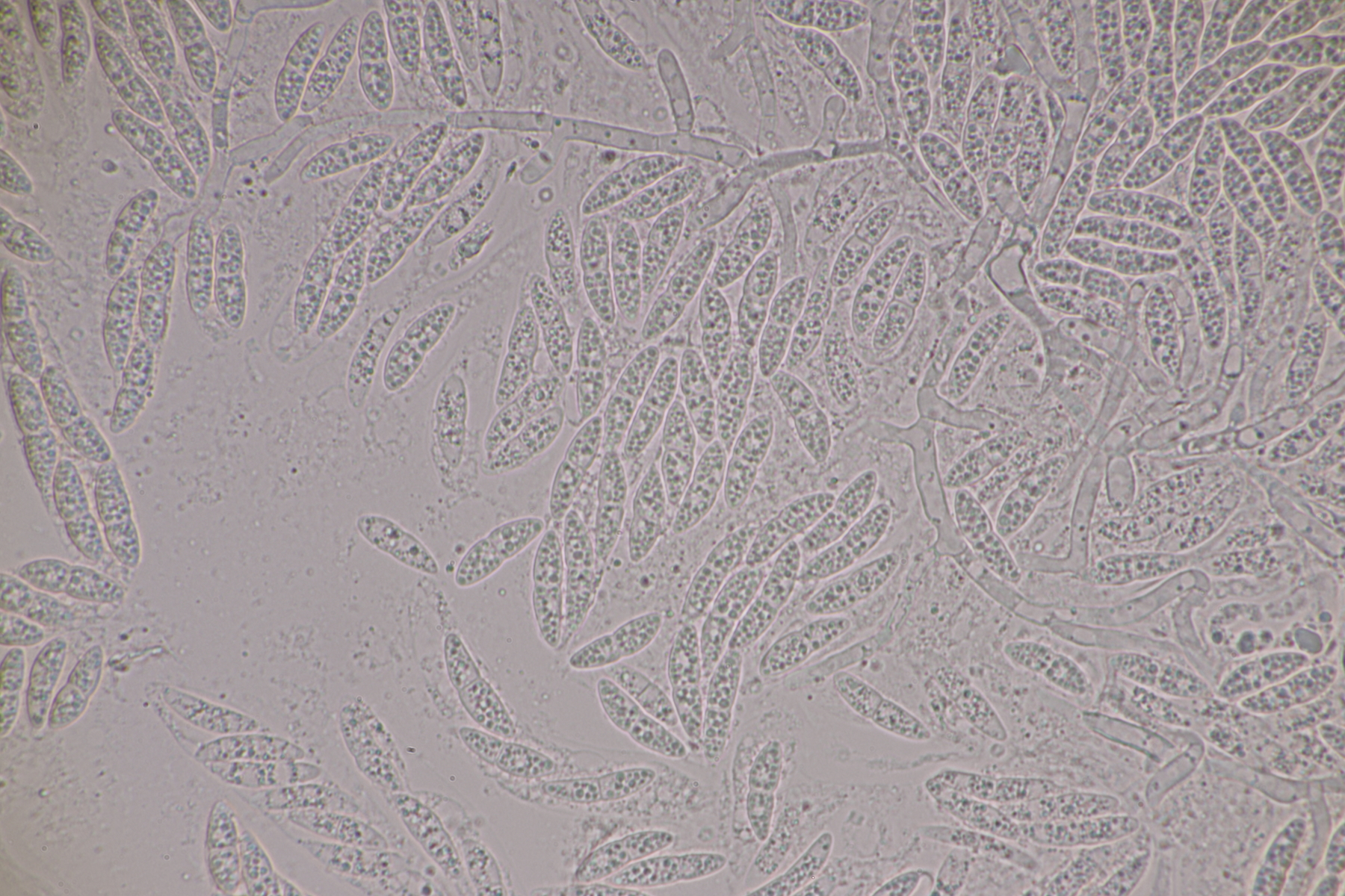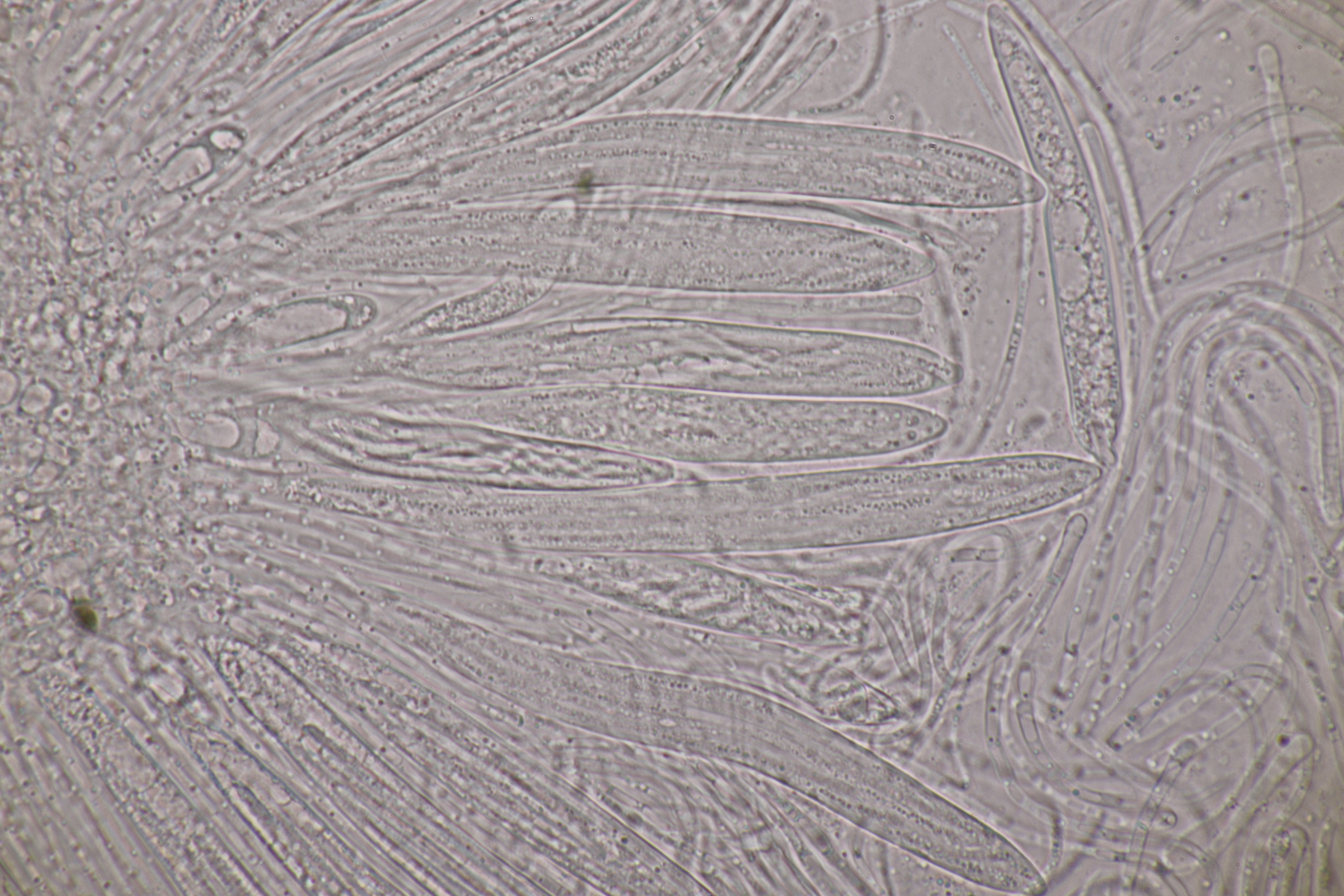 3. Dendrostoma leiphaemia mit Sporen von 17-20.5 x 5-5.5 µm und kongophilem Apikalapparat an Eiche.