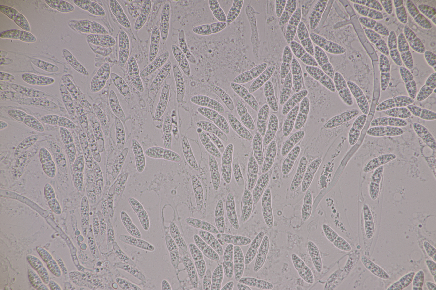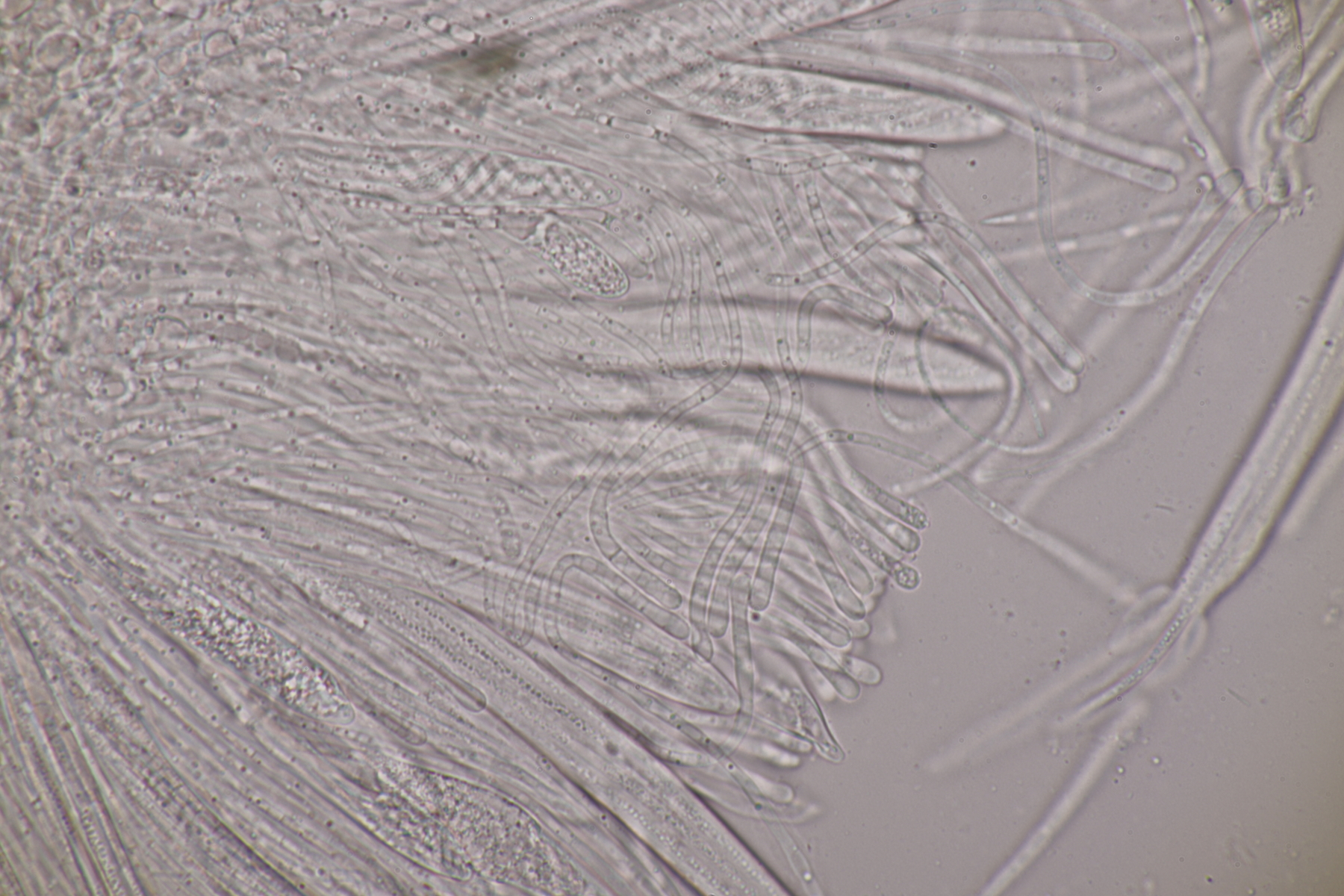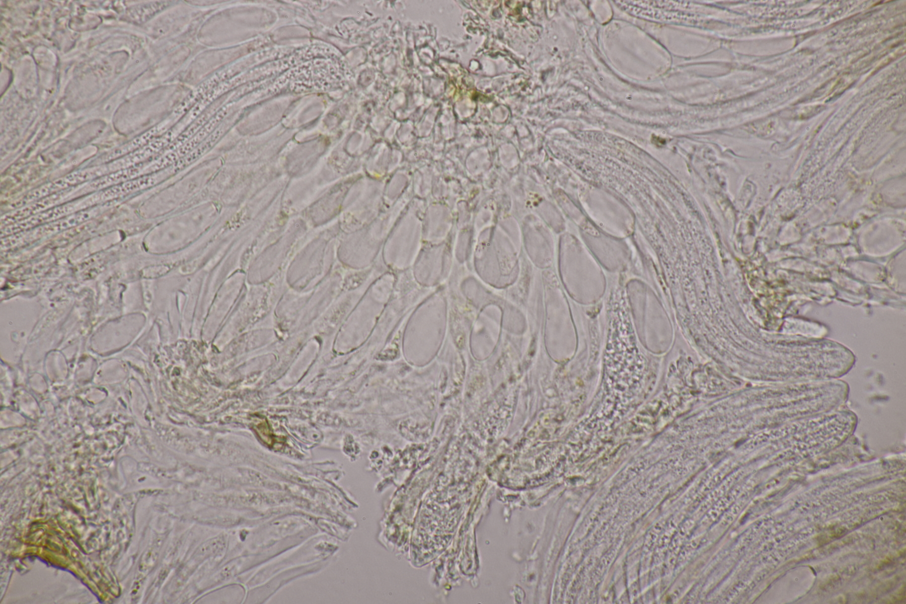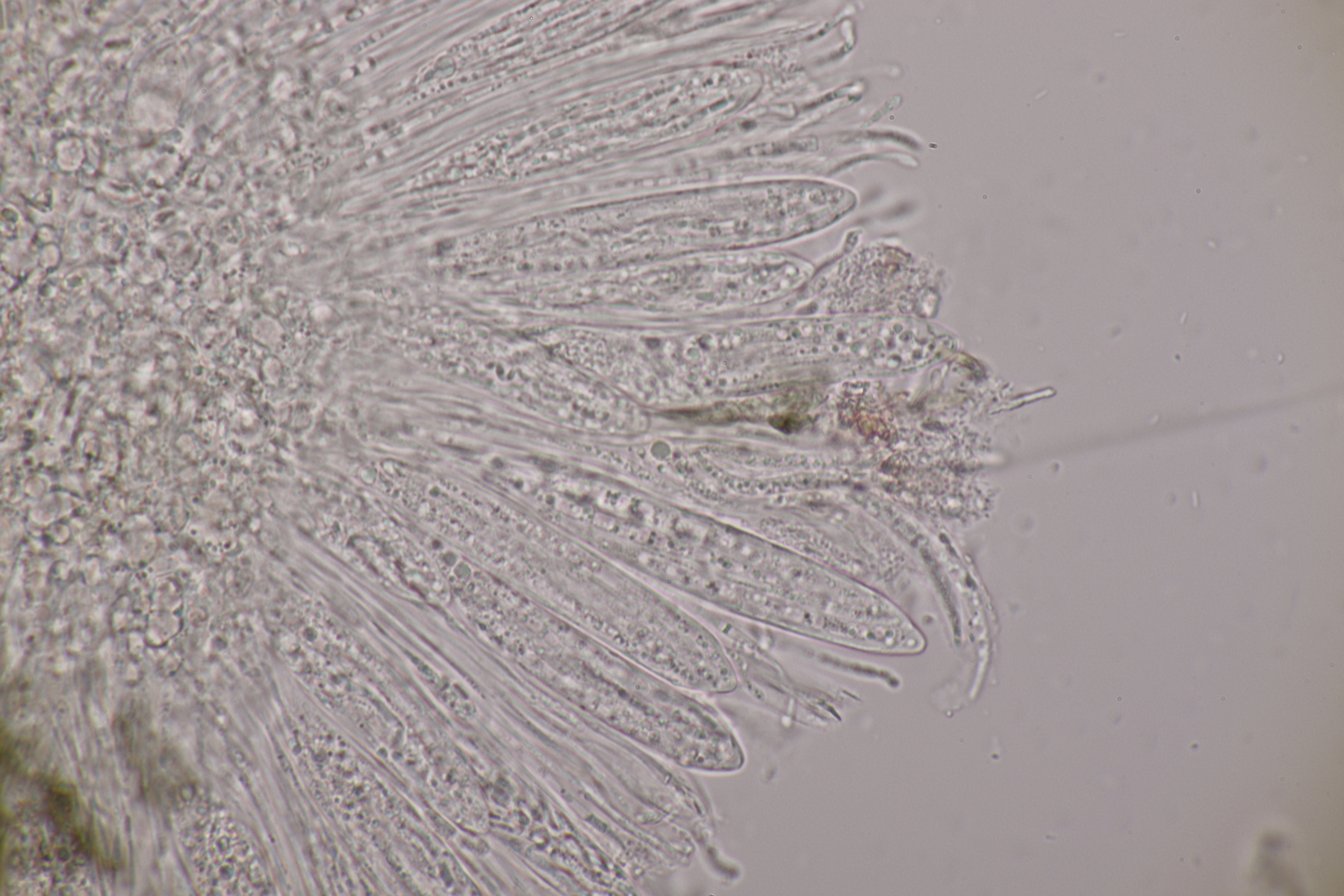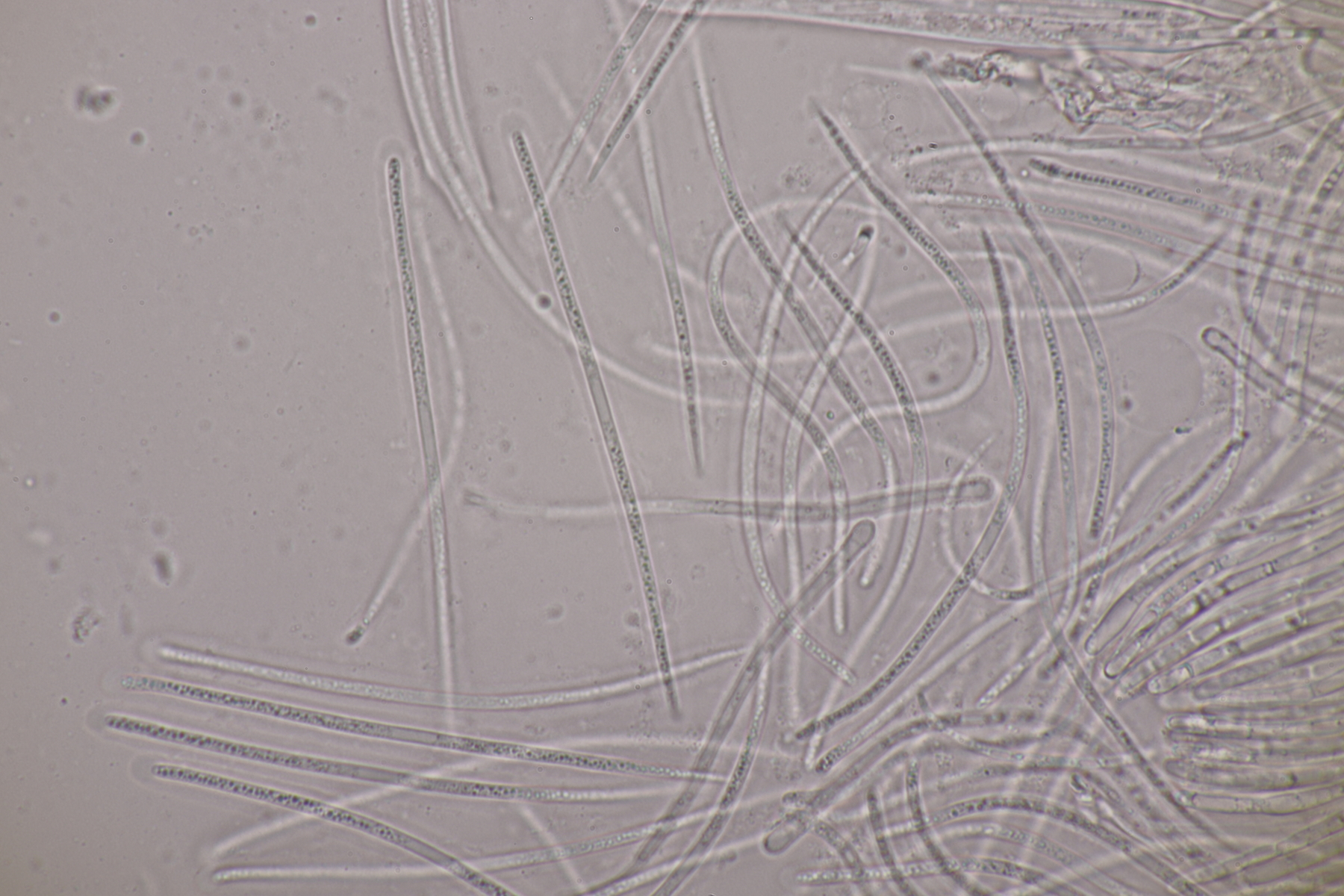 3. Dendrostoma leiphaemia mit Sporen von 17-20.5 x 5-5.5 µm und kongophilem Apikalapparat an Eiche.