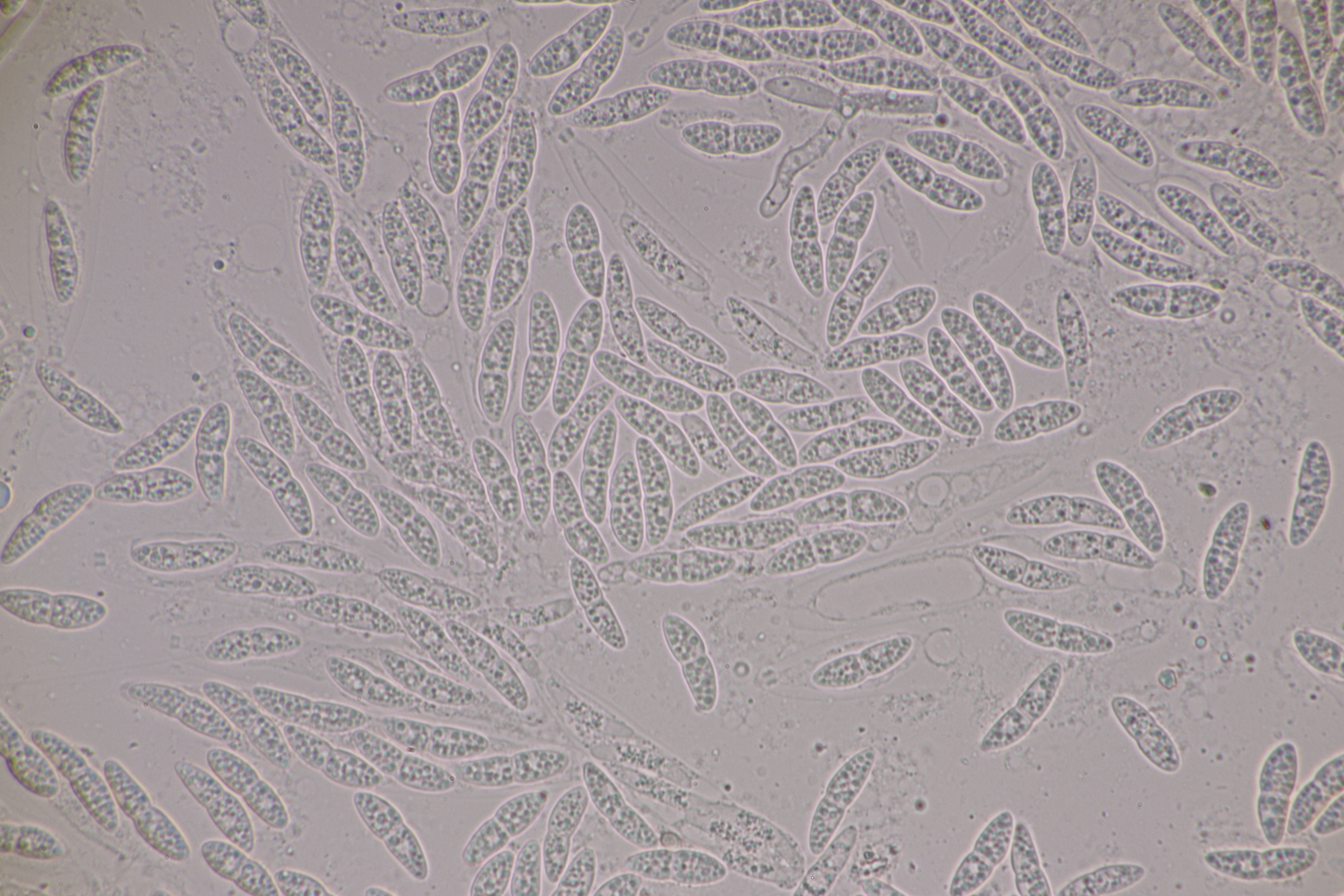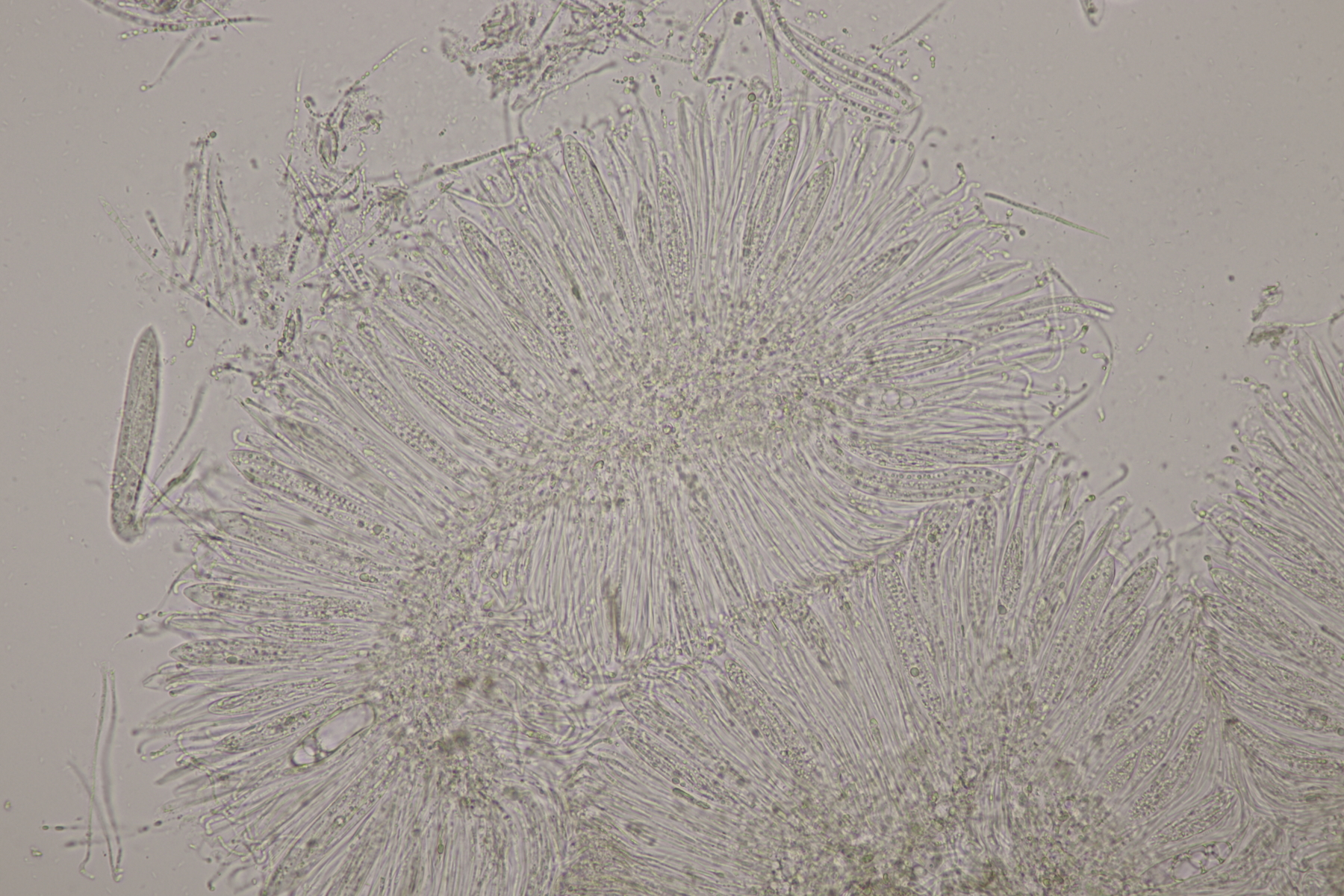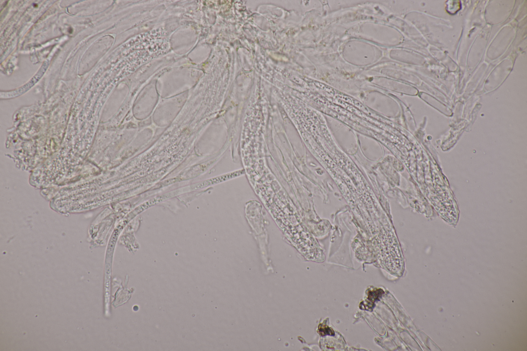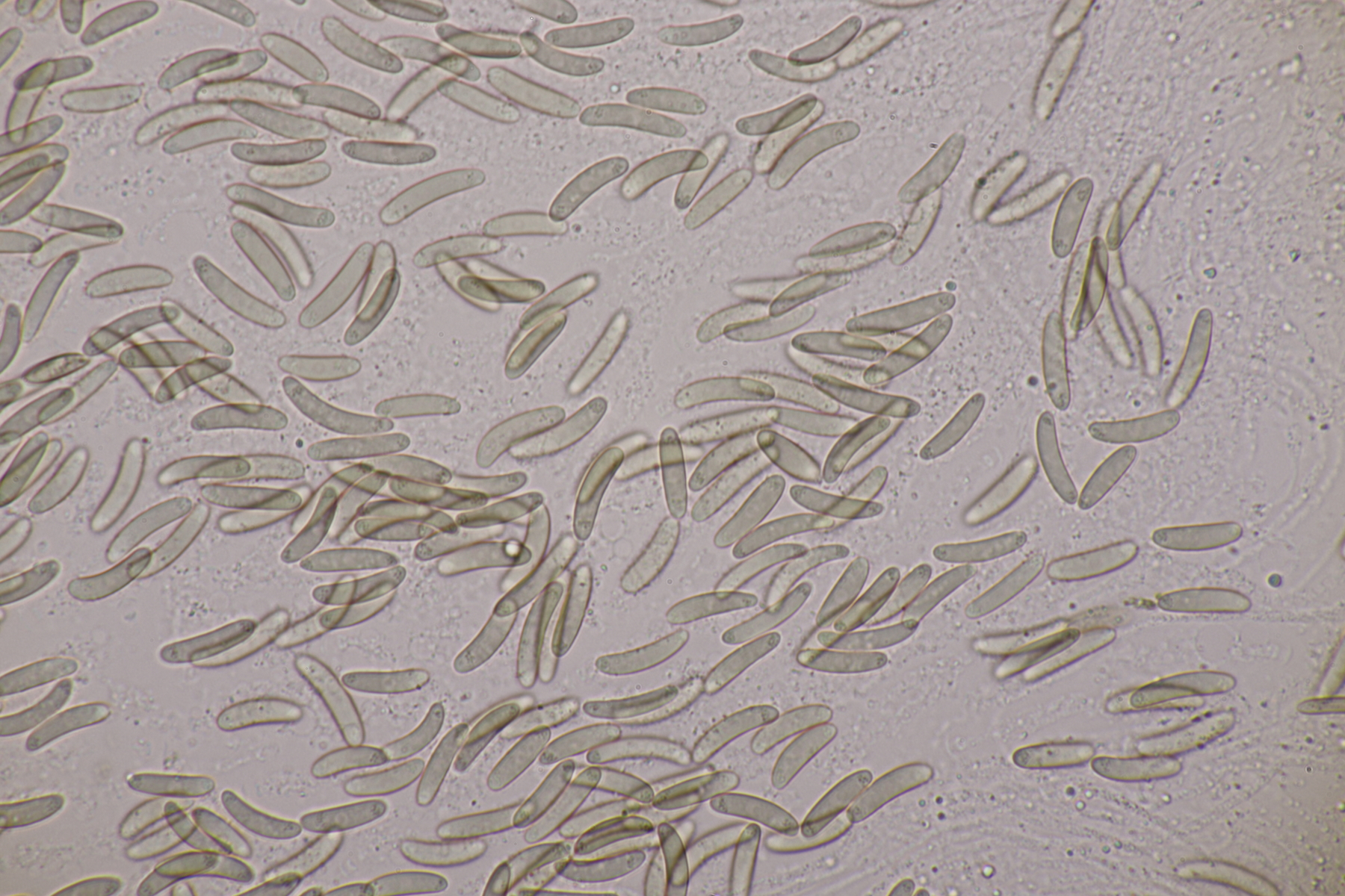 3. Dendrostoma leiphaemia mit Sporen von 17-20.5 x 5-5.5 µm und kongophilem Apikalapparat an Eiche.