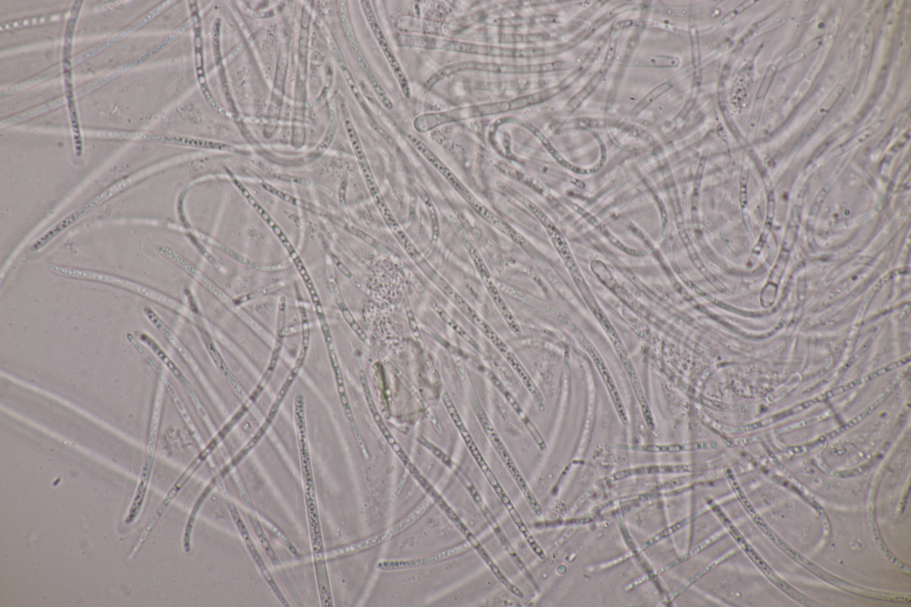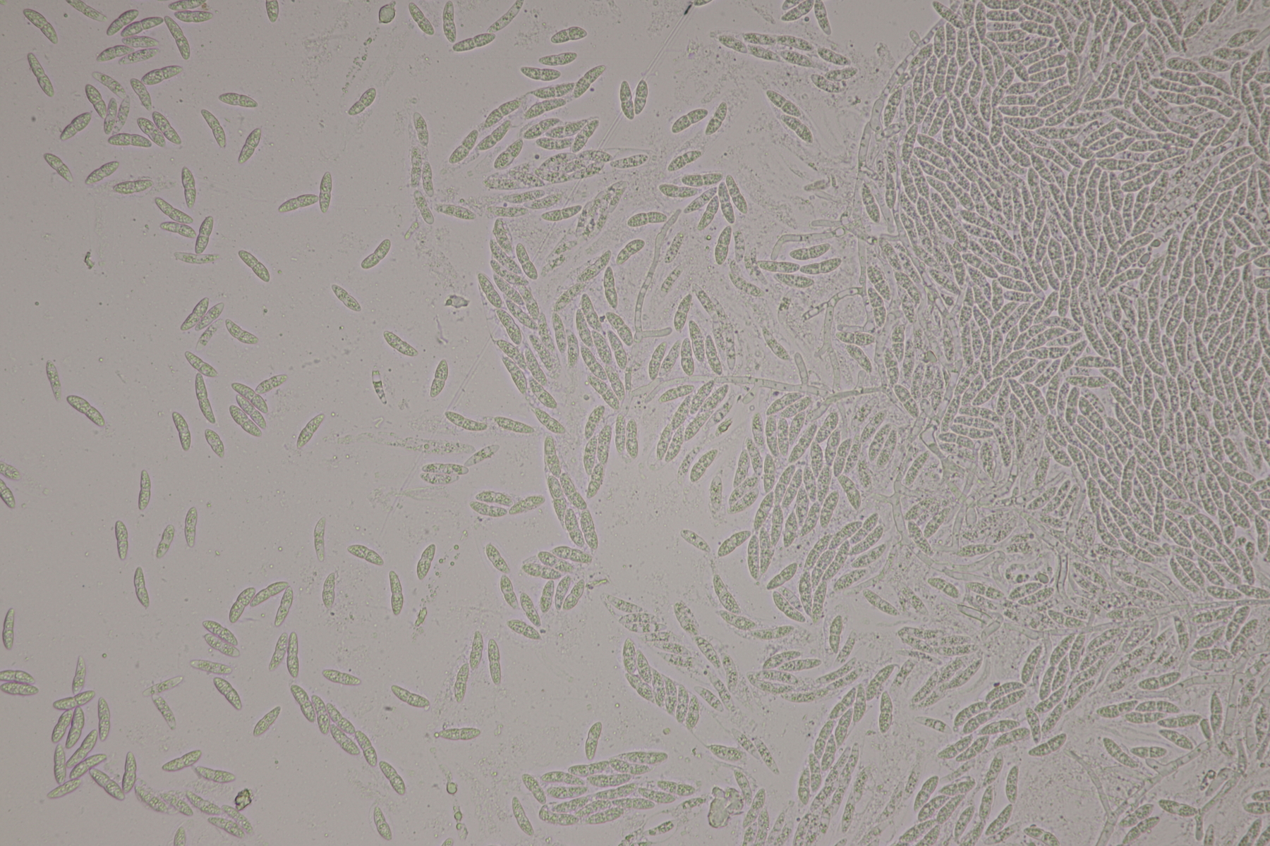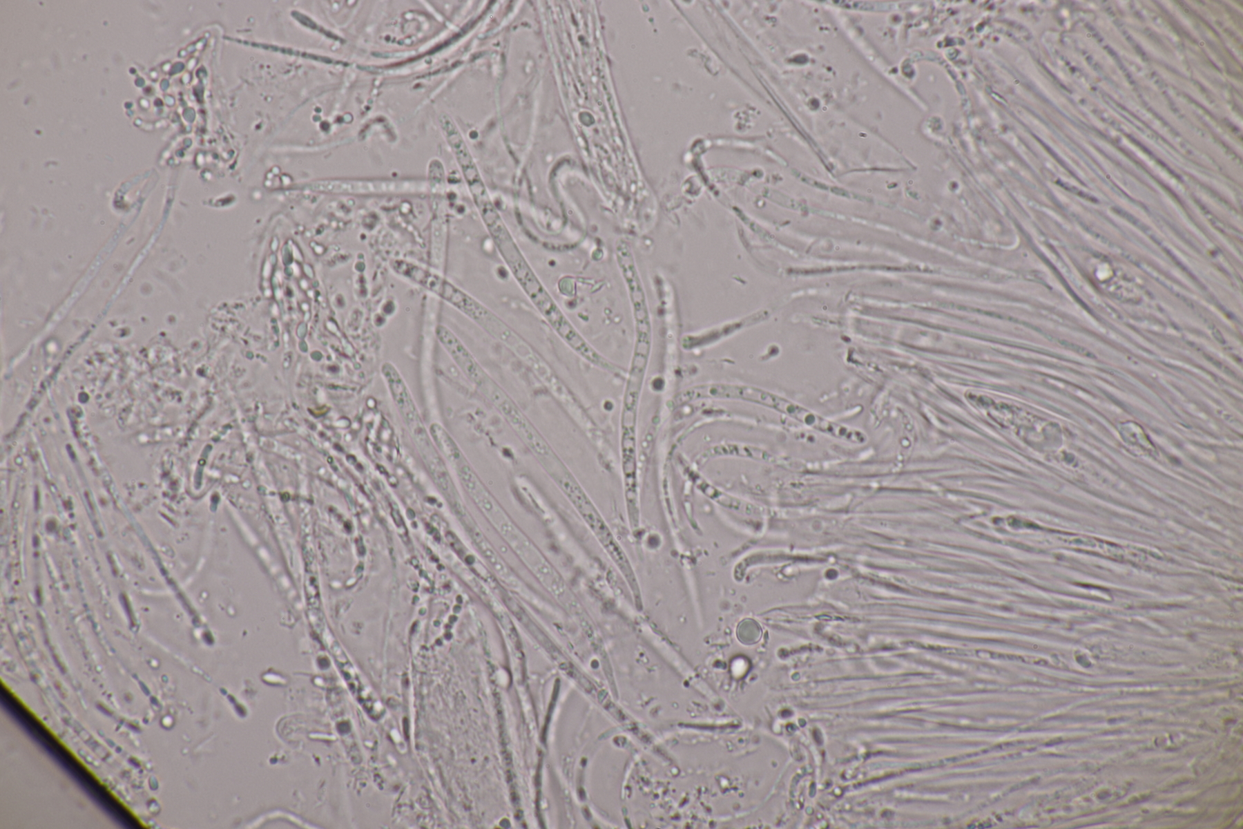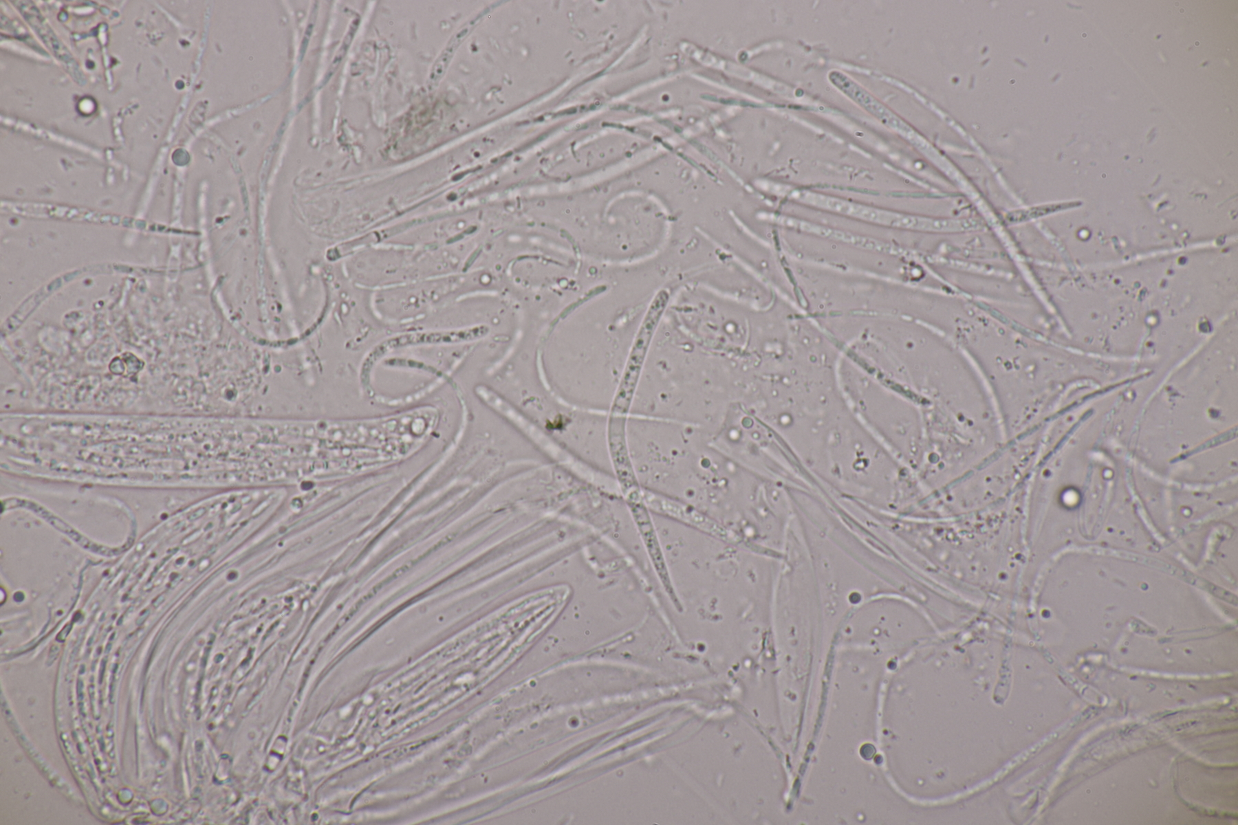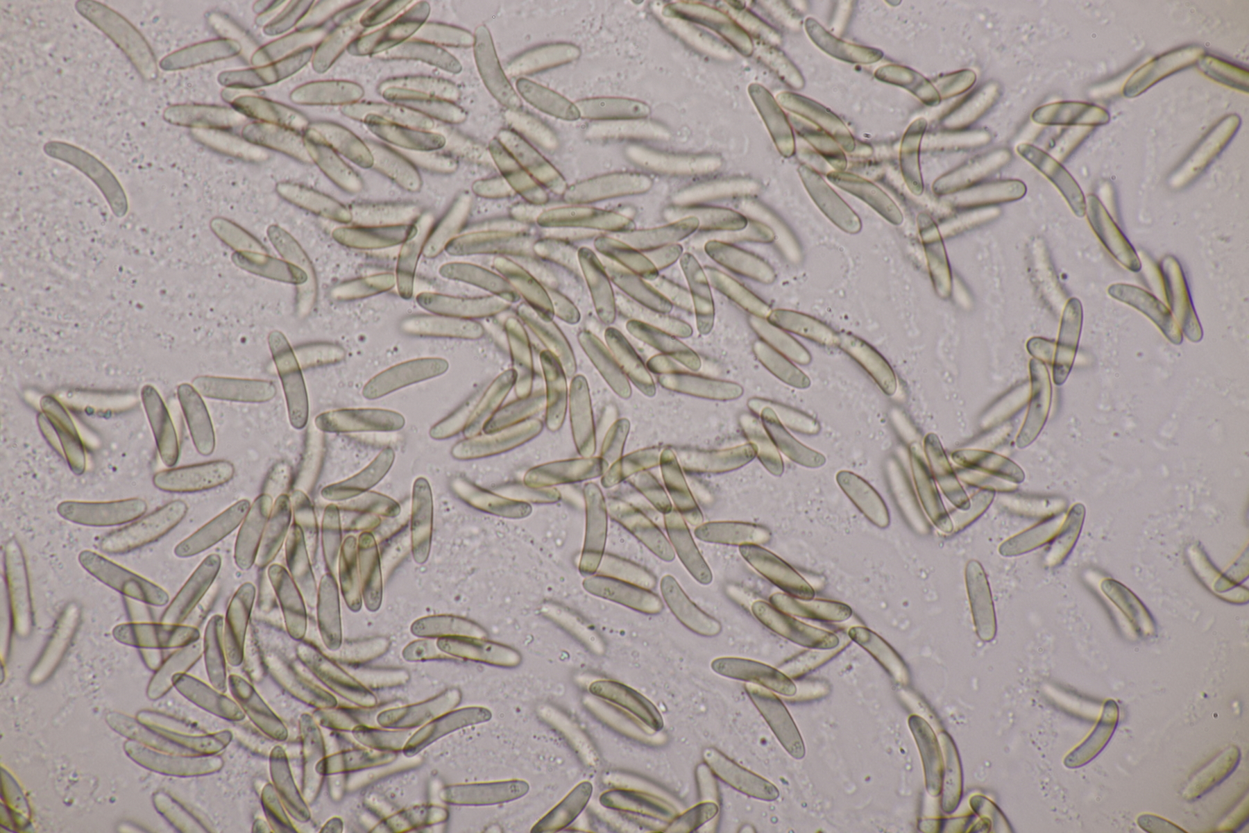 3. Dendrostoma leiphaemia mit Sporen von 17-20.5 x 5-5.5 µm und kongophilem Apikalapparat an Eiche.