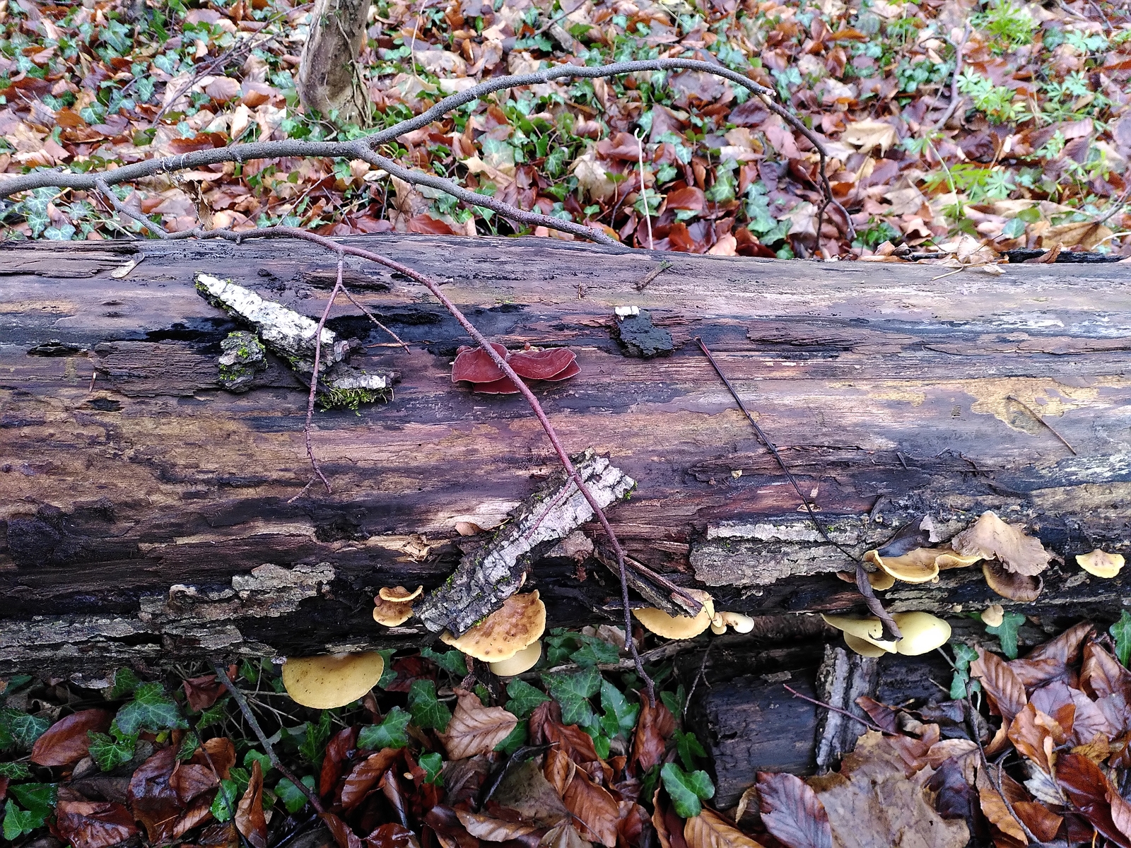 Ich konnte heute im winterlichen Buchenwald auf Kalkboden einige Arten von Winterpilzen entdecken, unter anderem Samtfußrüblinge, Austernseitlinge und Judasohren, alle am selben Stamm! Ich freue ich mich wie immer über Feedback, ob das alles so seine Richtigkeit hat.